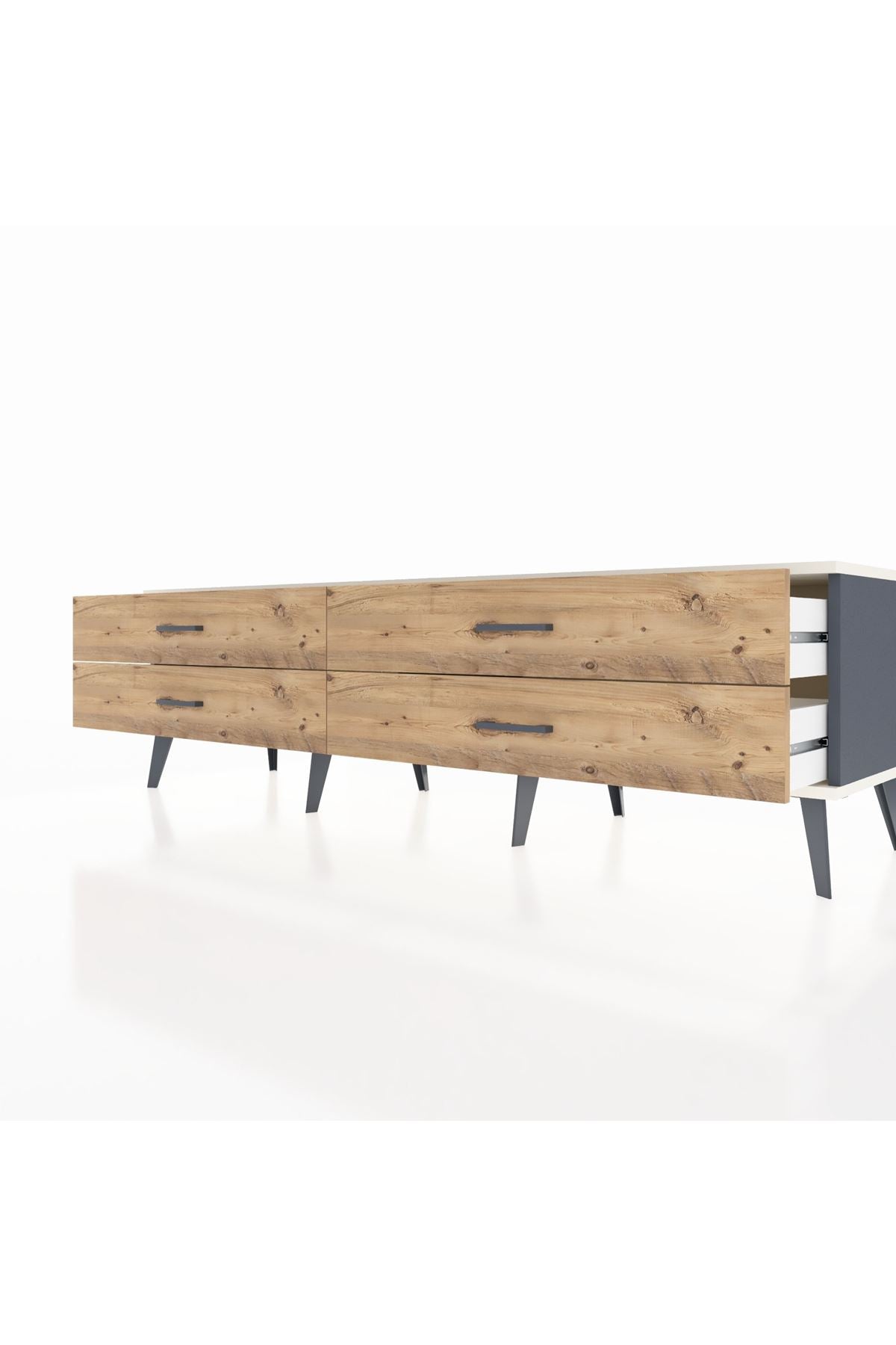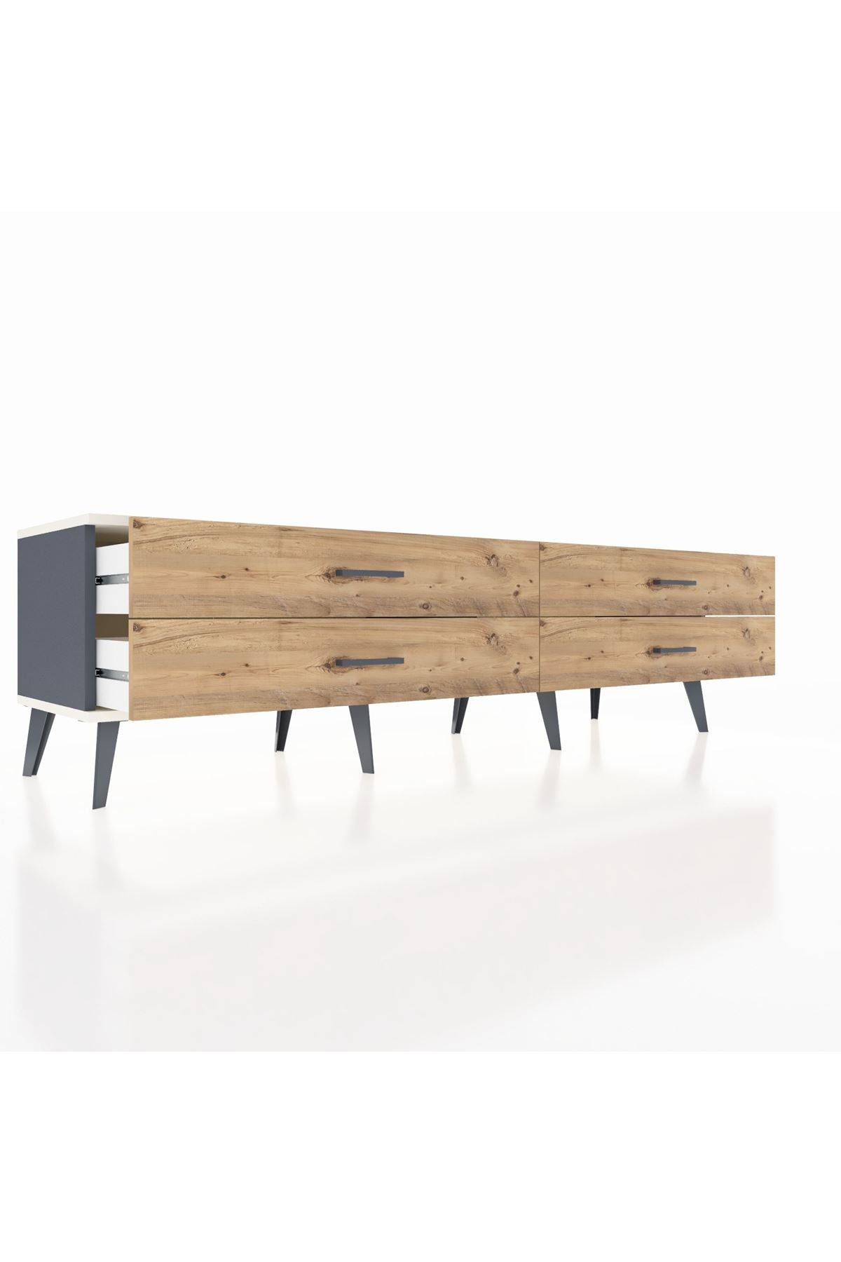 Hyperion TV Ünitesi 4 Çekmeceli 176x44x51 Antrasit-Aytaşı/Çam