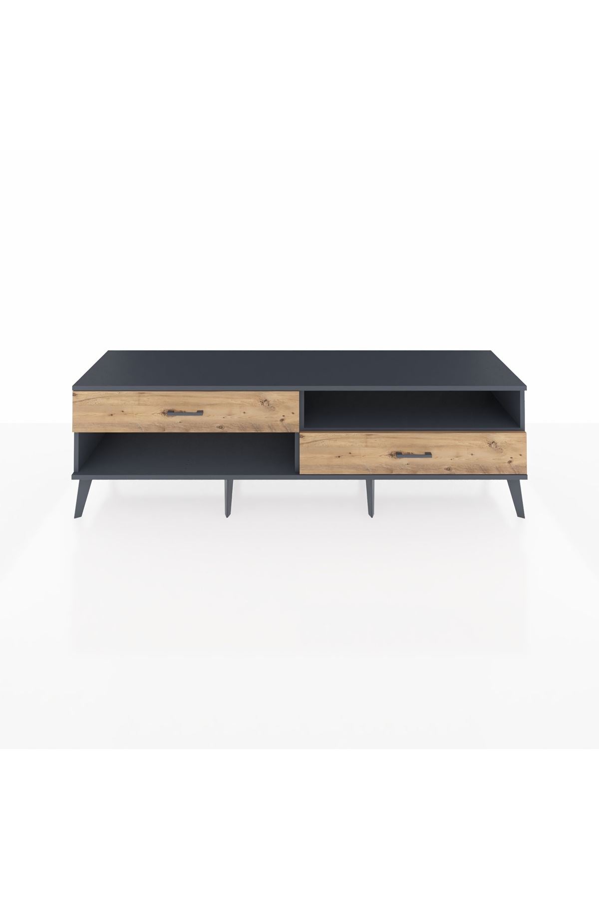 Hyperion TV Ünitesi Tek Raflı 2 Çekmeceli 176x44x51 Antrasit-Antrasit/Çam