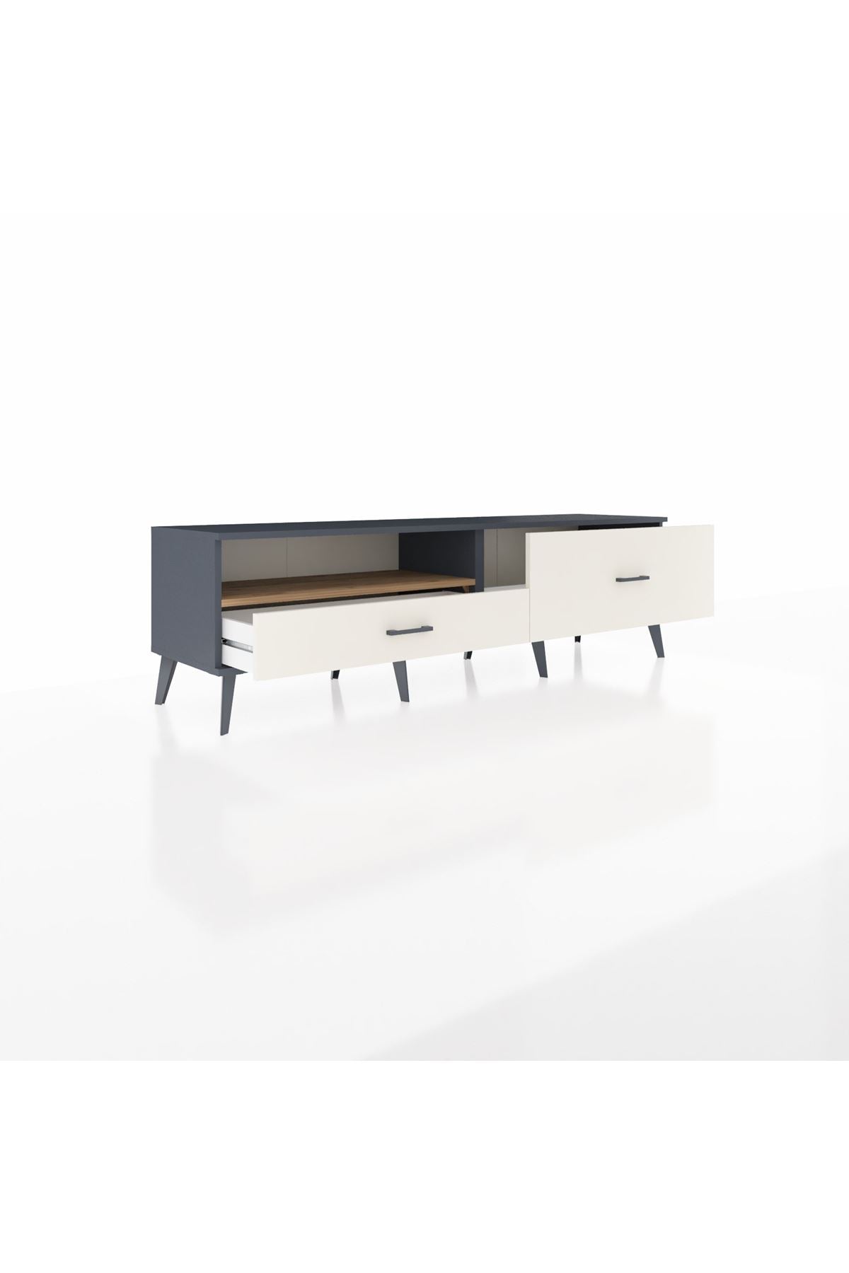 Hyperion TV Ünitesi Tek Raflı 2 Çekmeceli 176x44x51 Antrasit-Çam/Aytaşı