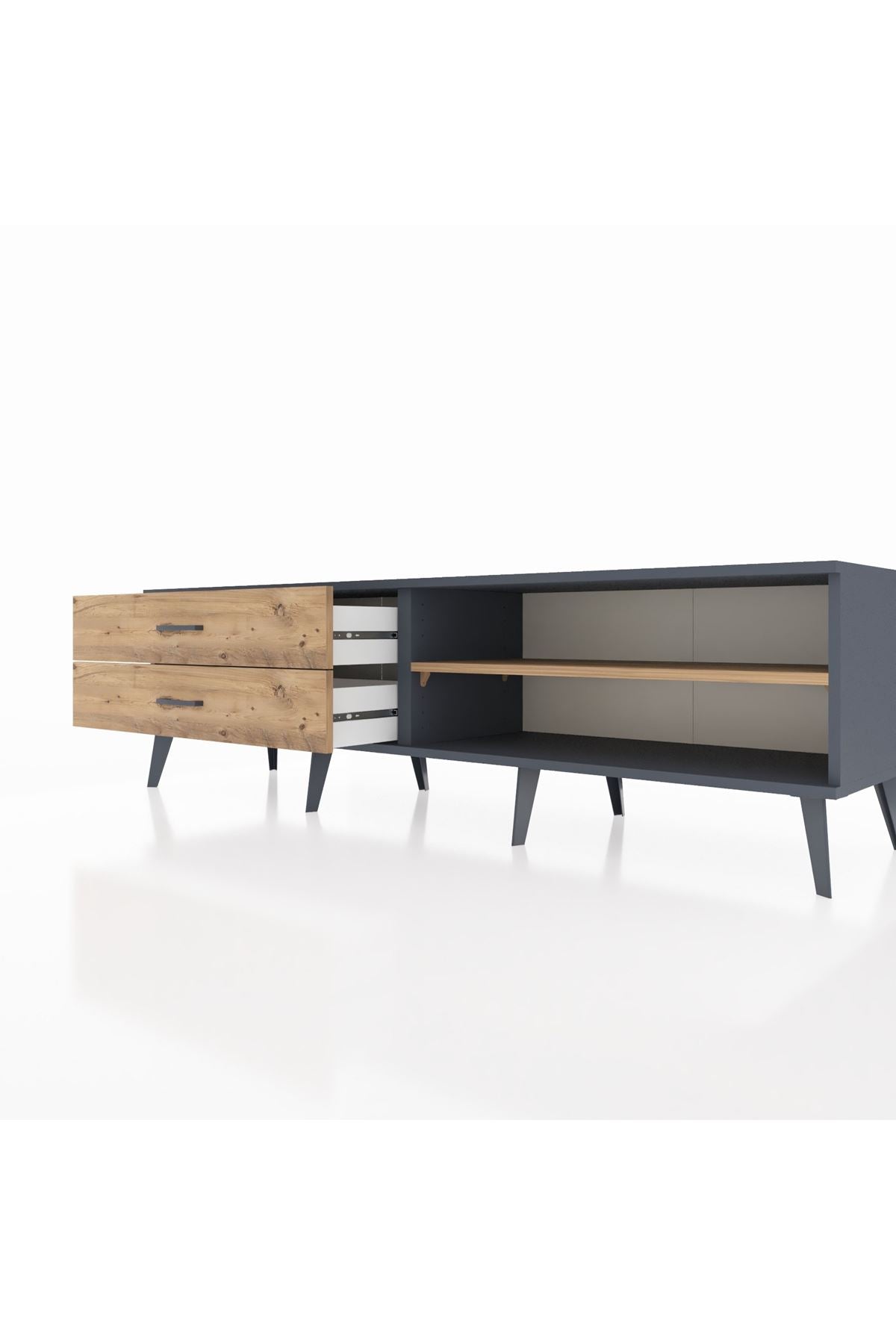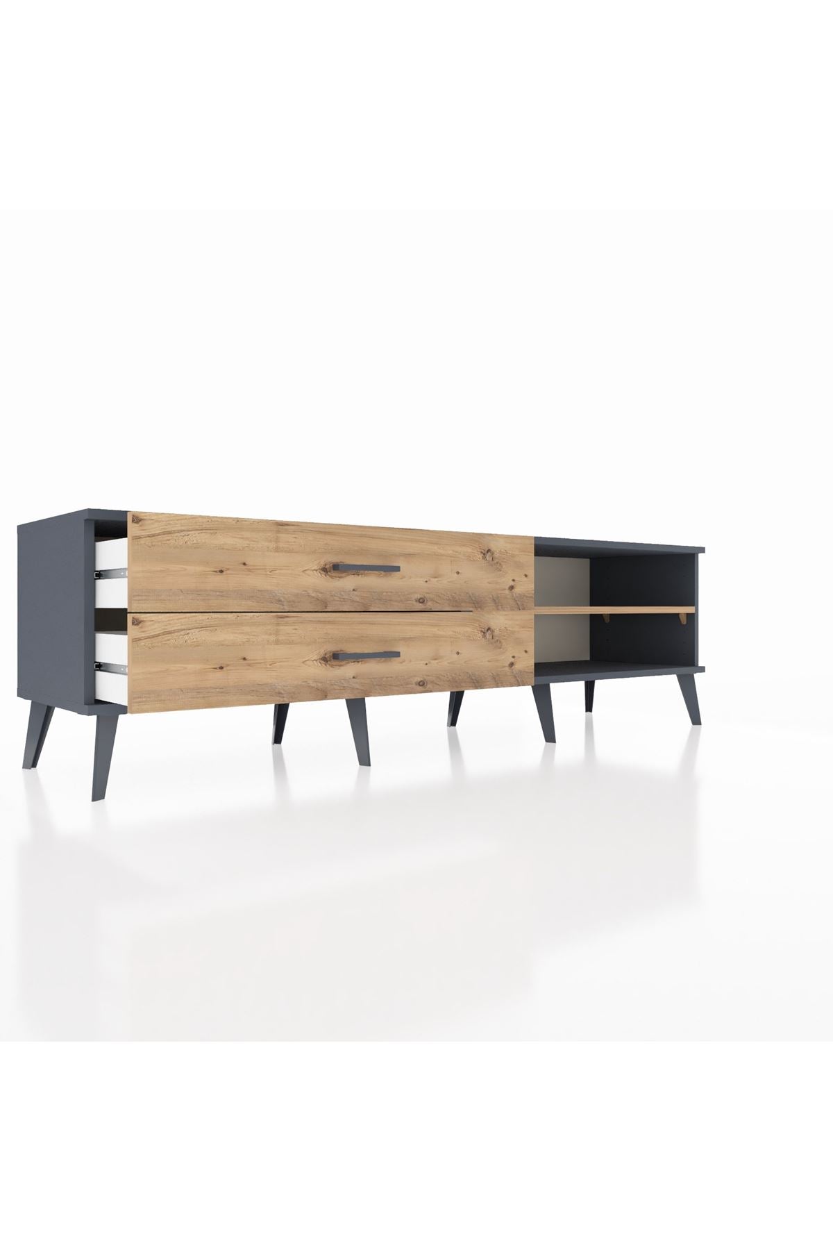 Hyperion TV Ünitesi Tek Raflı 2 Çekmeceli 176x44x51 Antrasit-Çam/Çam