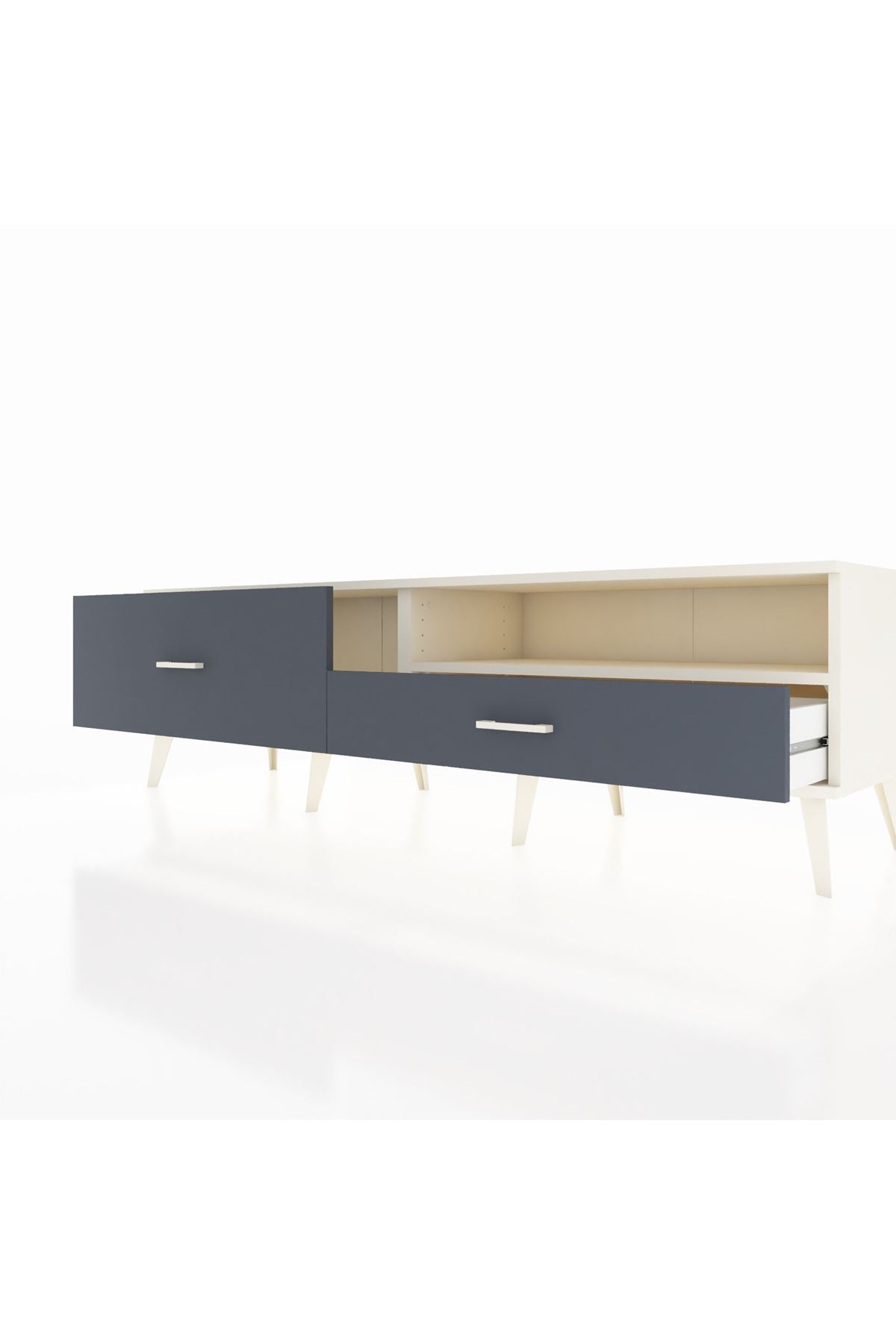 🌟 Şıklık ve işlevselliği bir arada sunan Hyperion TV Ünitesi, Aytaşı ve Antrasit renk kombinasyonu ile her salona sofistike bir hava katar. 🍂 Minimalist tasarımı, Artemis Koleksiyonu’nun Kronos serisinden ilham alarak, zamansız bir zarafeti temsil eder.