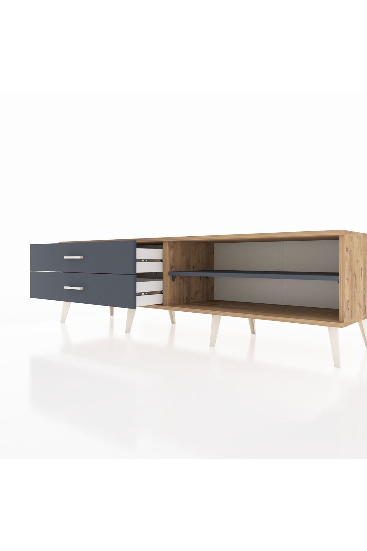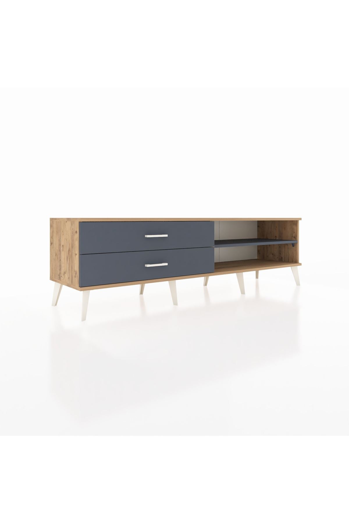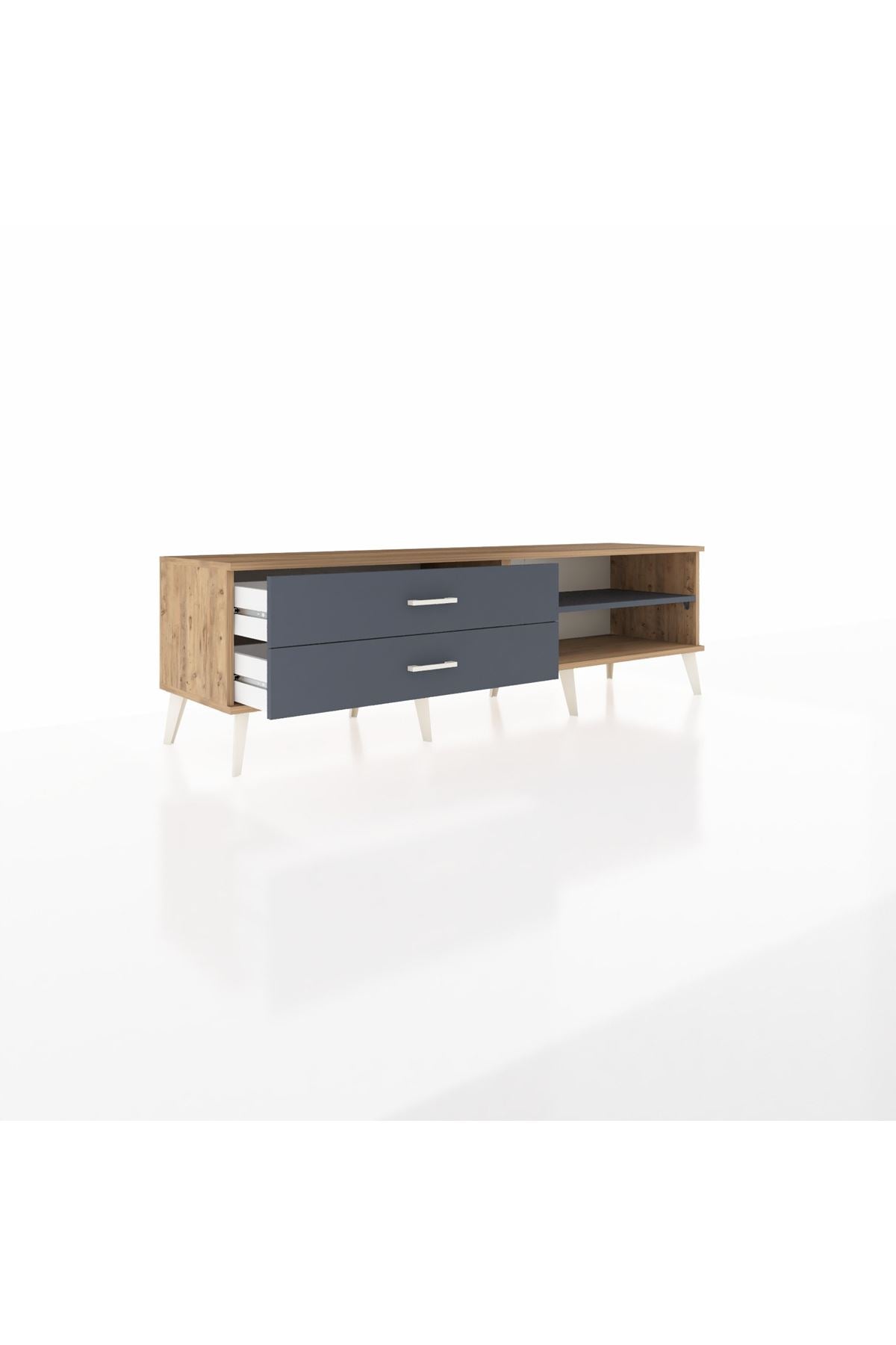 Hyperion TV Ünitesi Tek Raflı 2 Çekmeceli 176x44x51 Çam-Antrasit/Antrasit