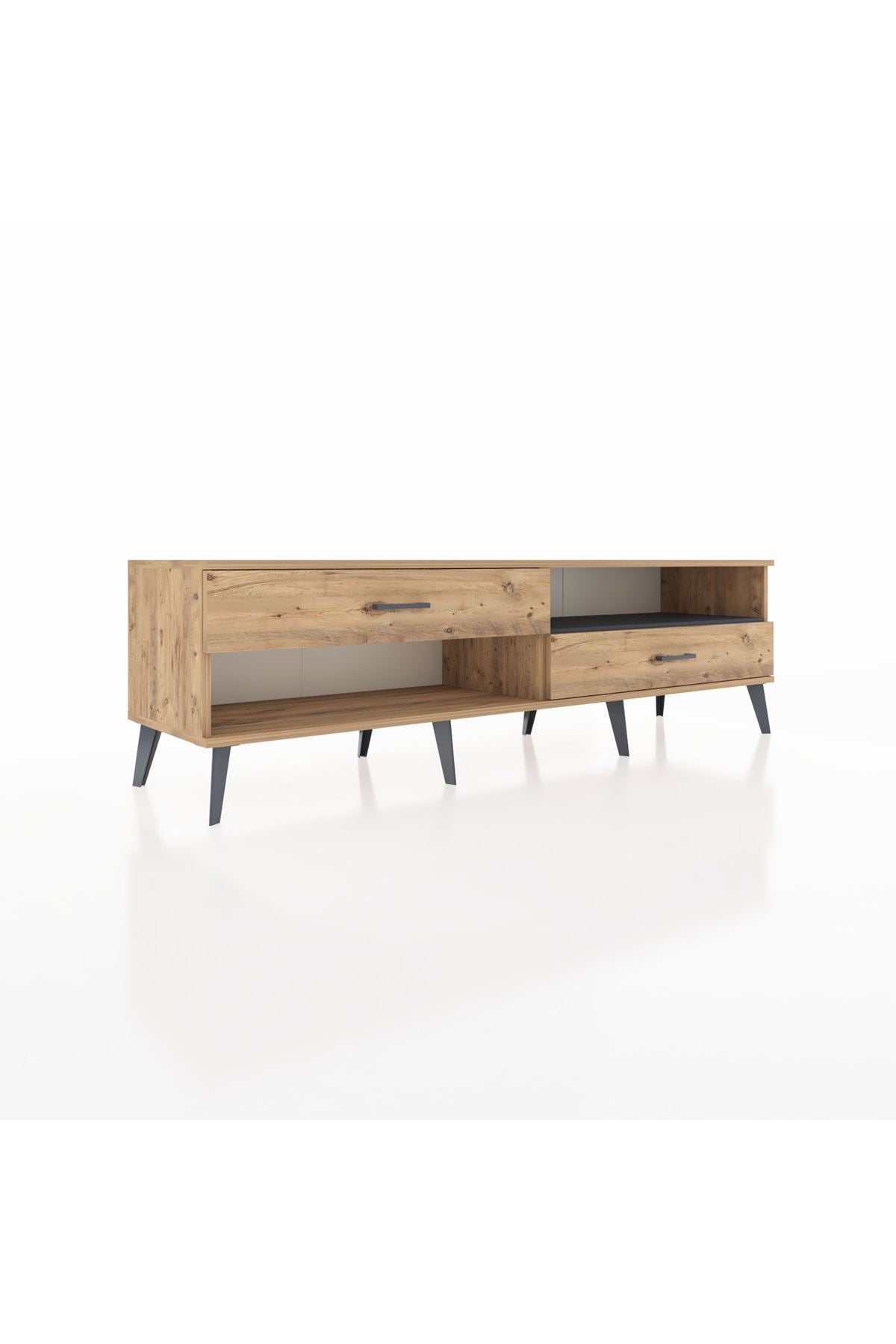 Hyperion TV Ünitesi Tek Raflı 2 Çekmeceli 176x44x51 Çam-Antrasit/Çam