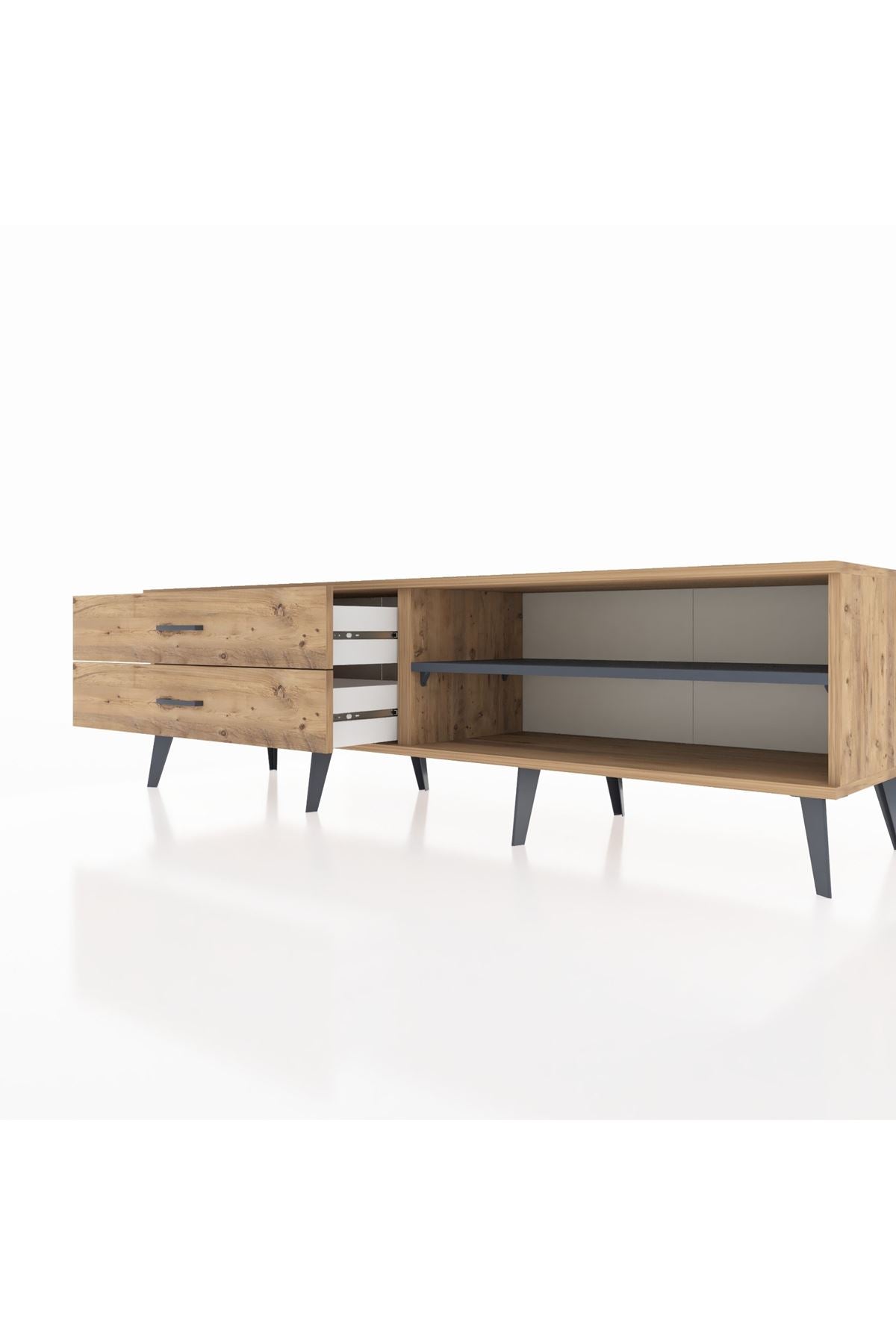 Hyperion TV Ünitesi Tek Raflı 2 Çekmeceli 176x44x51 Çam-Antrasit/Çam