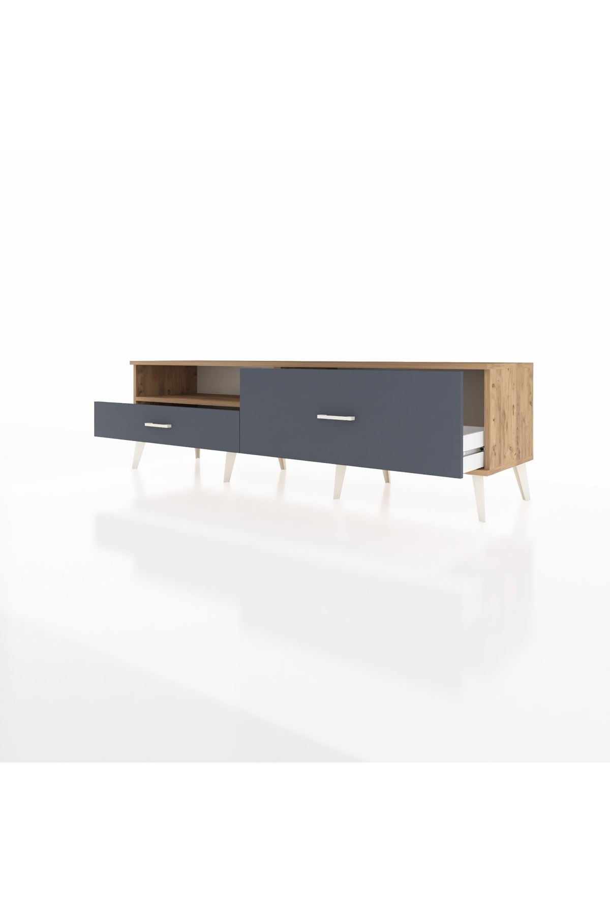 Hyperion TV Ünitesi Tek Raflı 2 Çekmeceli 176x44x51 Çam-Çam/Antrasit