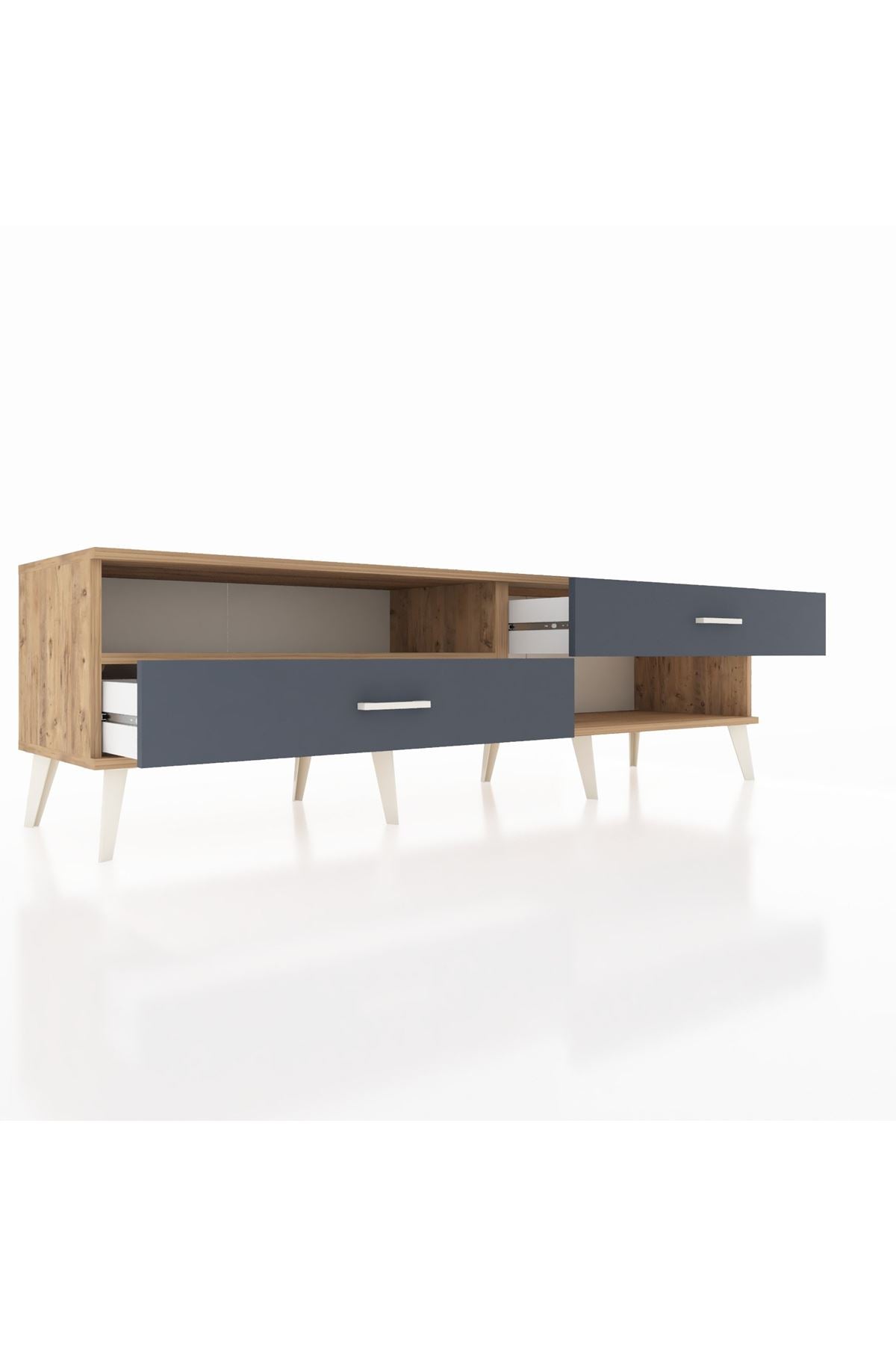 Hyperion TV Ünitesi Tek Raflı 2 Çekmeceli 176x44x51 Çam-Çam/Antrasit