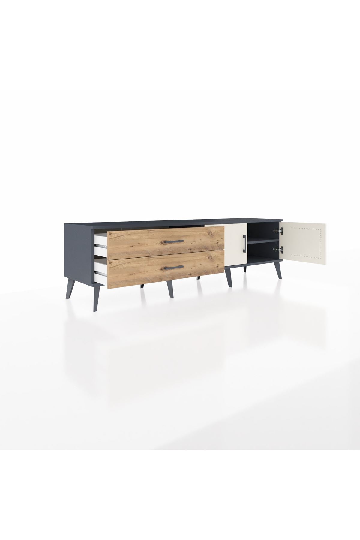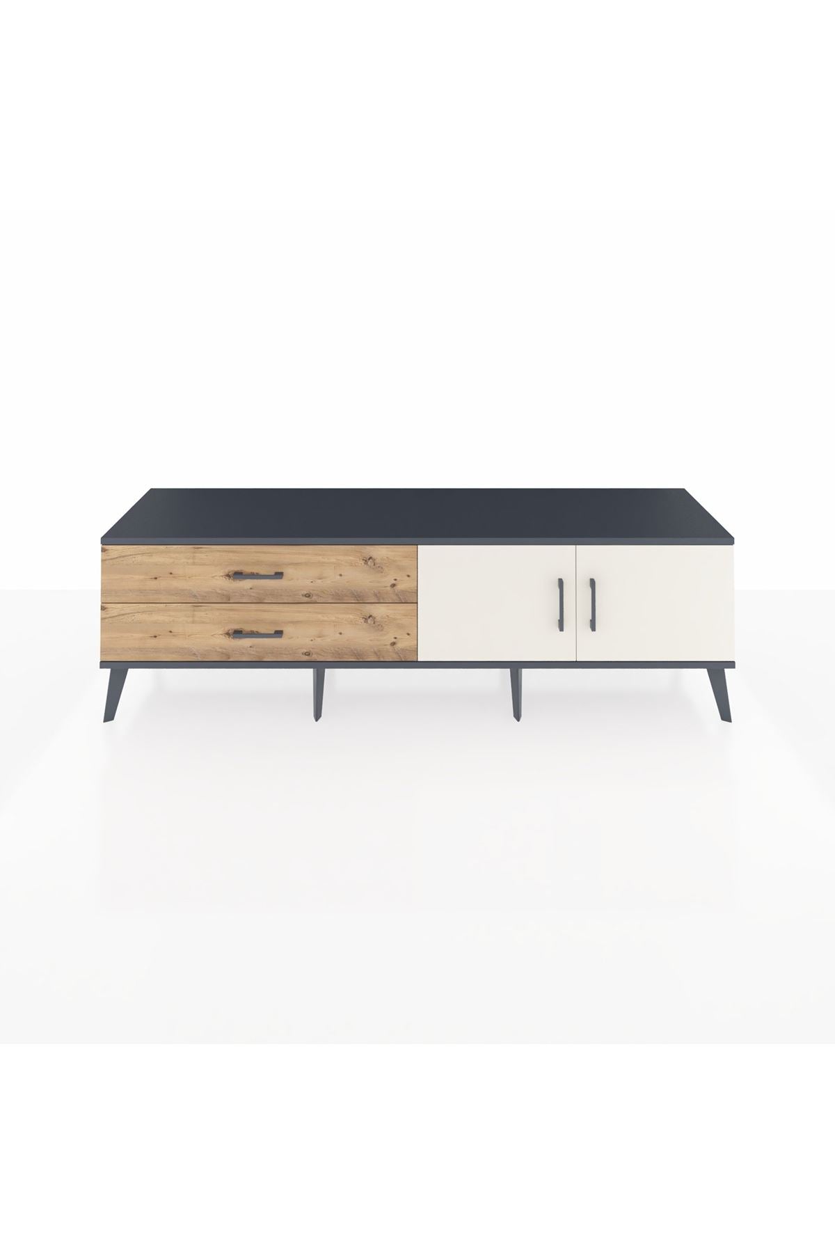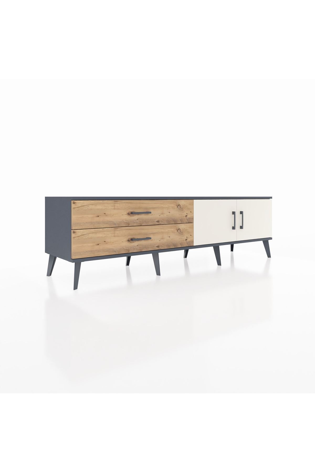 Hyperion TV Ünitesi Tek Raflı 2 Çekmeceli 2 Kapaklı 176x44x51 Antrasit-Aytaşı/Çam