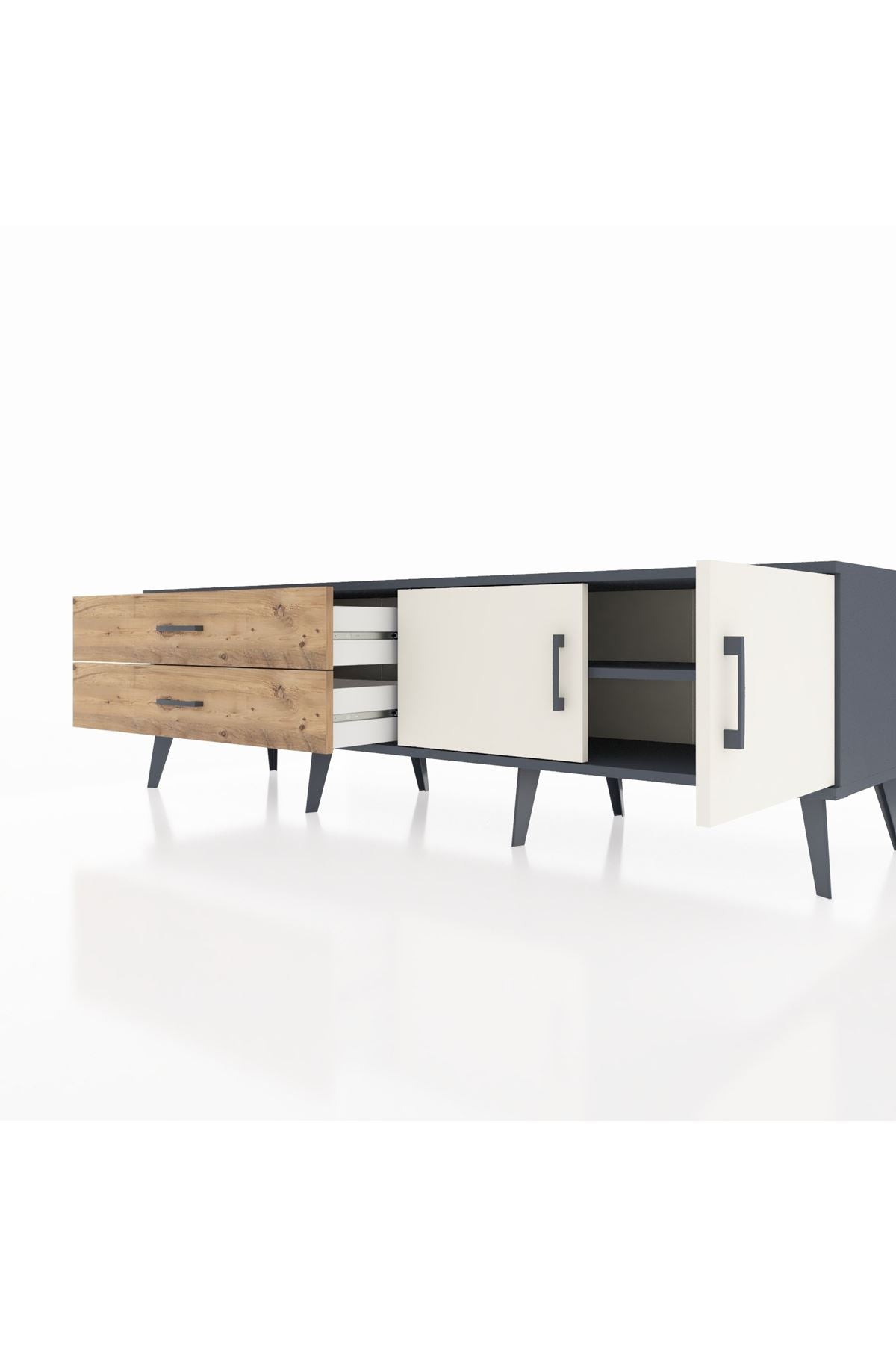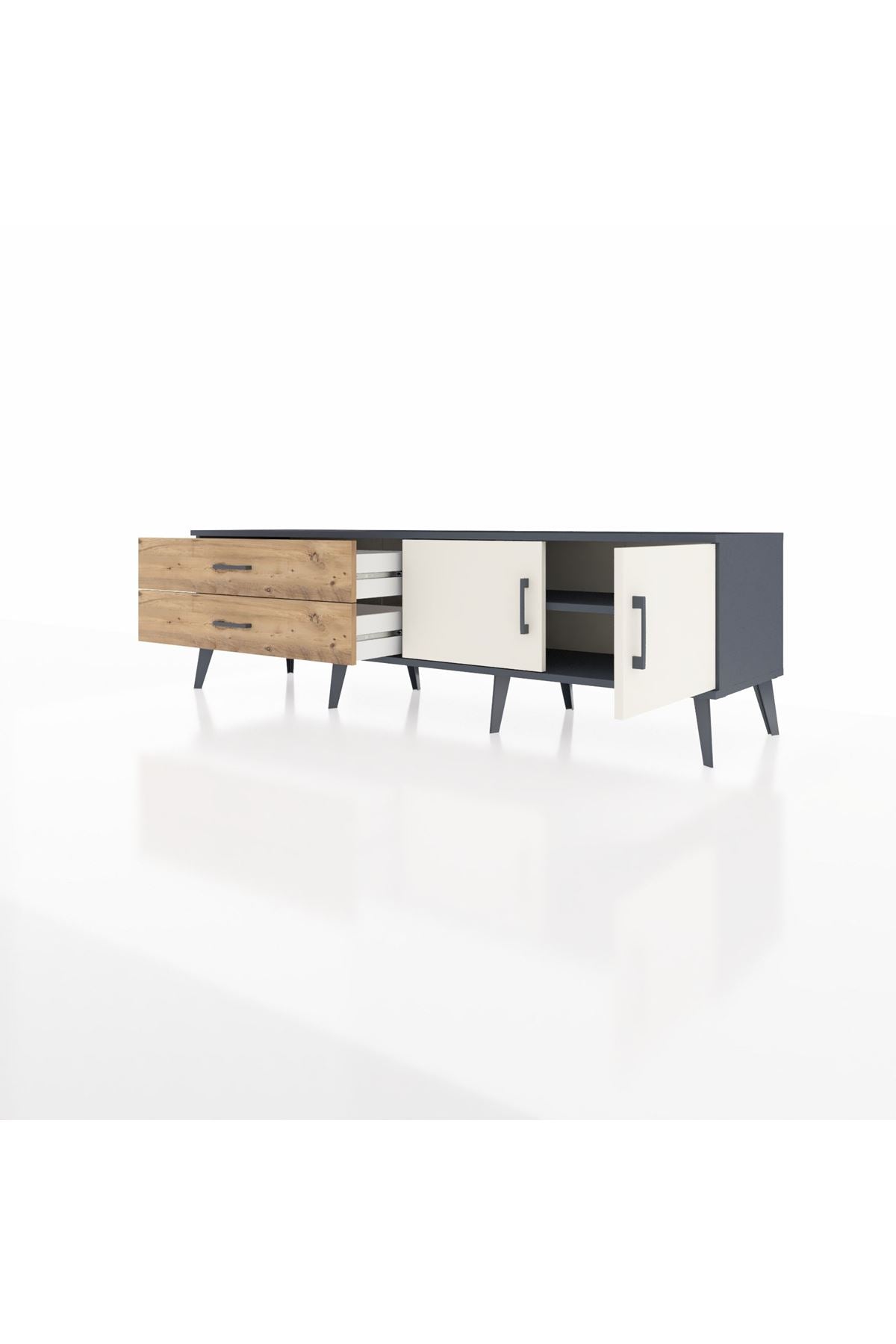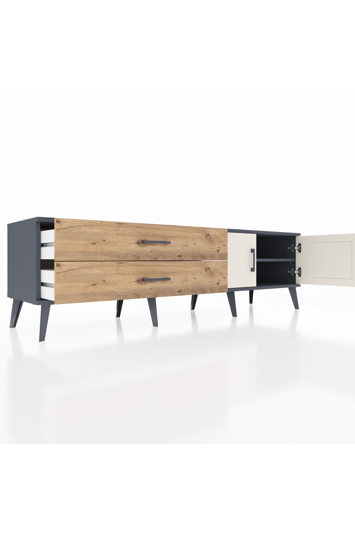 Hyperion TV Ünitesi Tek Raflı 2 Çekmeceli 2 Kapaklı 176x44x51 Antrasit-Aytaşı/Çam