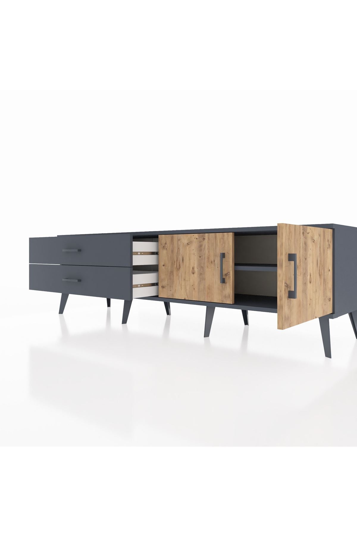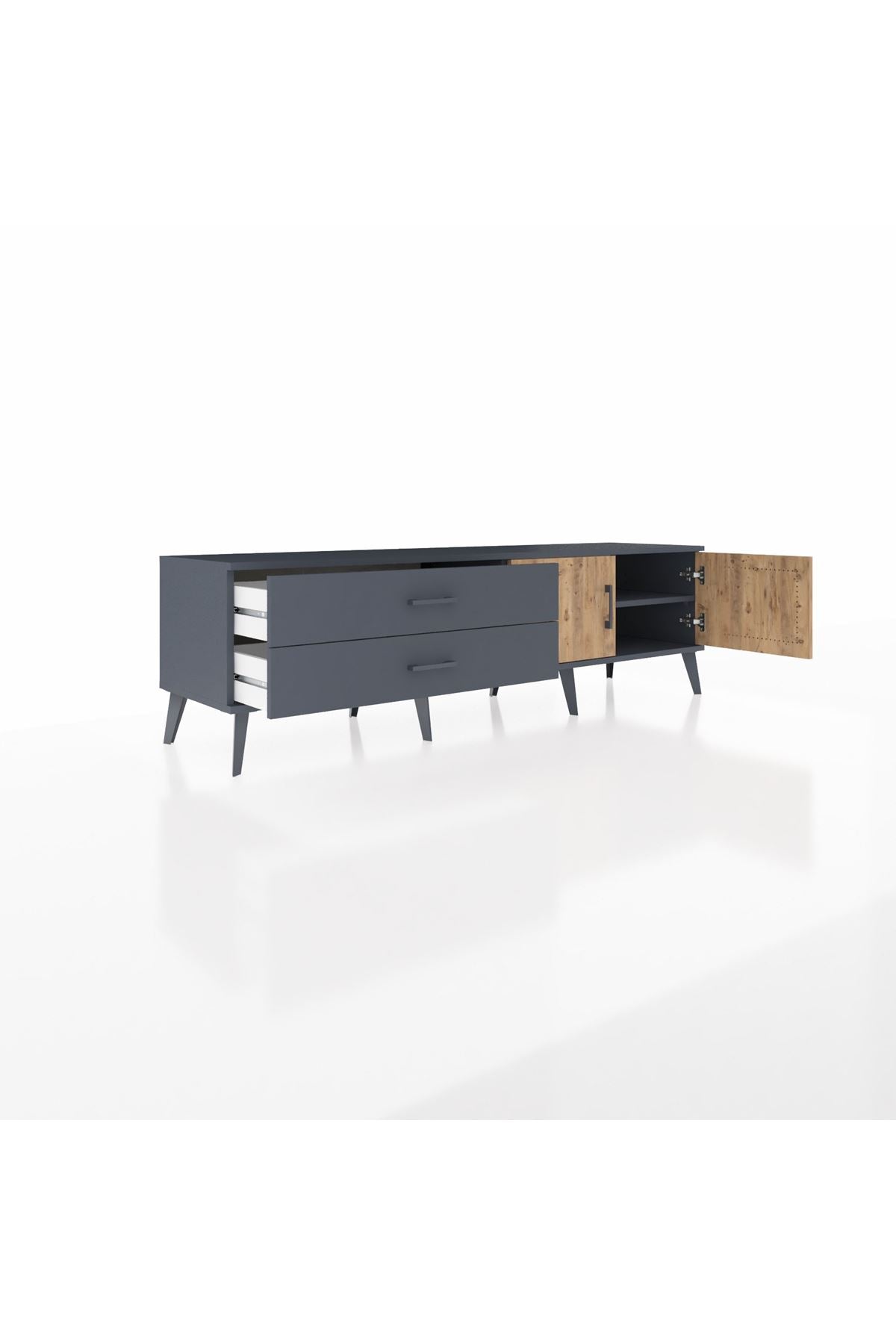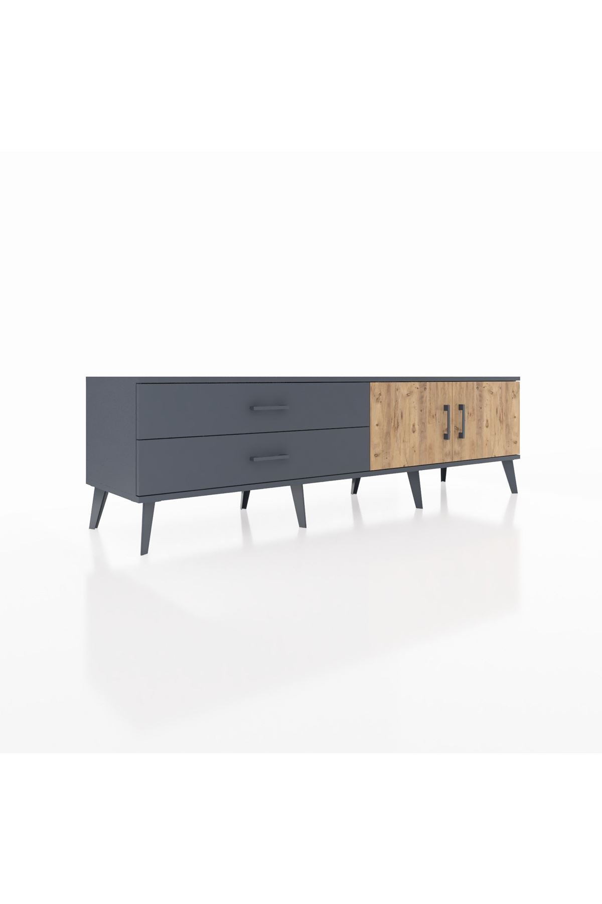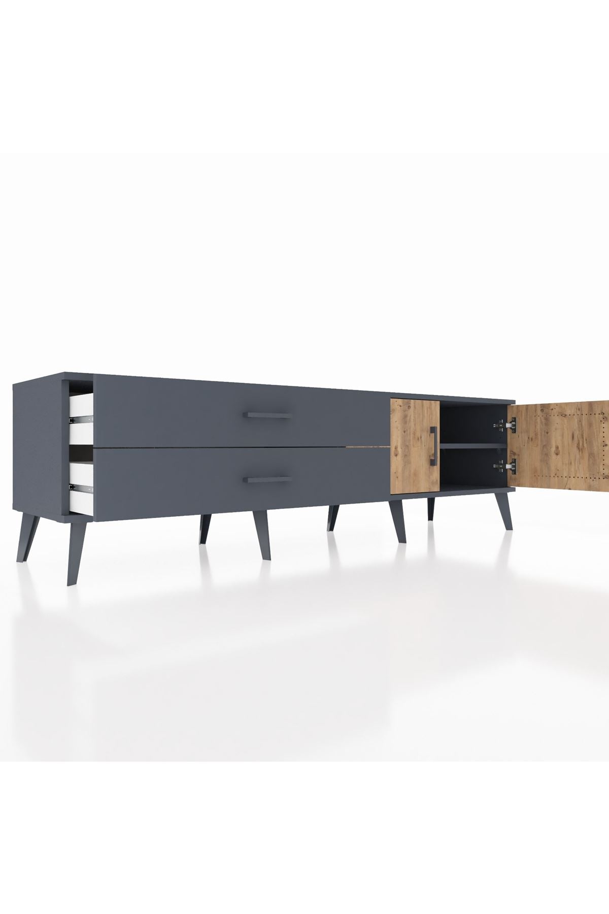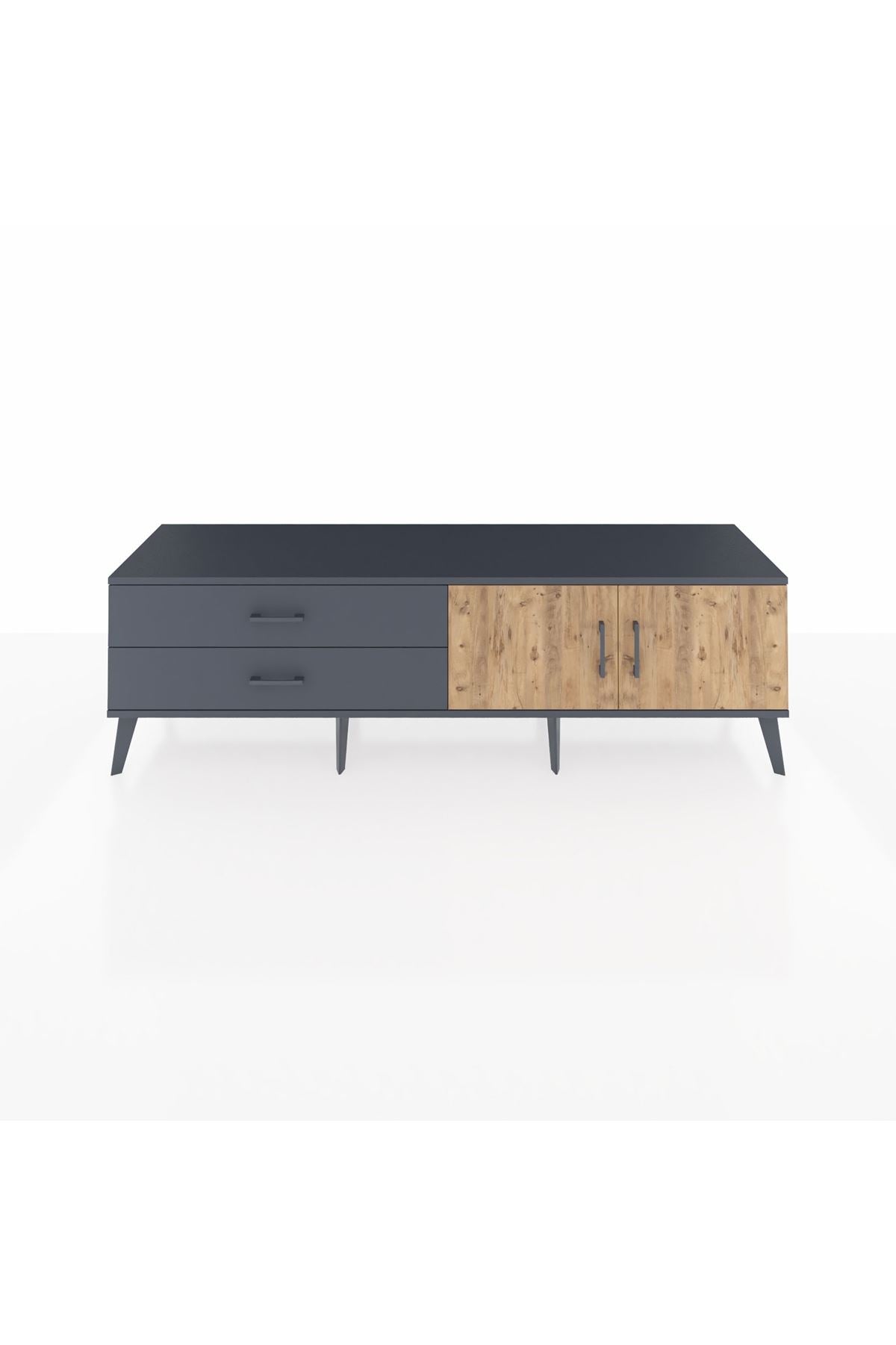 Hyperion TV Ünitesi Tek Raflı 2 Çekmeceli 2 Kapaklı 176x44x51 Antrasit-Çam/Antrasit