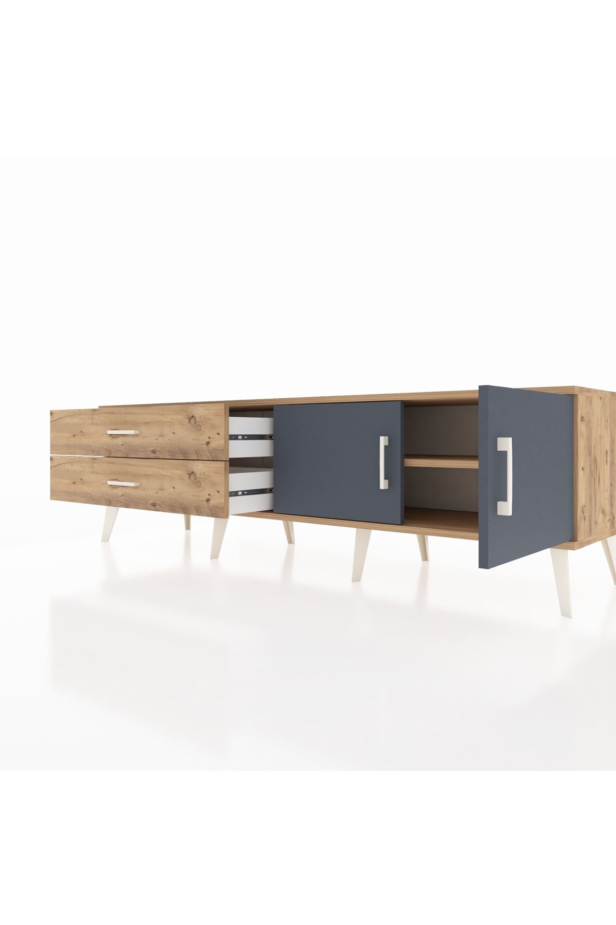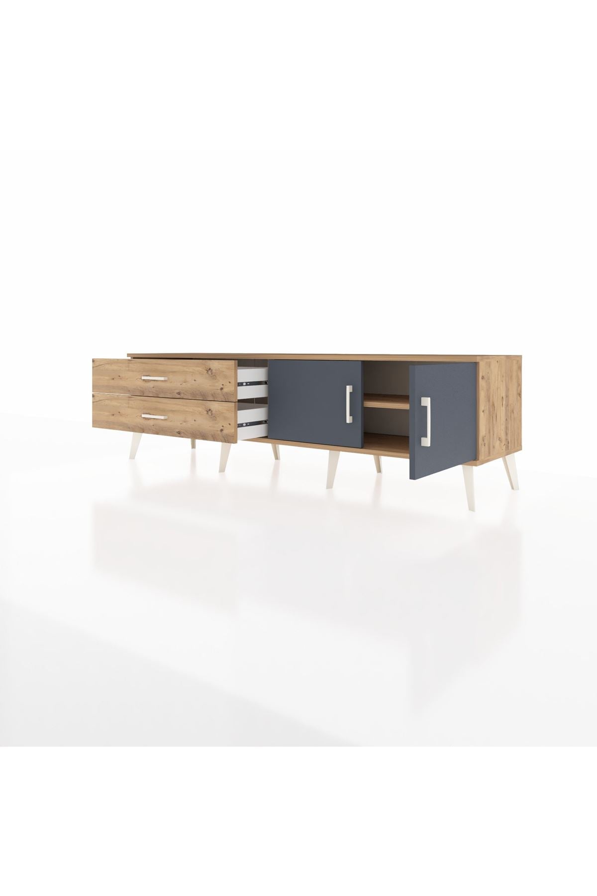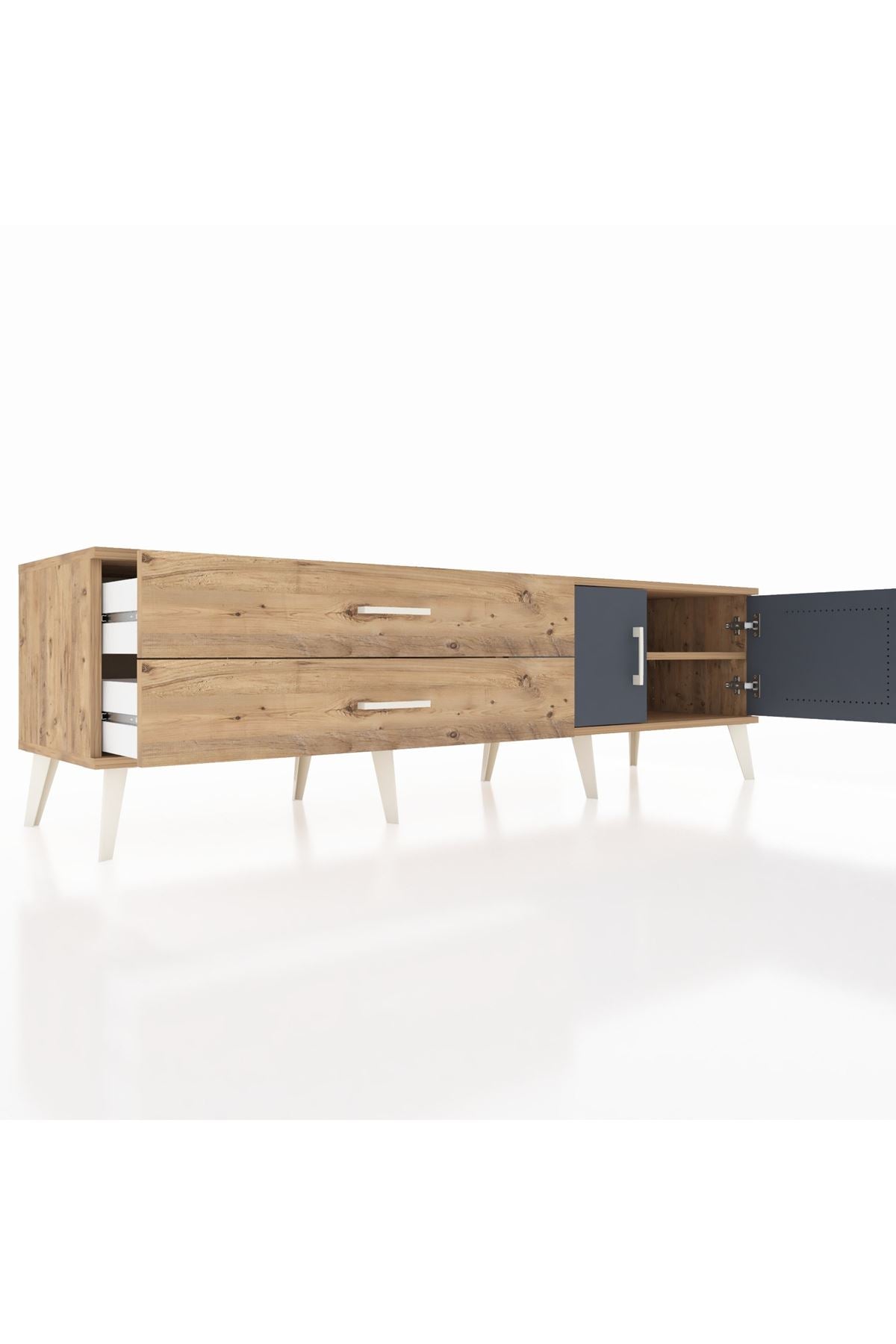 Hyperion TV Ünitesi Tek Raflı 2 Çekmeceli 2 Kapaklı 176x44x51 Çam-Antrasit/Çam