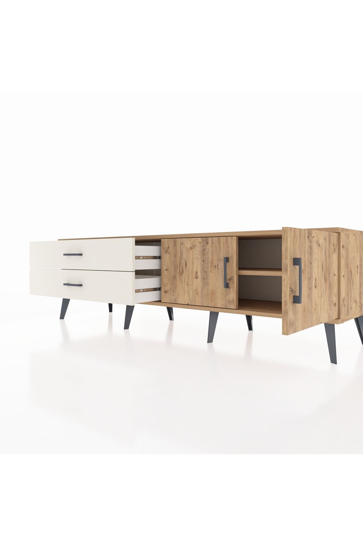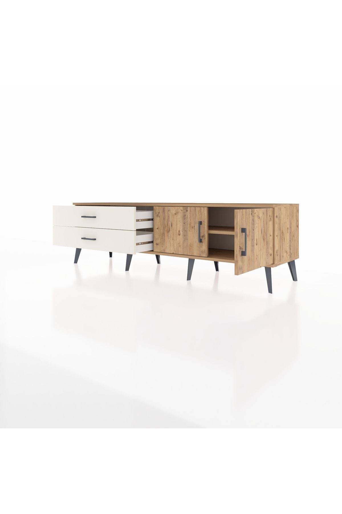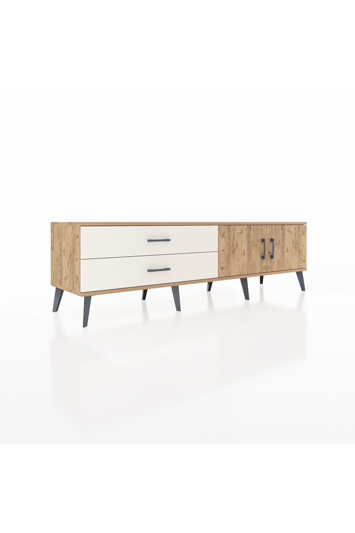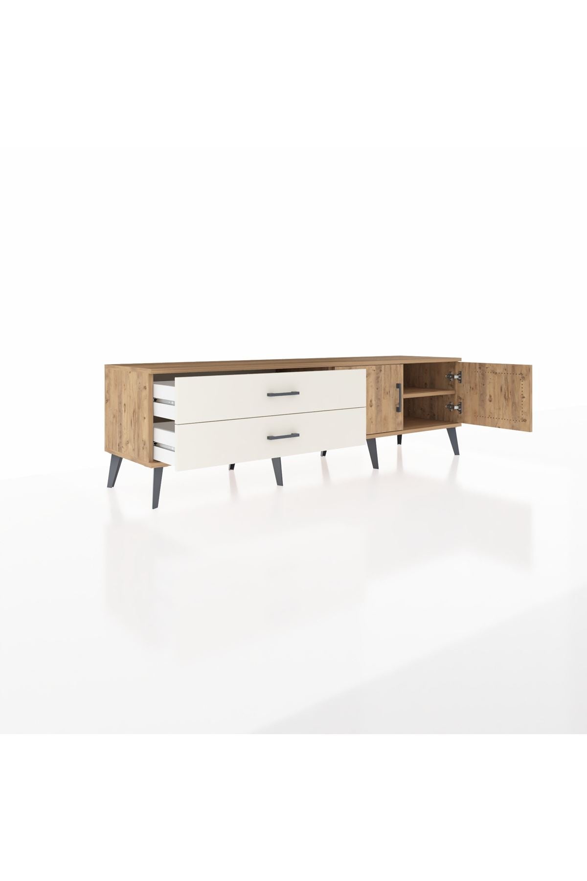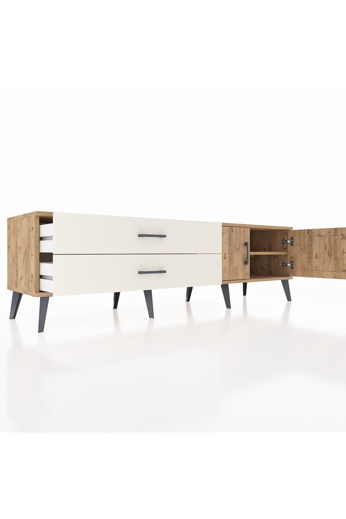 Hyperion TV Ünitesi Tek Raflı 2 Çekmeceli 2 Kapaklı 176x44x51 Çam-Çam/Aytaşı