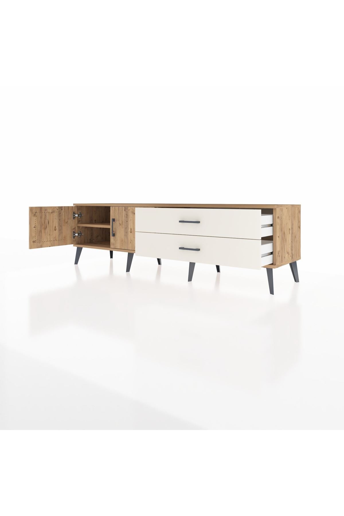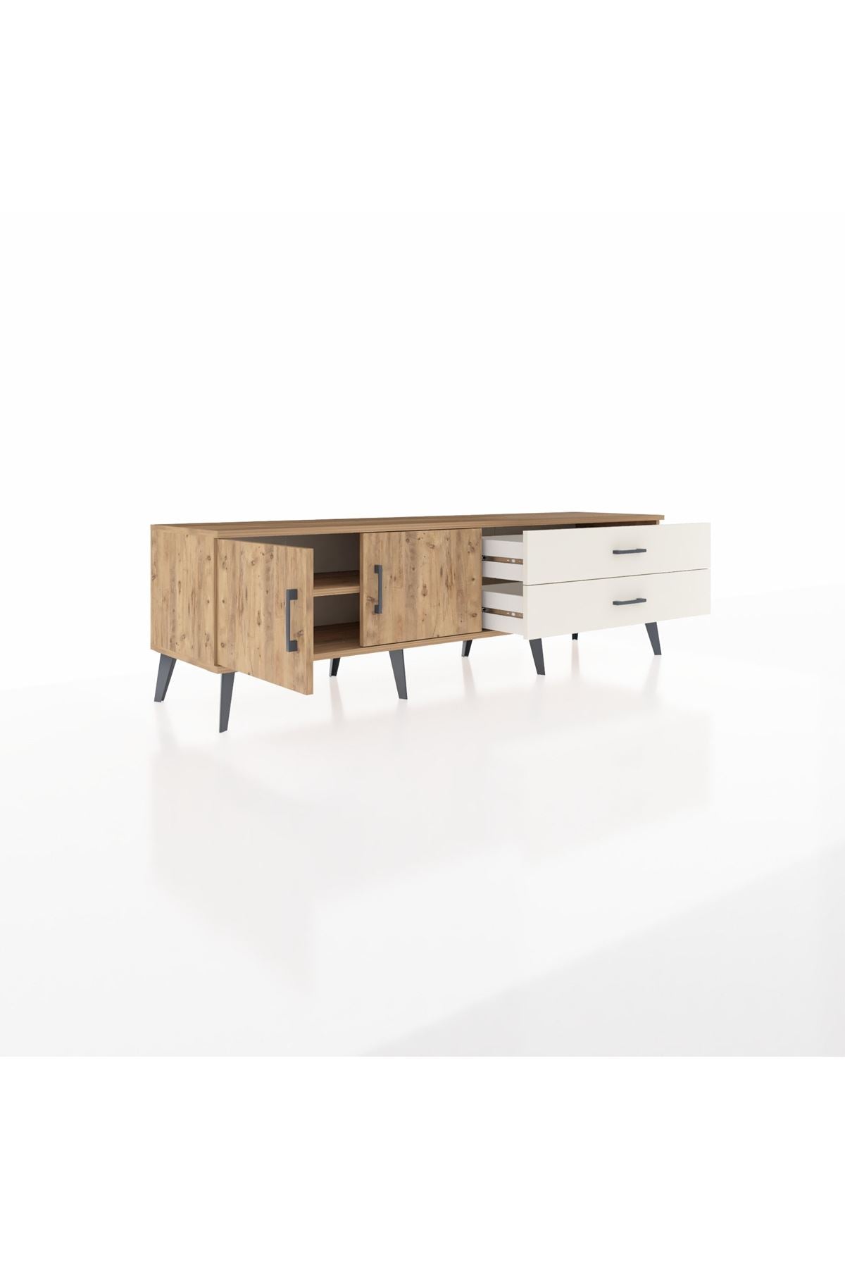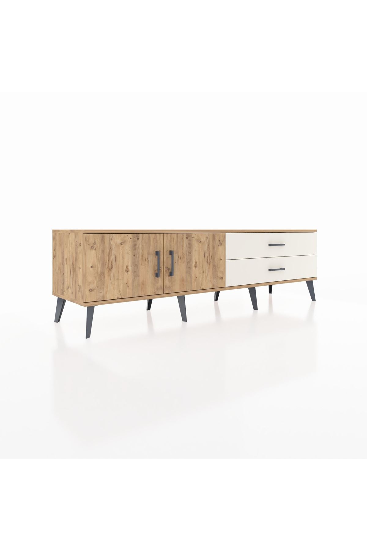 Hyperion TV Ünitesi Tek Raflı 2 Çekmeceli 2 Kapaklı 176x44x51 Çam-Çam/Aytaşı