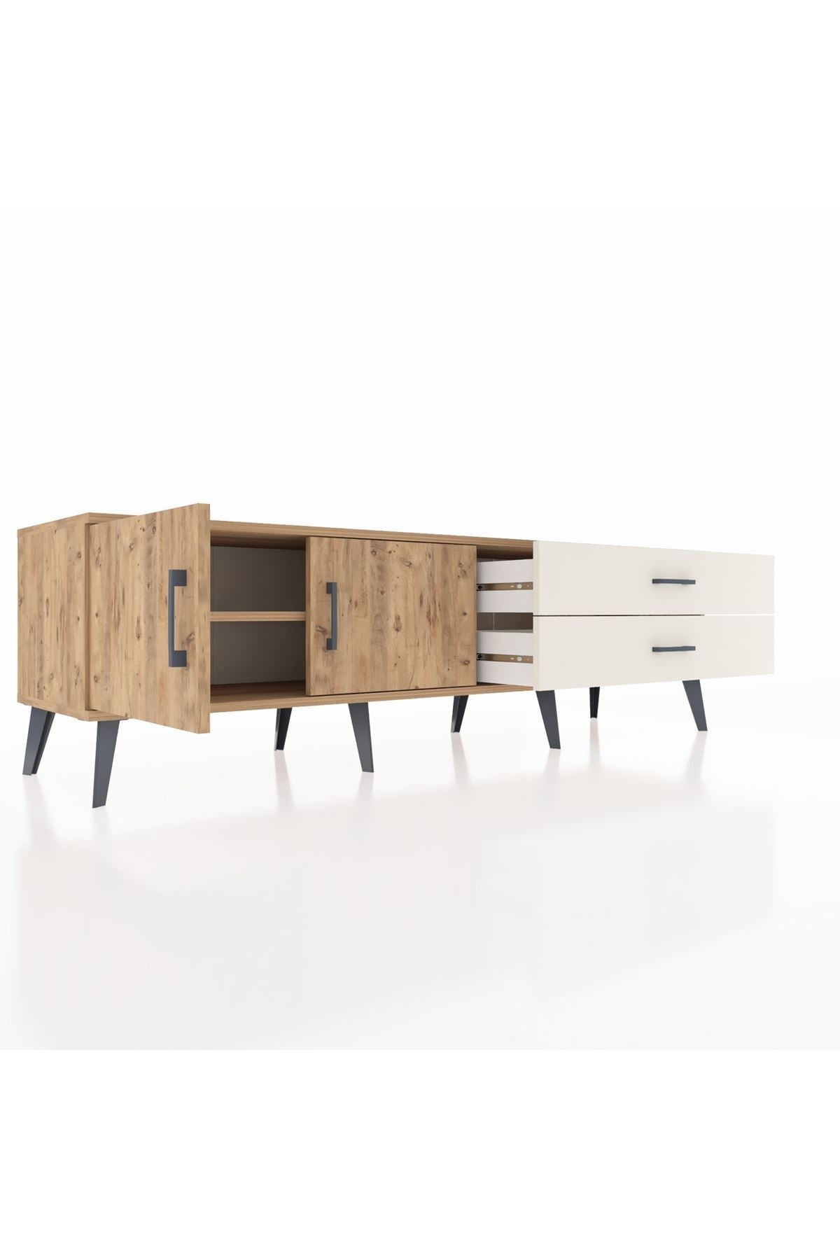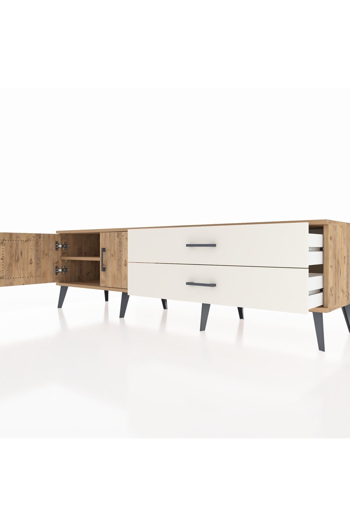 - 📺 Oturma odası: TV ünitesi olarak geniş depolama alanı sunar.