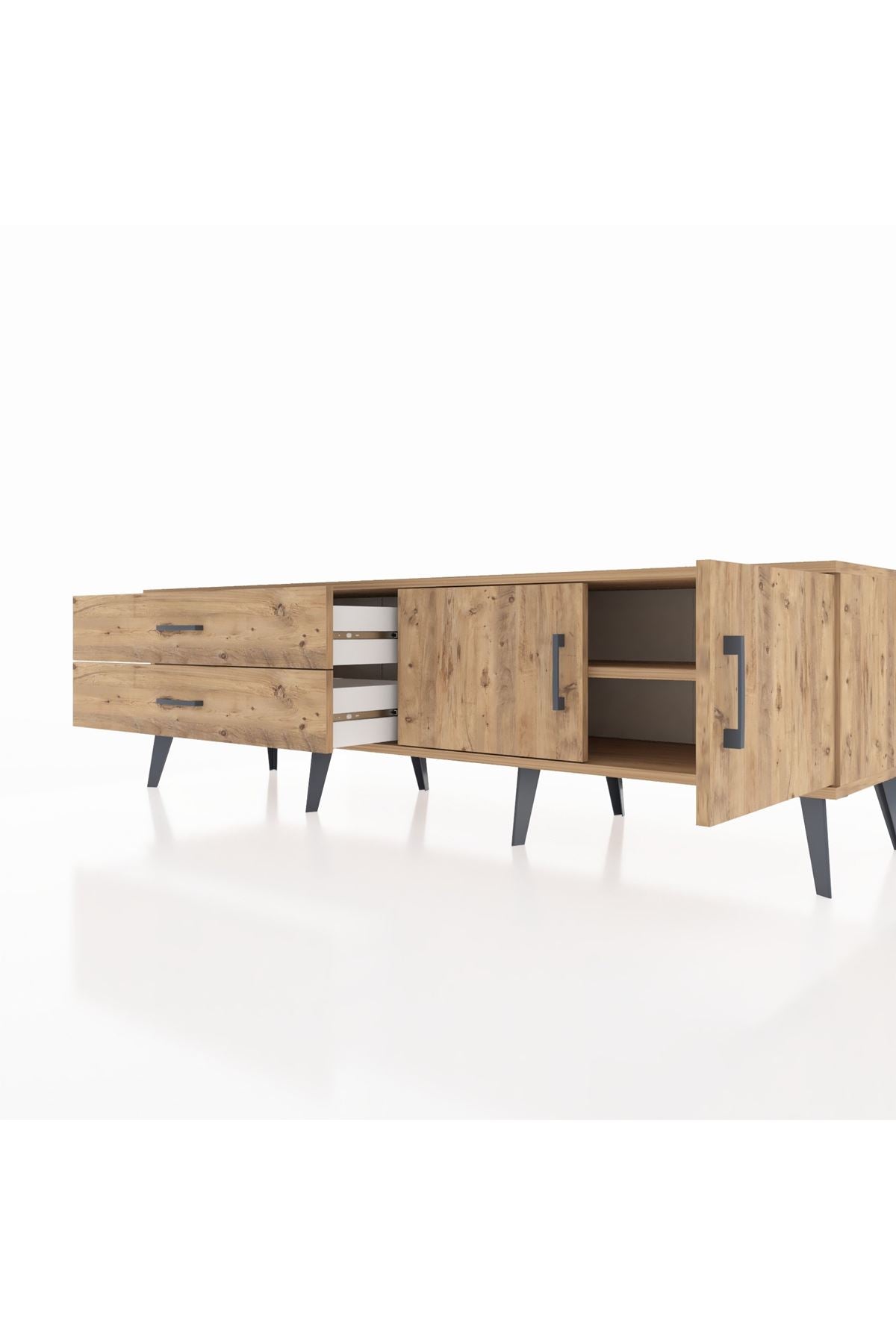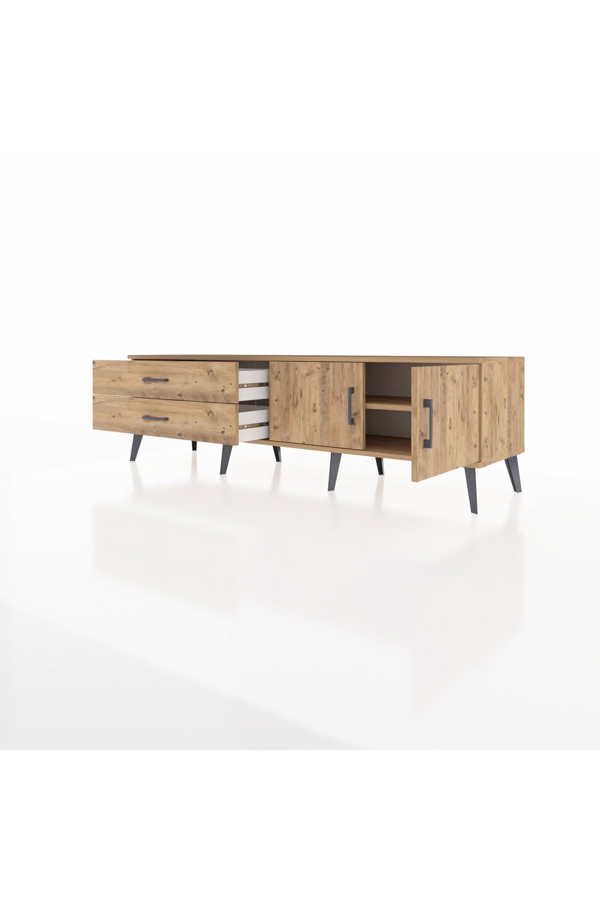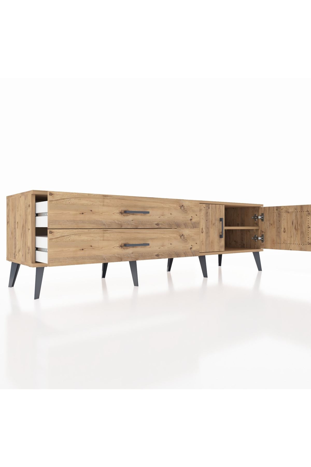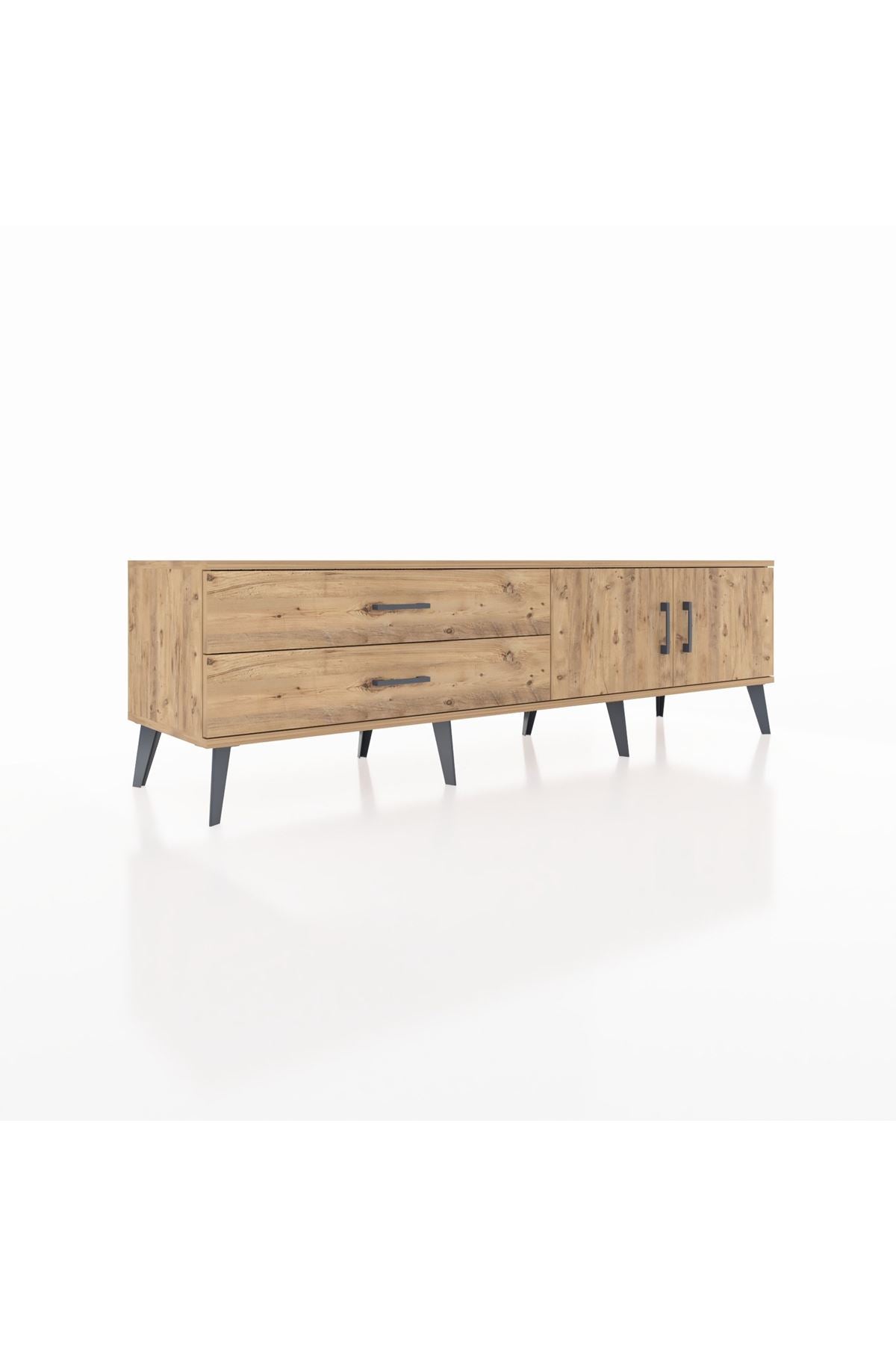 Hyperion TV Ünitesi Tek Raflı 2 Çekmeceli 2 Kapaklı 176x44x51 Çam-Çam/Çam