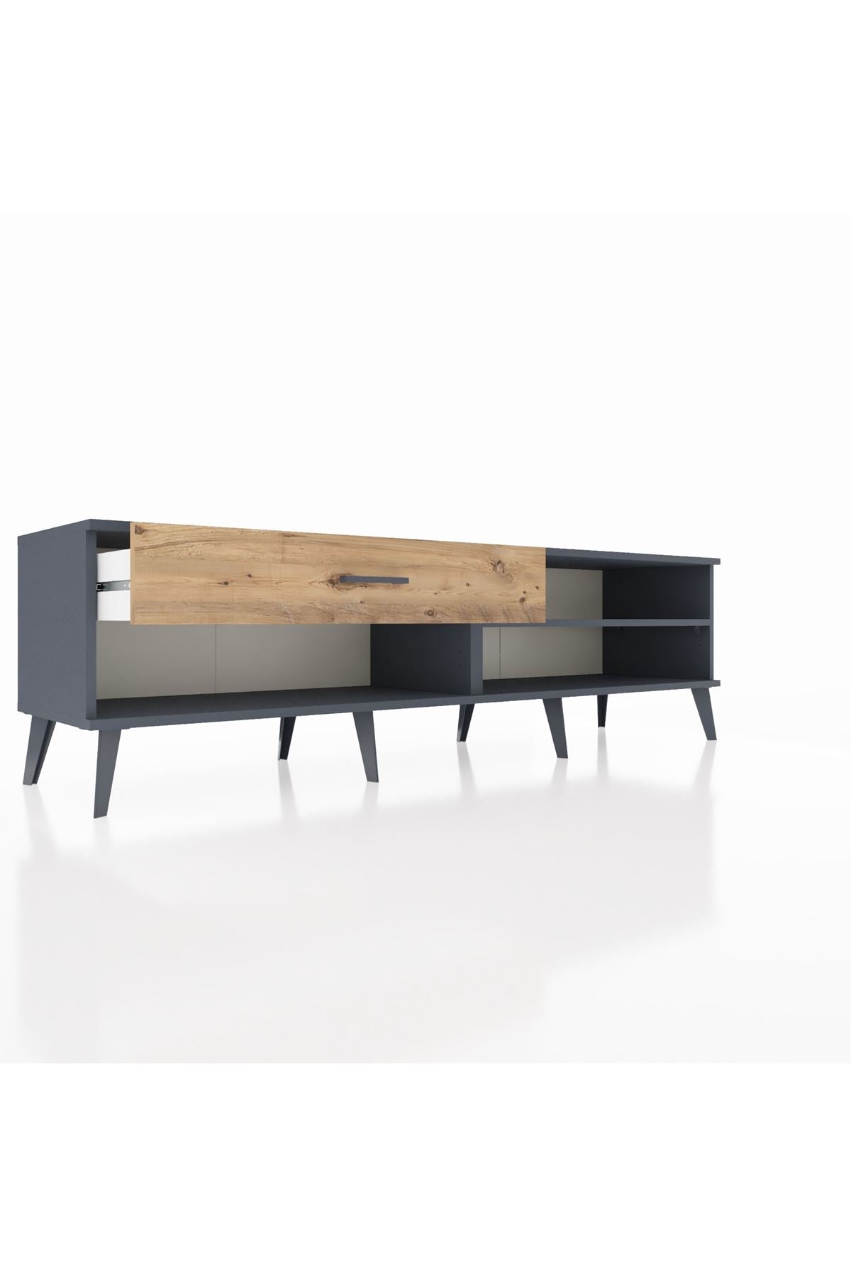 Hyperion TV Ünitesi Tek Raflı Tek Çekmeceli 176x44x51 Antrasit-Antrasit/Çam
