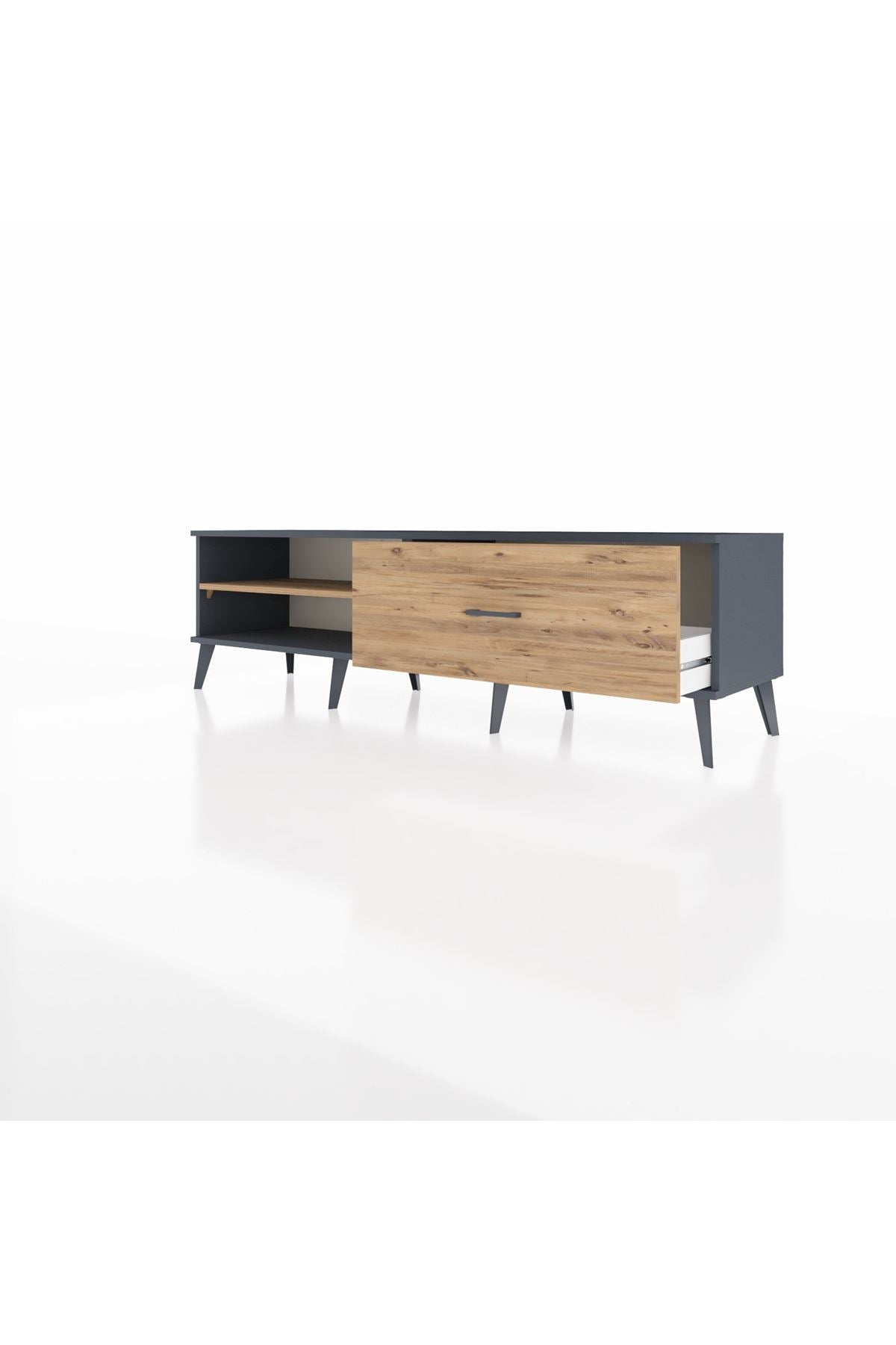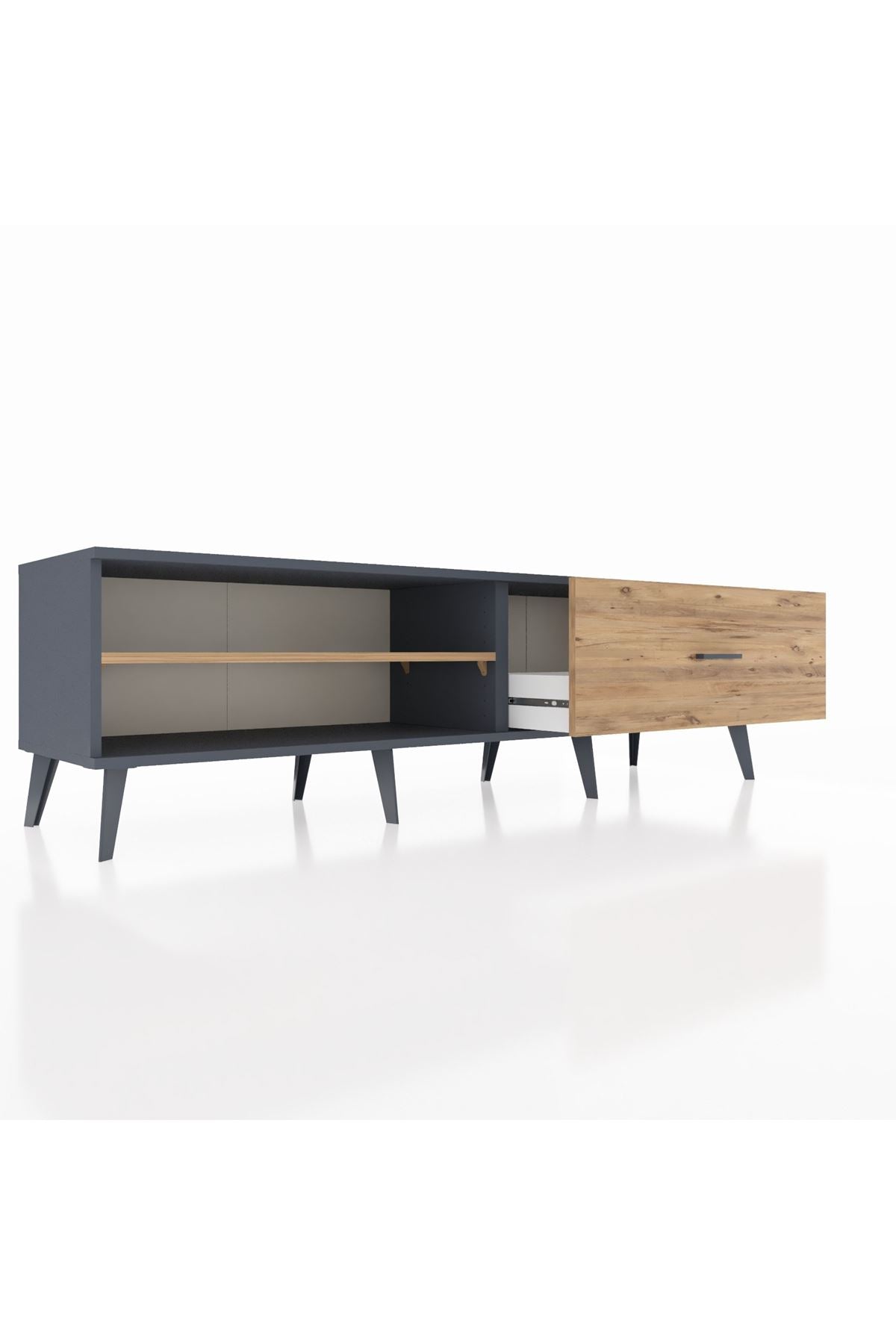 Hyperion TV Ünitesi Tek Raflı Tek Çekmeceli 176x44x51 Antrasit-Çam/Çam