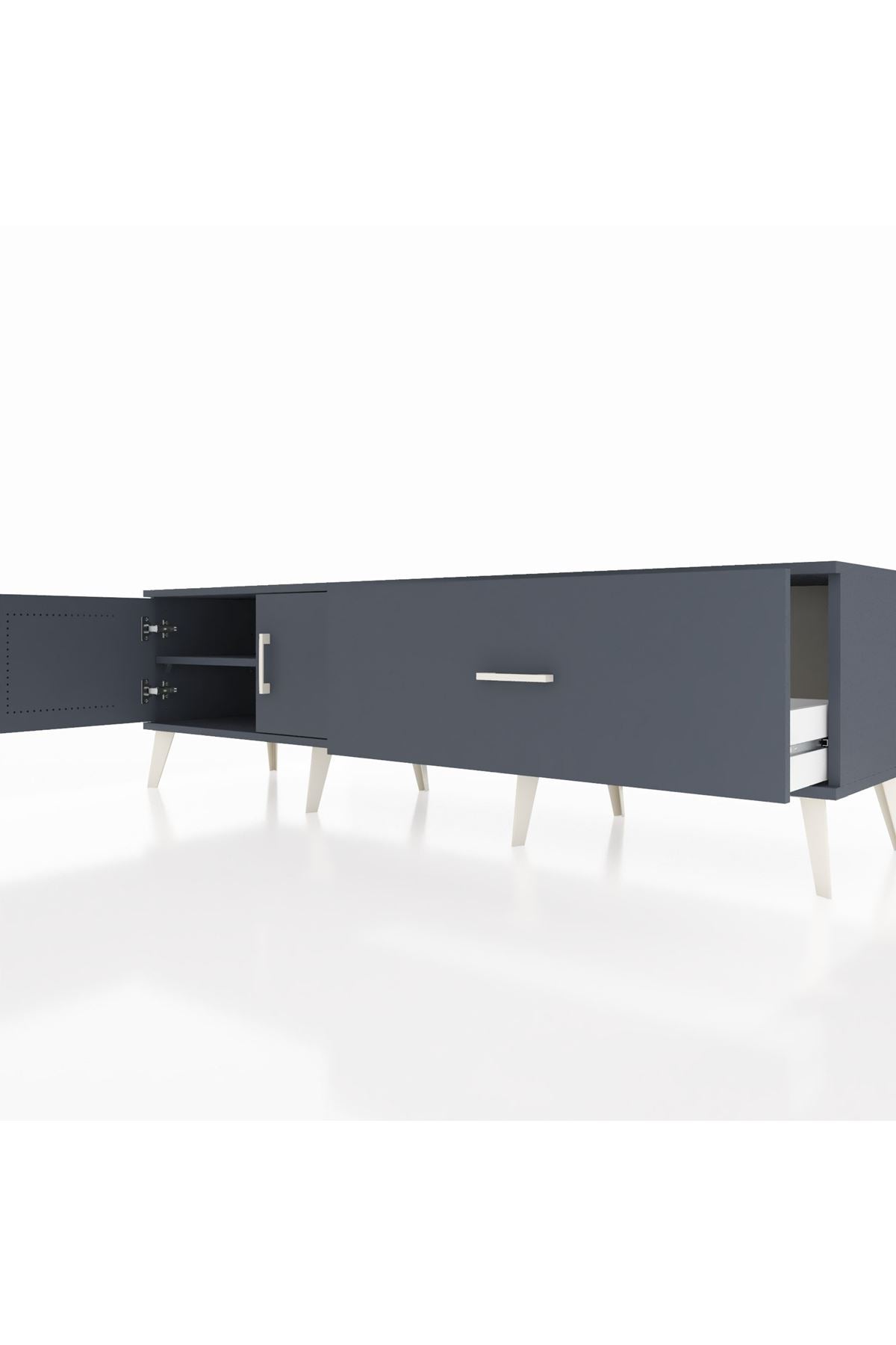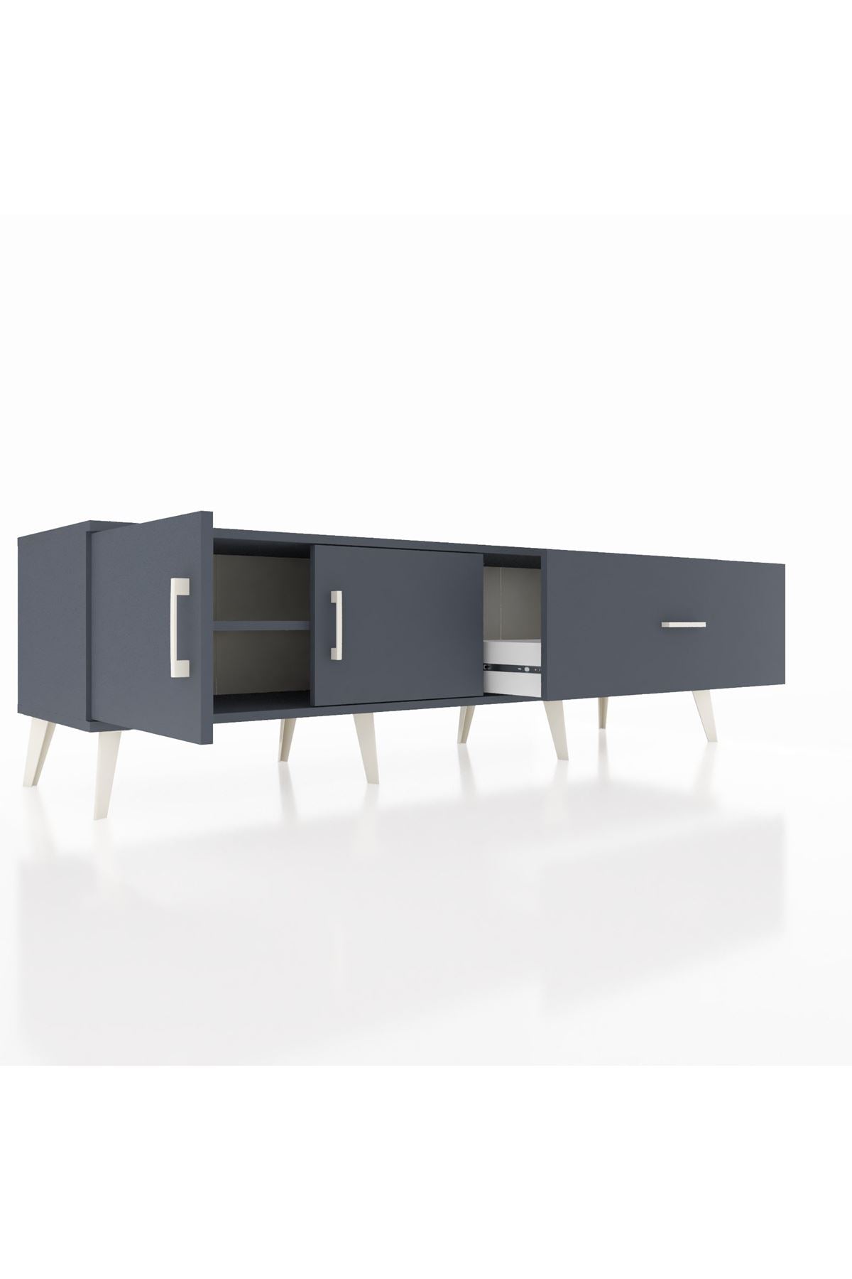 Hyperion TV Ünitesi Tek Raflı Tek Çekmeceli 2 Kapaklı 176x44x51 Antrasit-Antrasit/Antrasit