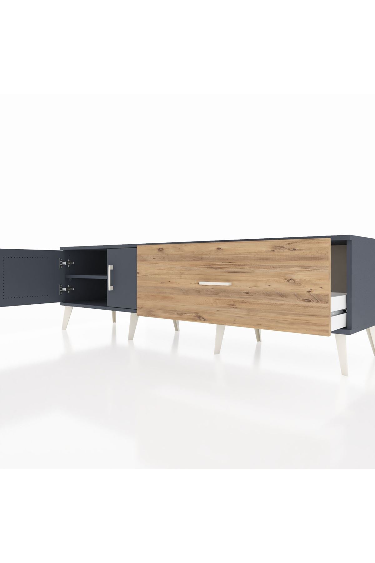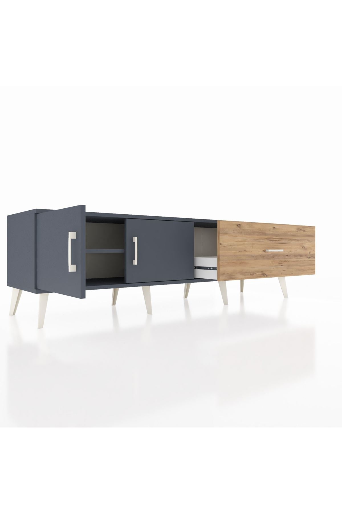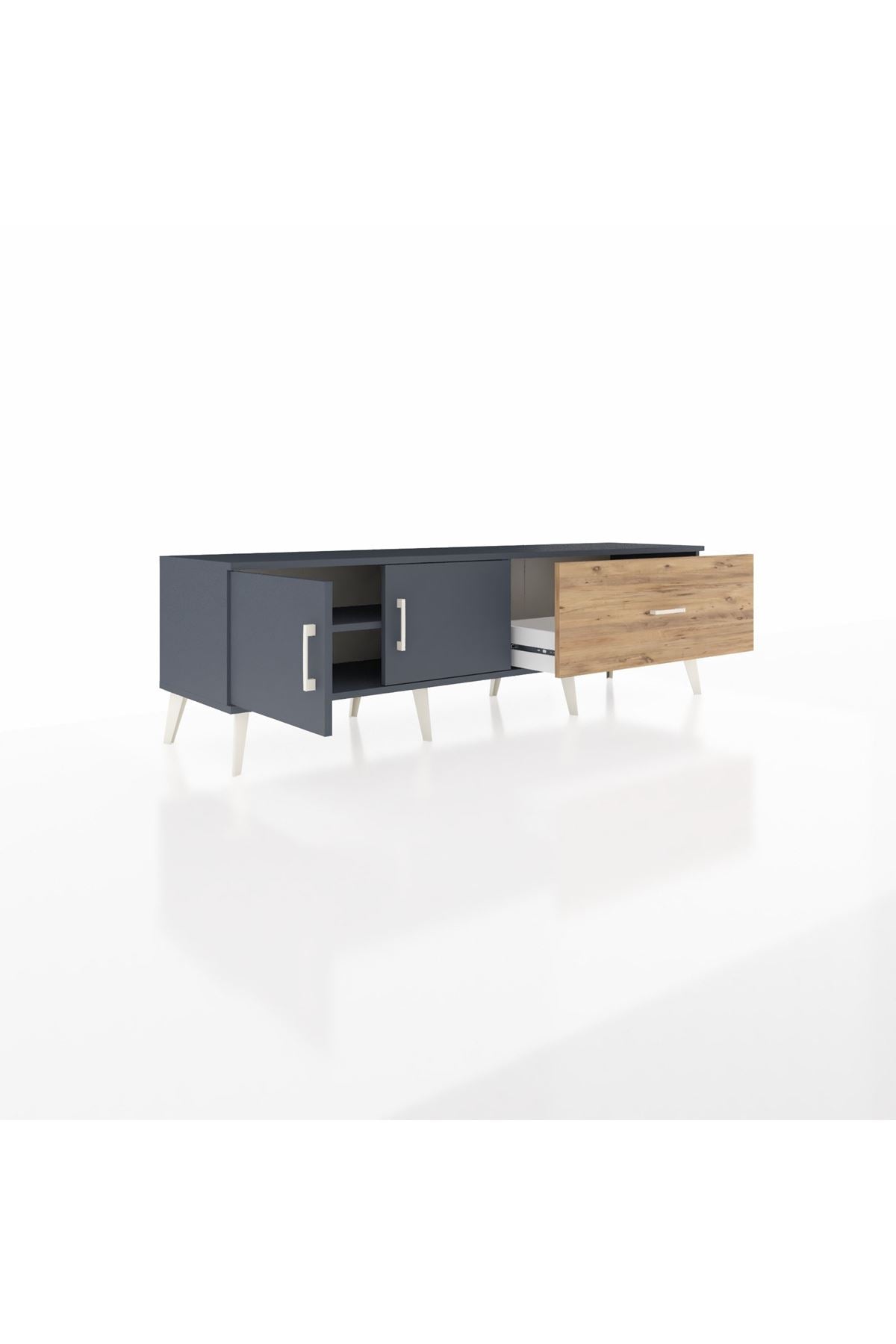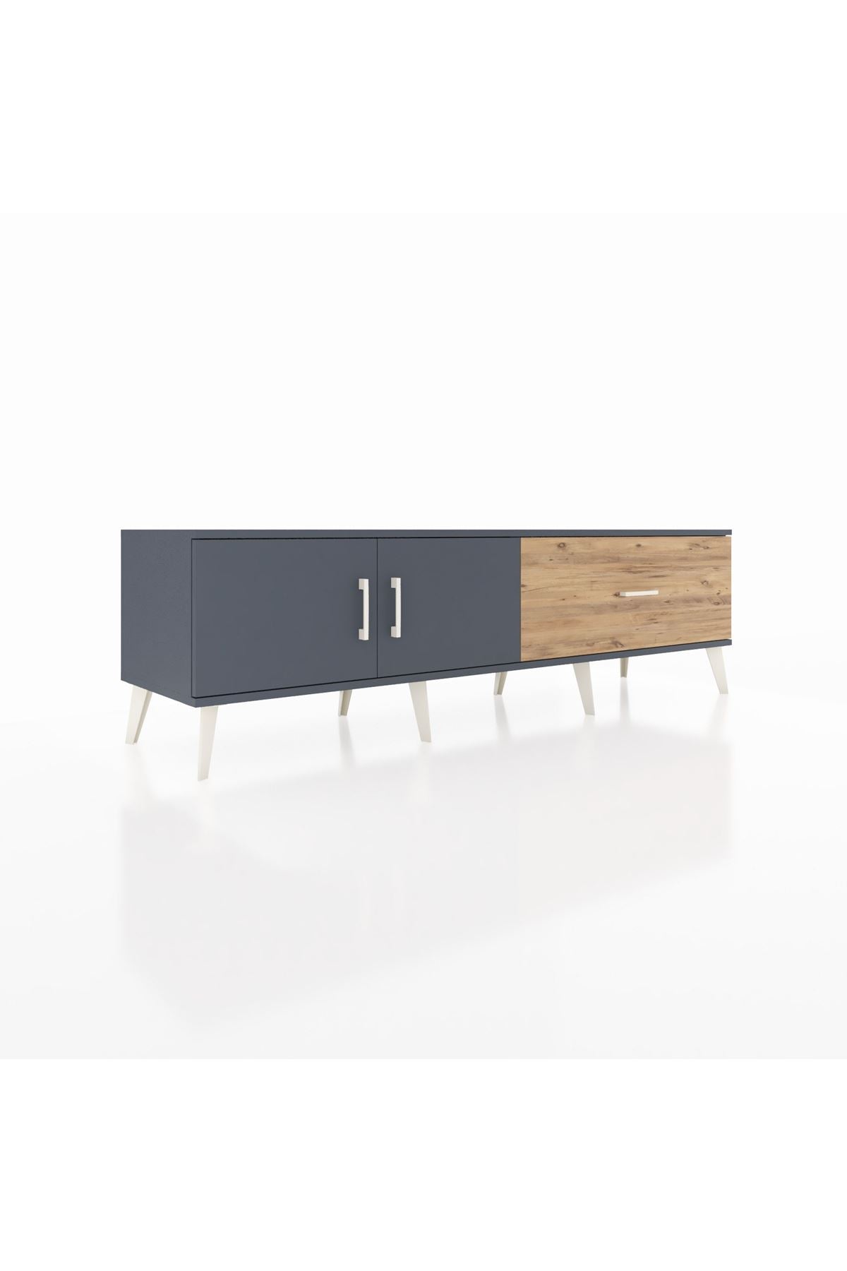 Hyperion TV Ünitesi Tek Raflı Tek Çekmeceli 2 Kapaklı 176x44x51 Antrasit-Antrasit/Çam