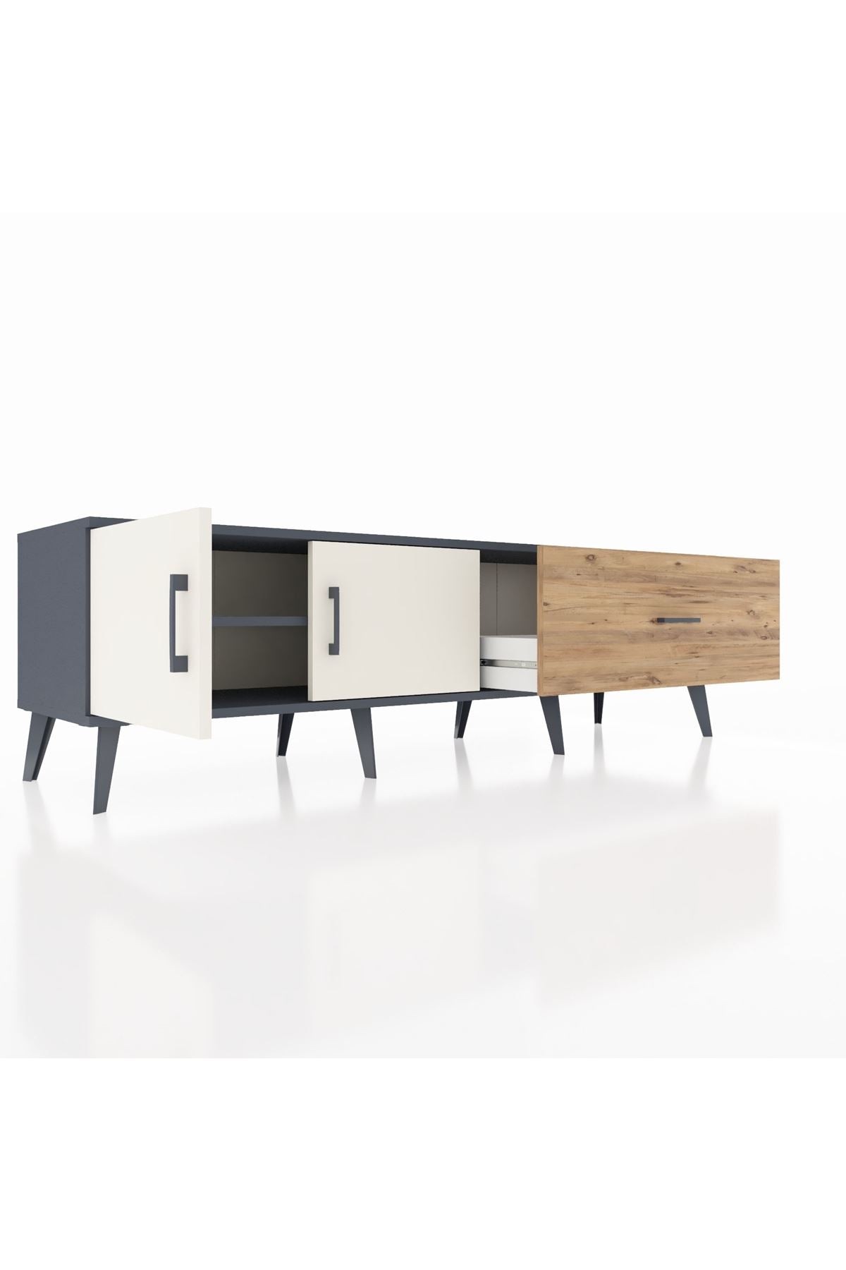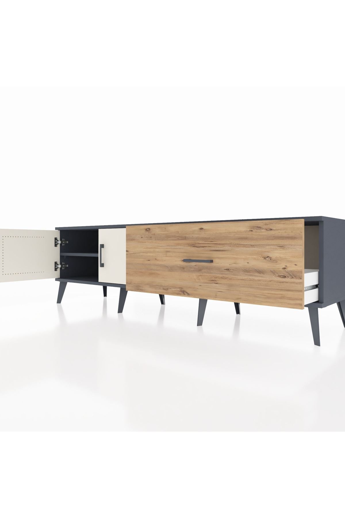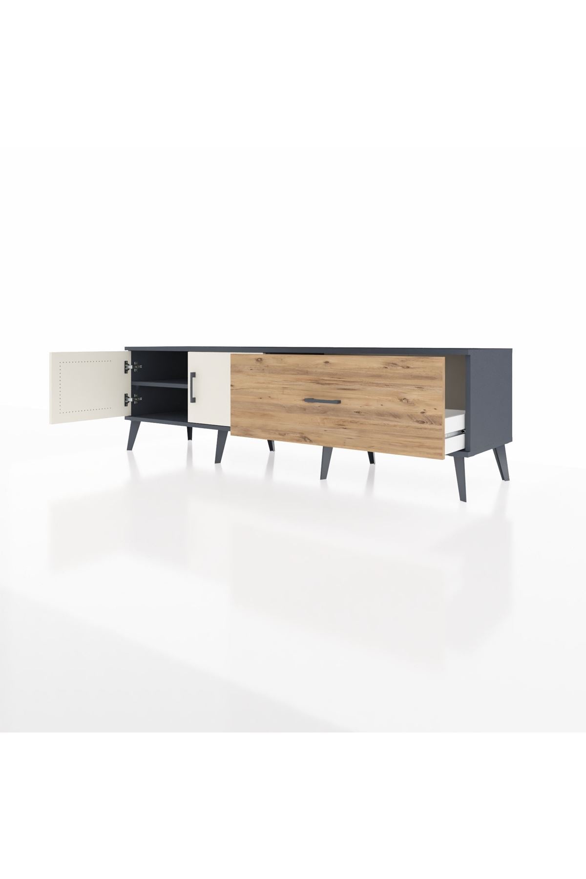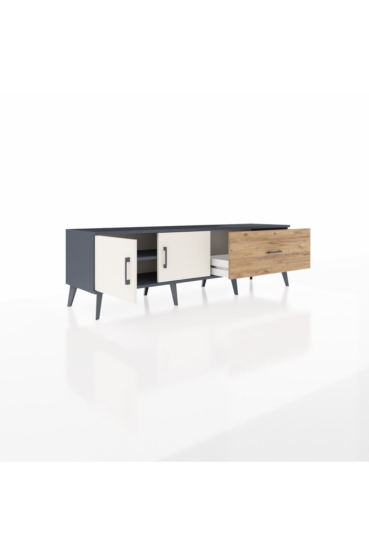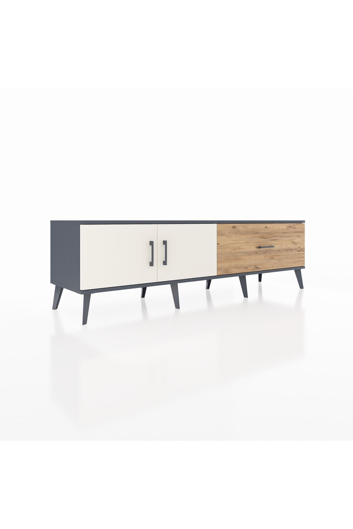 Hyperion TV Ünitesi Tek Raflı Tek Çekmeceli 2 Kapaklı 176x44x51 Antrasit-Aytaşı/Çam