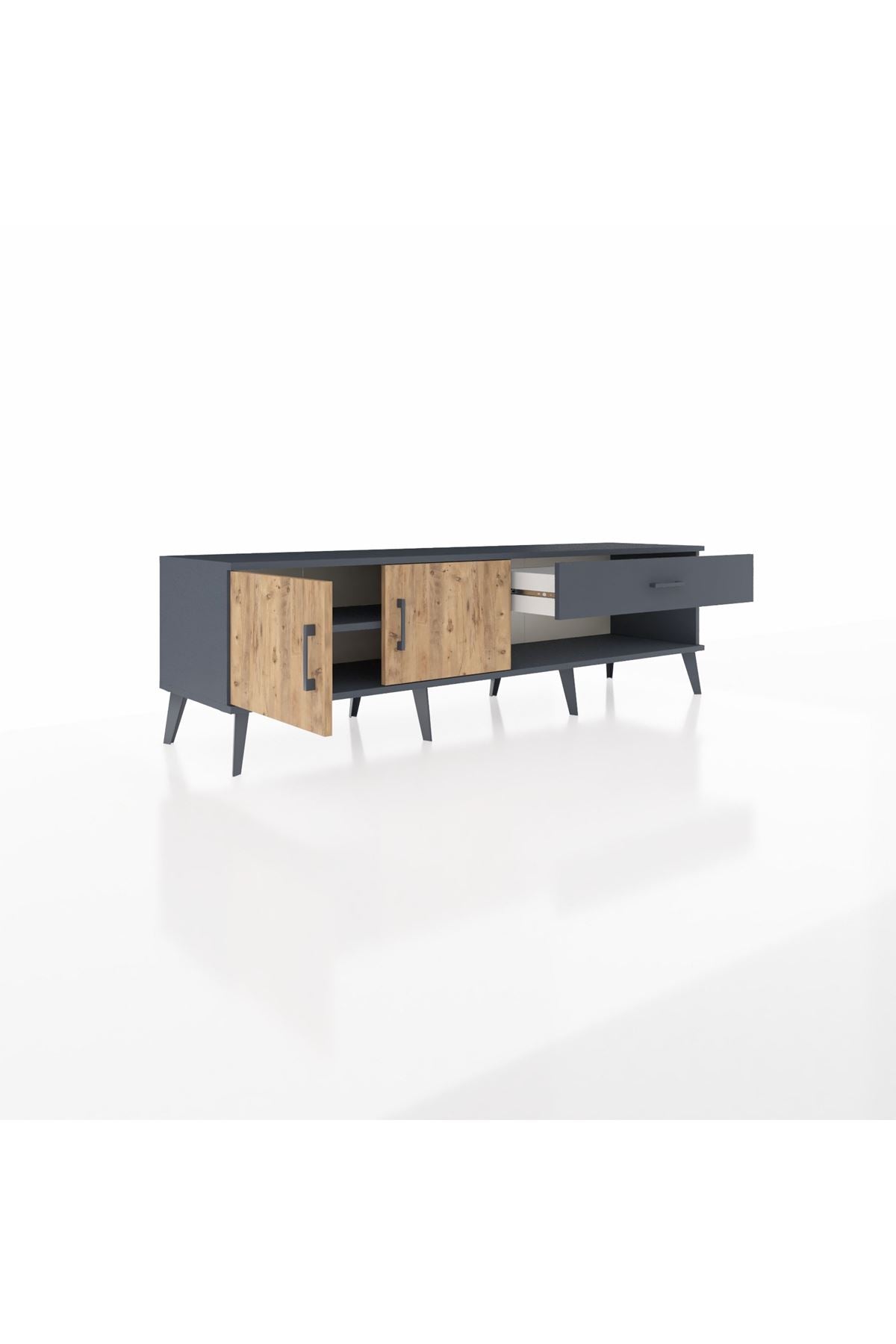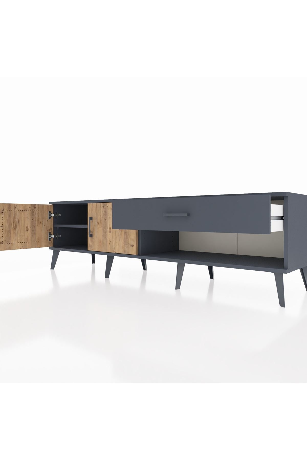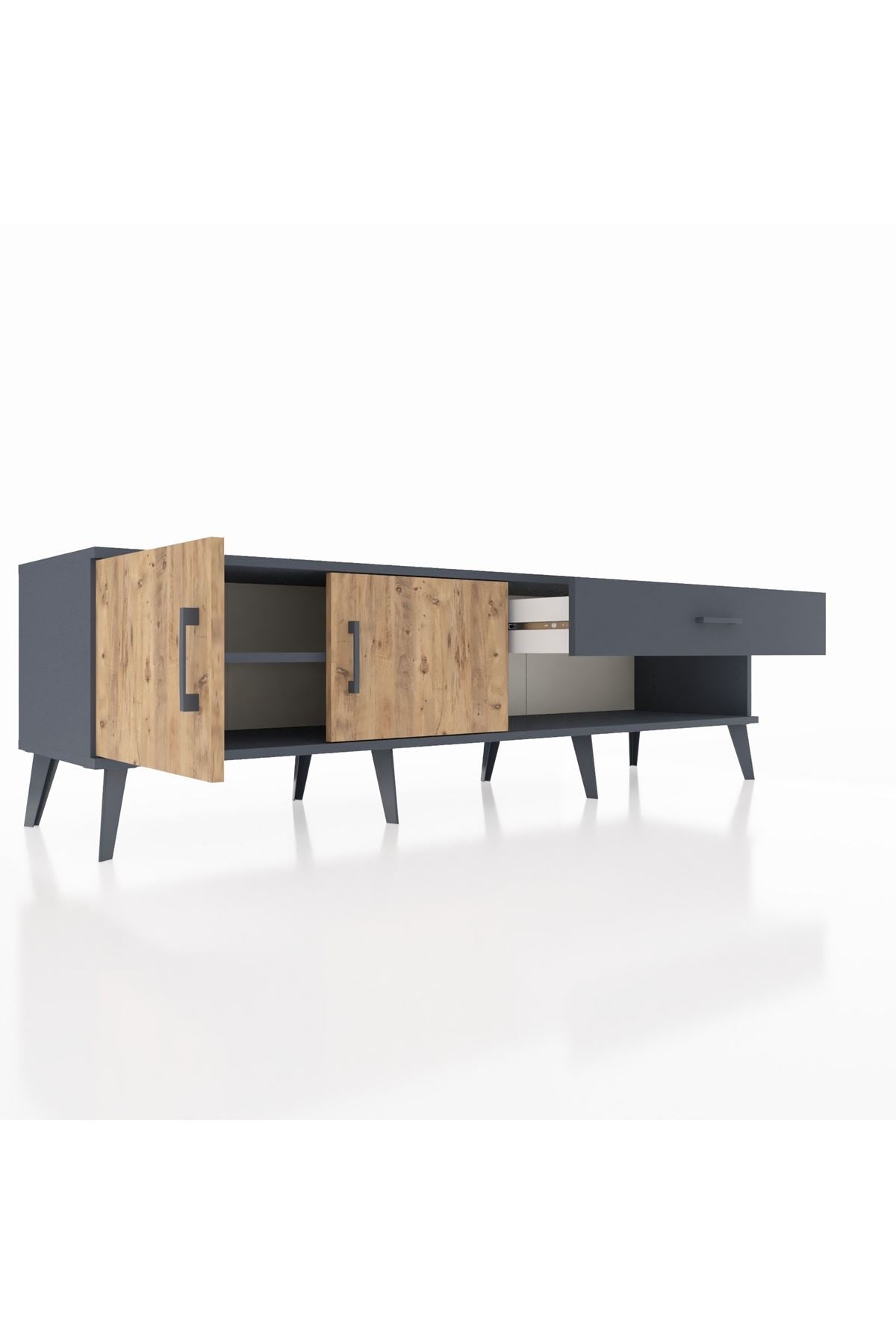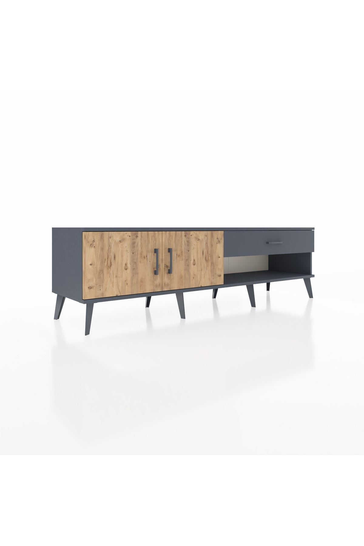 Hyperion TV Ünitesi Tek Raflı Tek Çekmeceli 2 Kapaklı 176x44x51 Antrasit-Çam/Antrasit