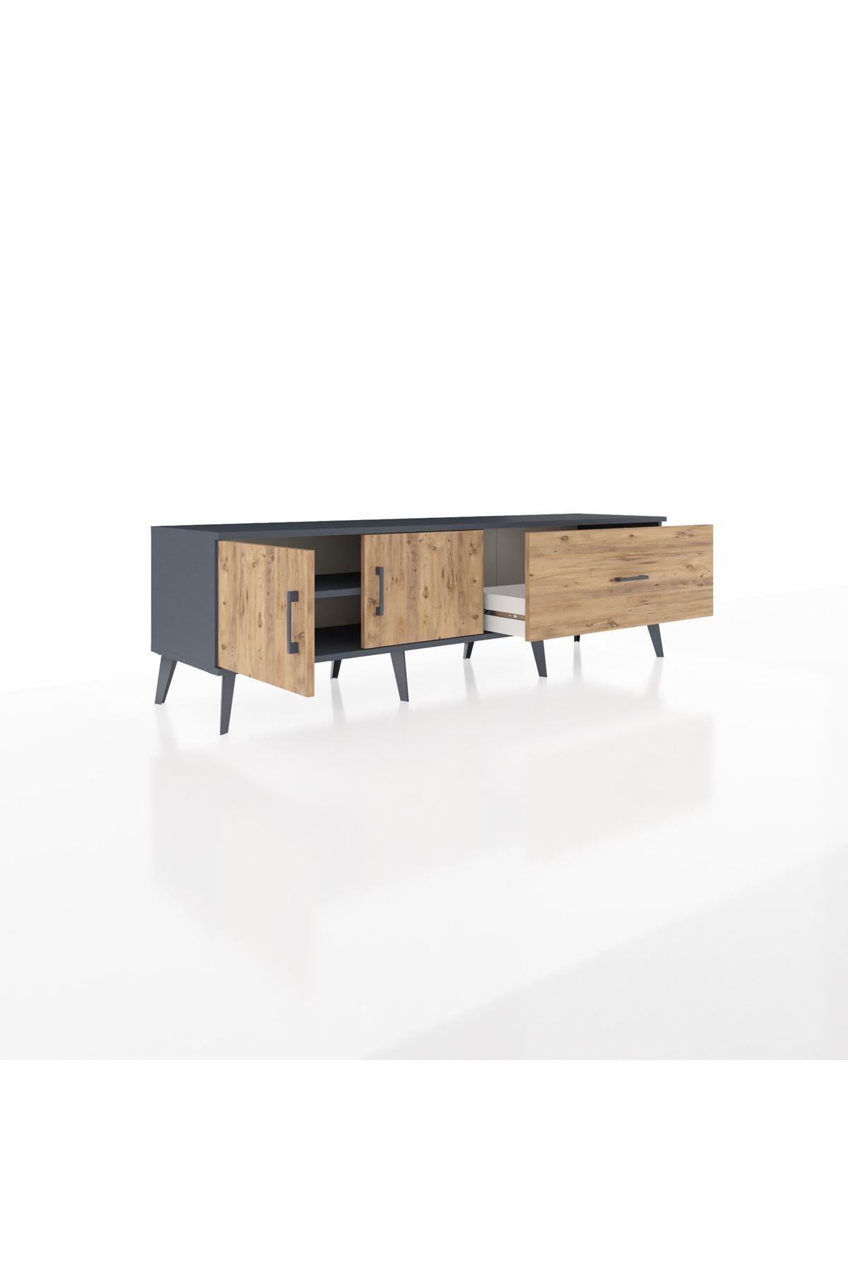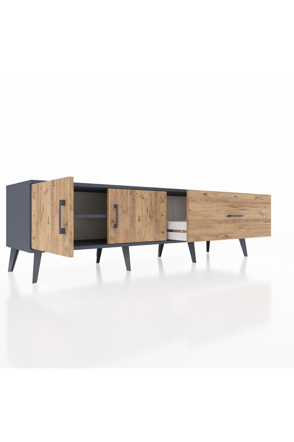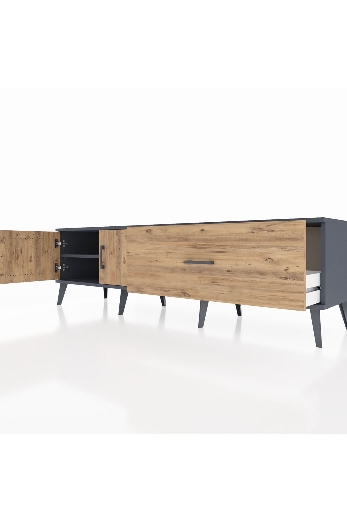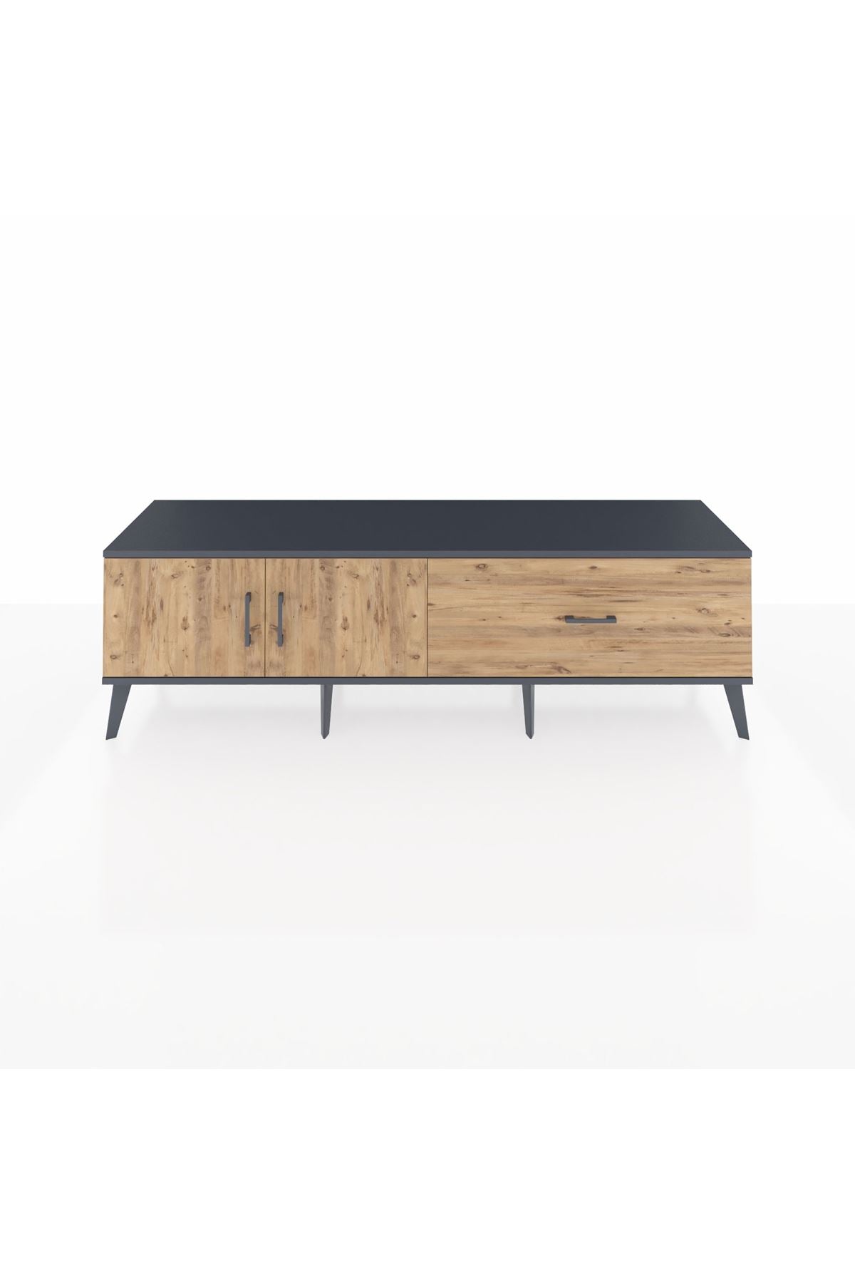 Hyperion TV Ünitesi Tek Raflı Tek Çekmeceli 2 Kapaklı 176x44x51 Antrasit-Çam/Çam
