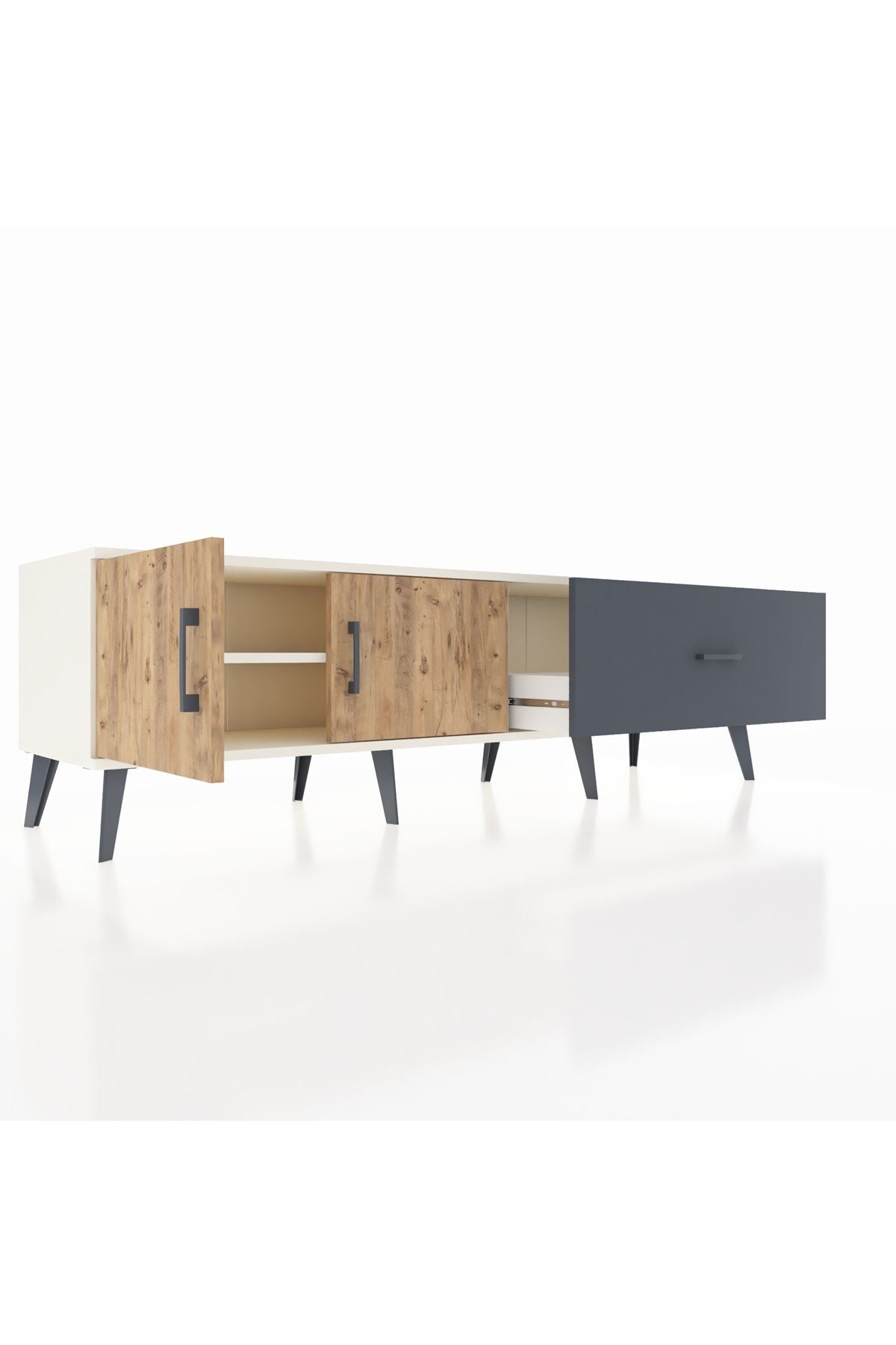 Hyperion TV Ünitesi Tek Raflı Tek Çekmeceli 2 Kapaklı 176x44x51 Aytaşı-Çam/Antrasit
