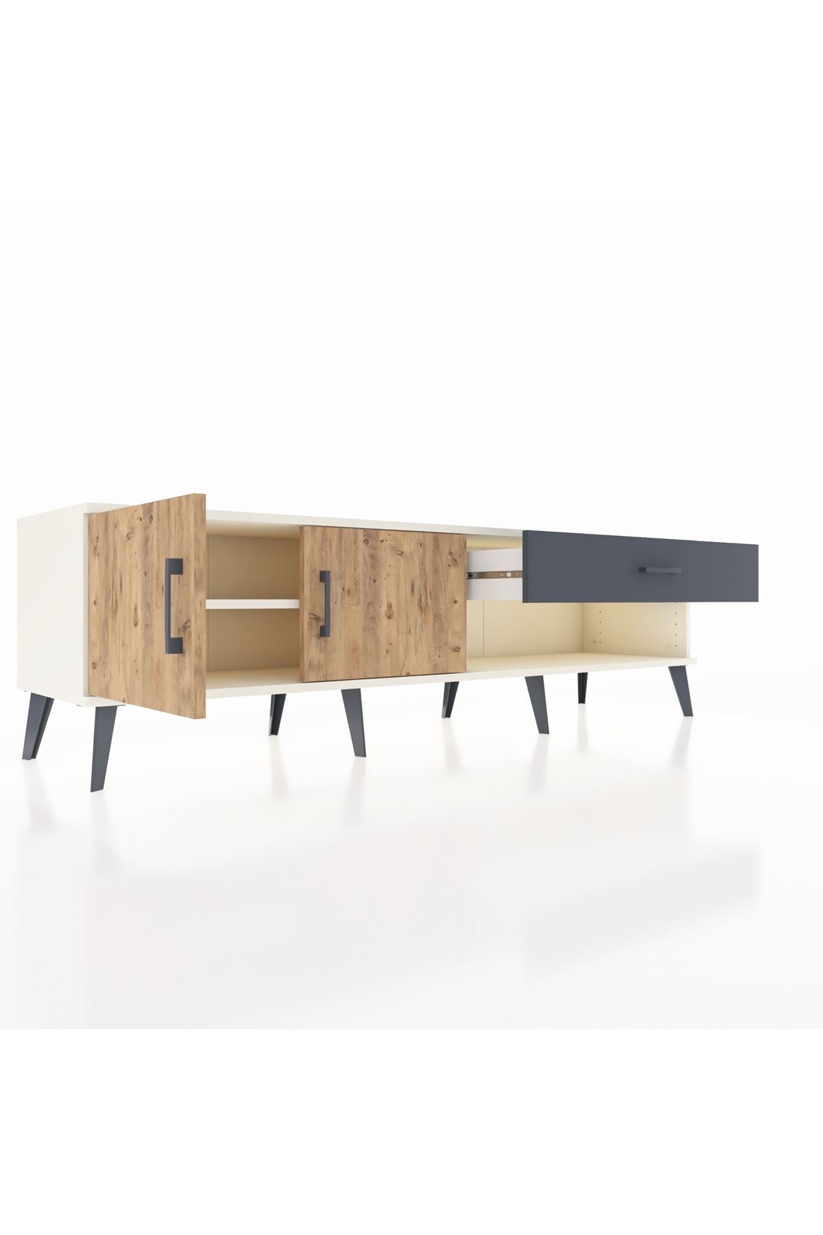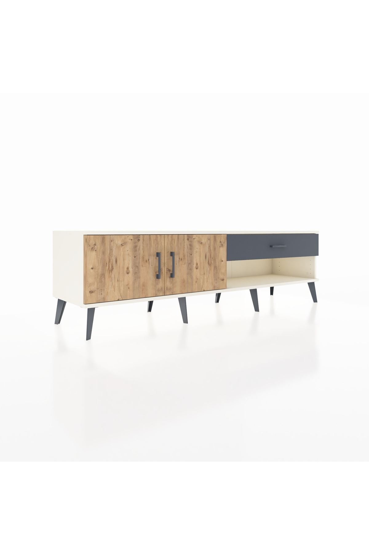 Hyperion TV Ünitesi Tek Raflı Tek Çekmeceli 2 Kapaklı 176x44x51 Aytaşı-Çam/Antrasit