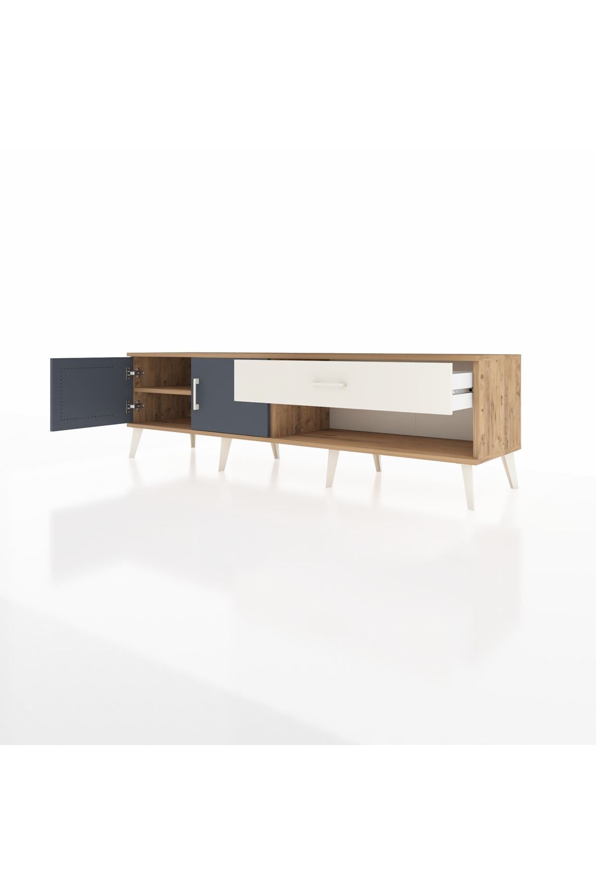 Hyperion TV Ünitesi Tek Raflı Tek Çekmeceli 2 Kapaklı 176x44x51 Çam-Antrasit/Aytaşı