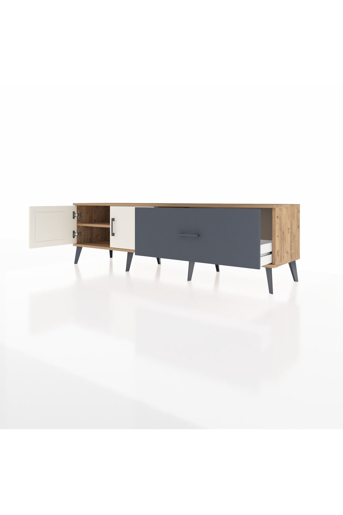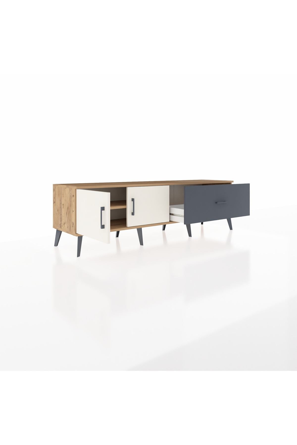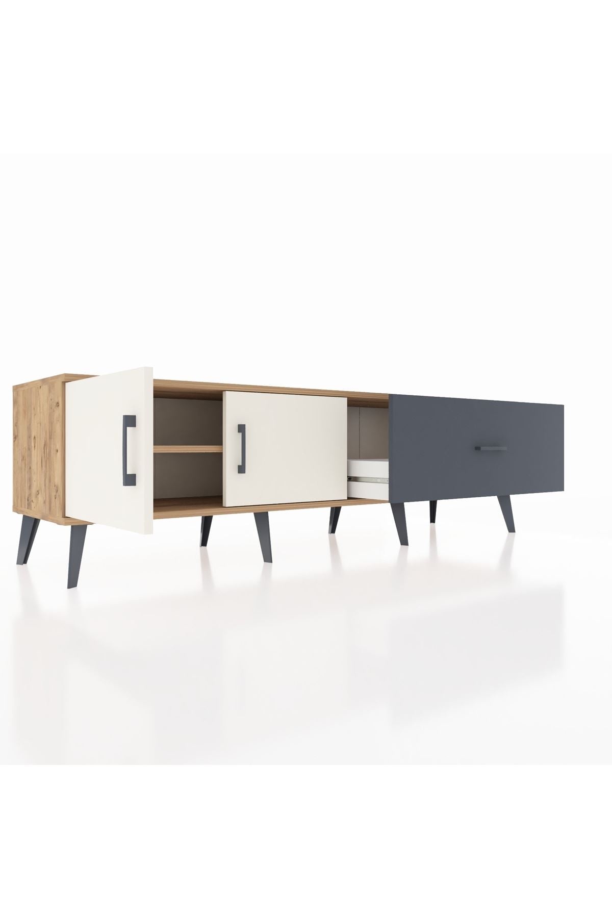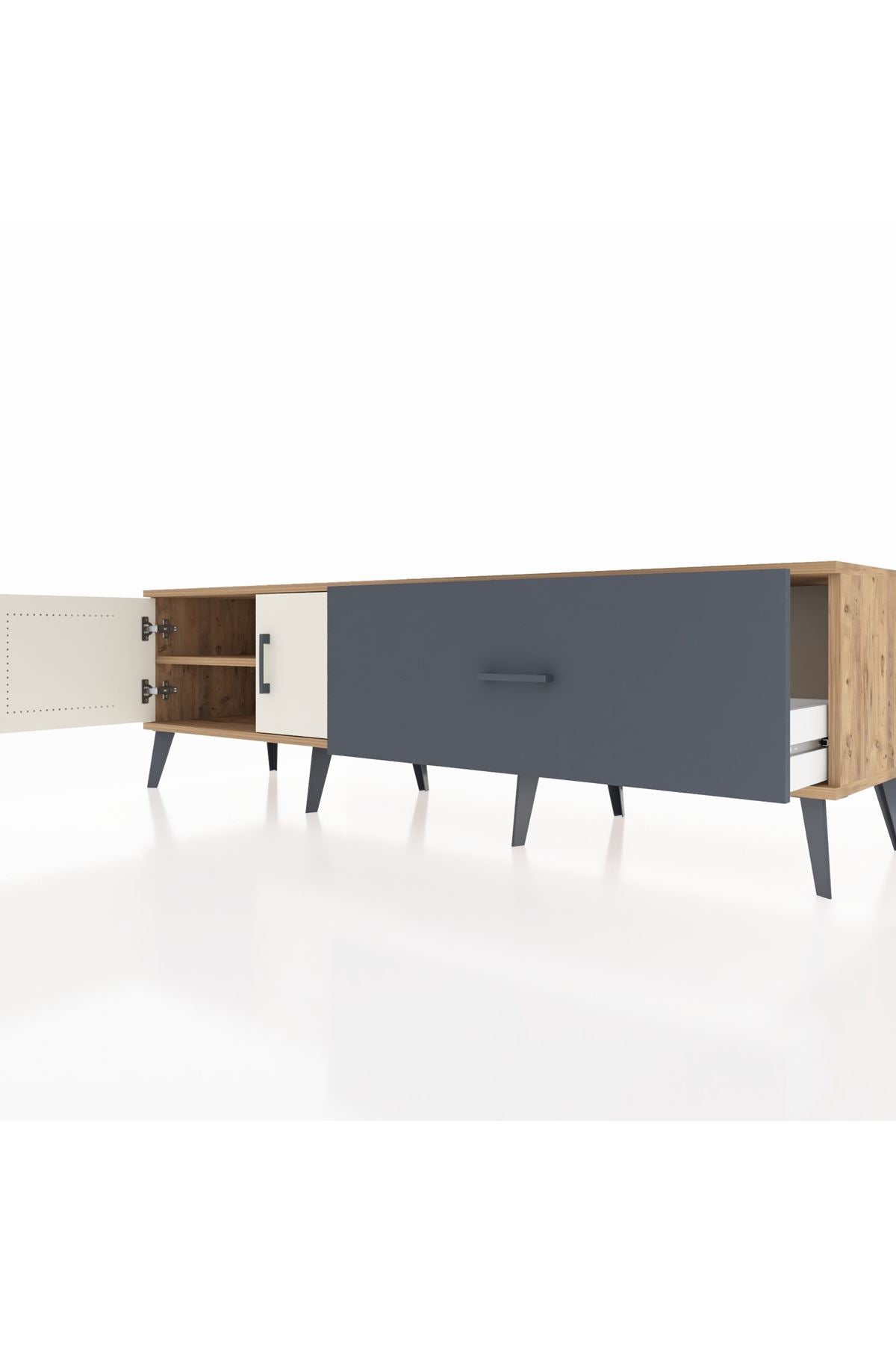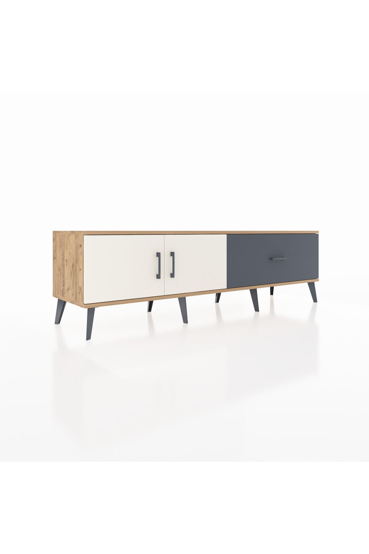 Hyperion TV Ünitesi Tek Raflı Tek Çekmeceli 2 Kapaklı 176x44x51 Çam-Aytaşı/Antrasit