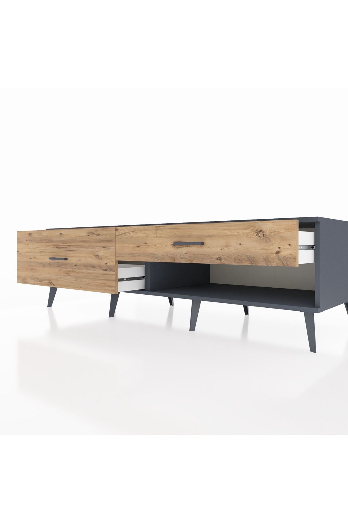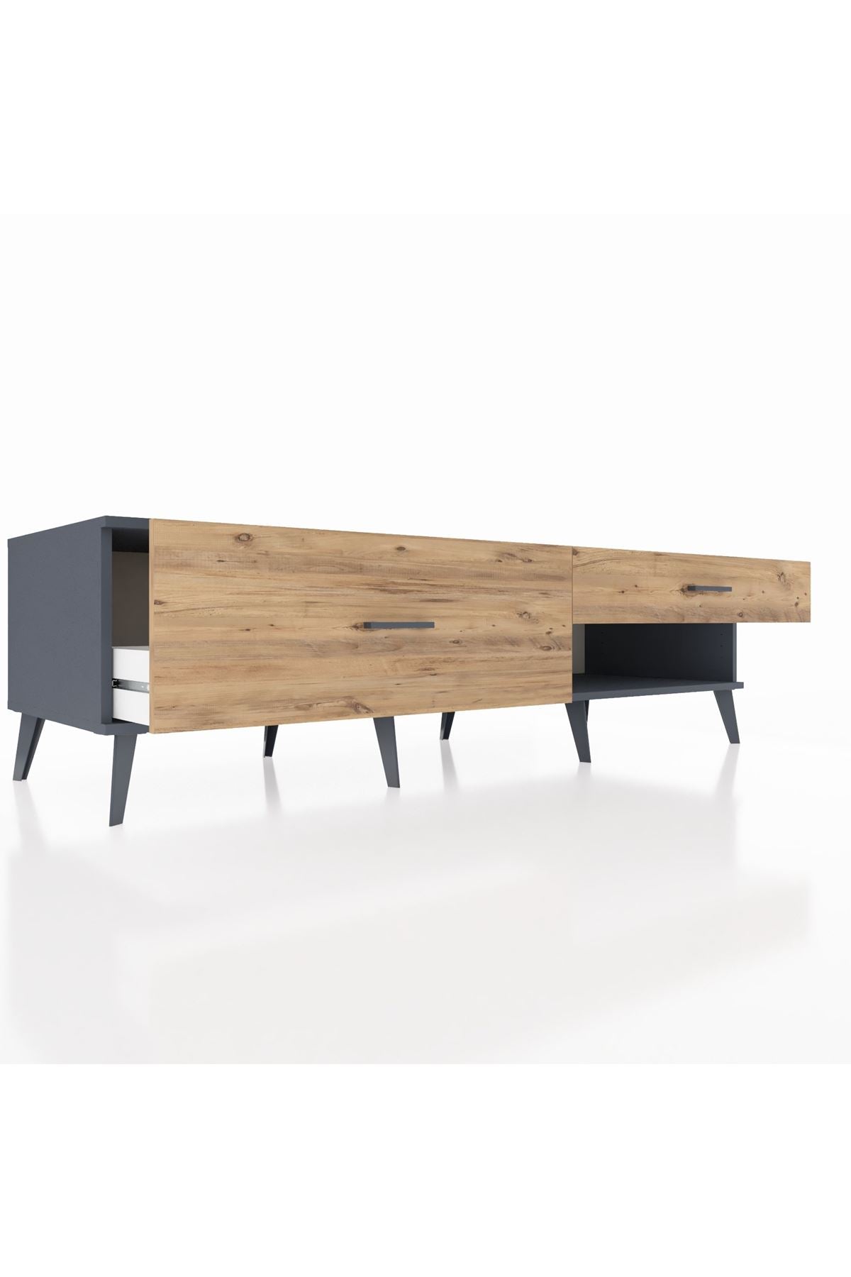 Kronos TV Ünitesi 2 Çekmeceli 176x59x51 Antrasit-Antrasit/Çam