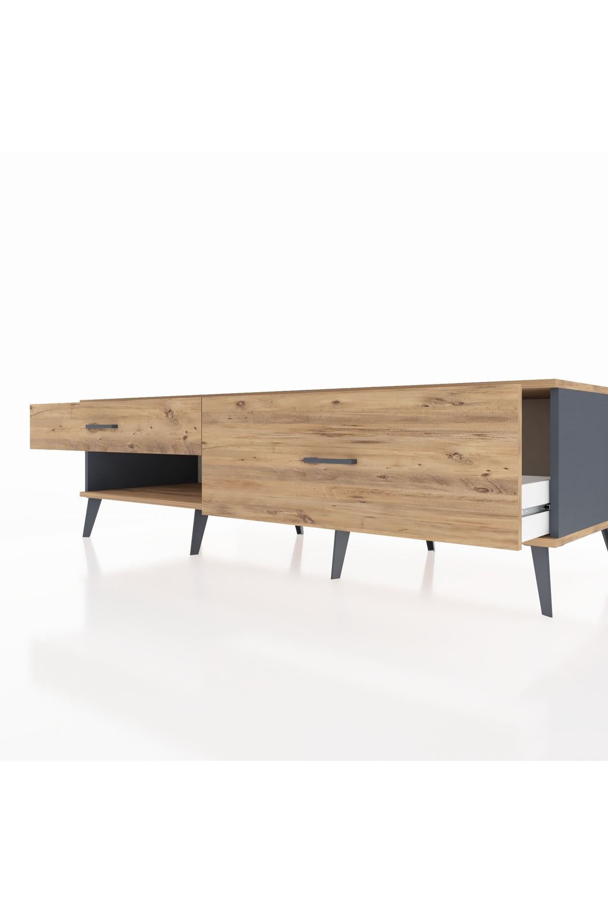 Kronos TV Ünitesi 2 Çekmeceli 176x59x51 Antrasit-Çam/Çam