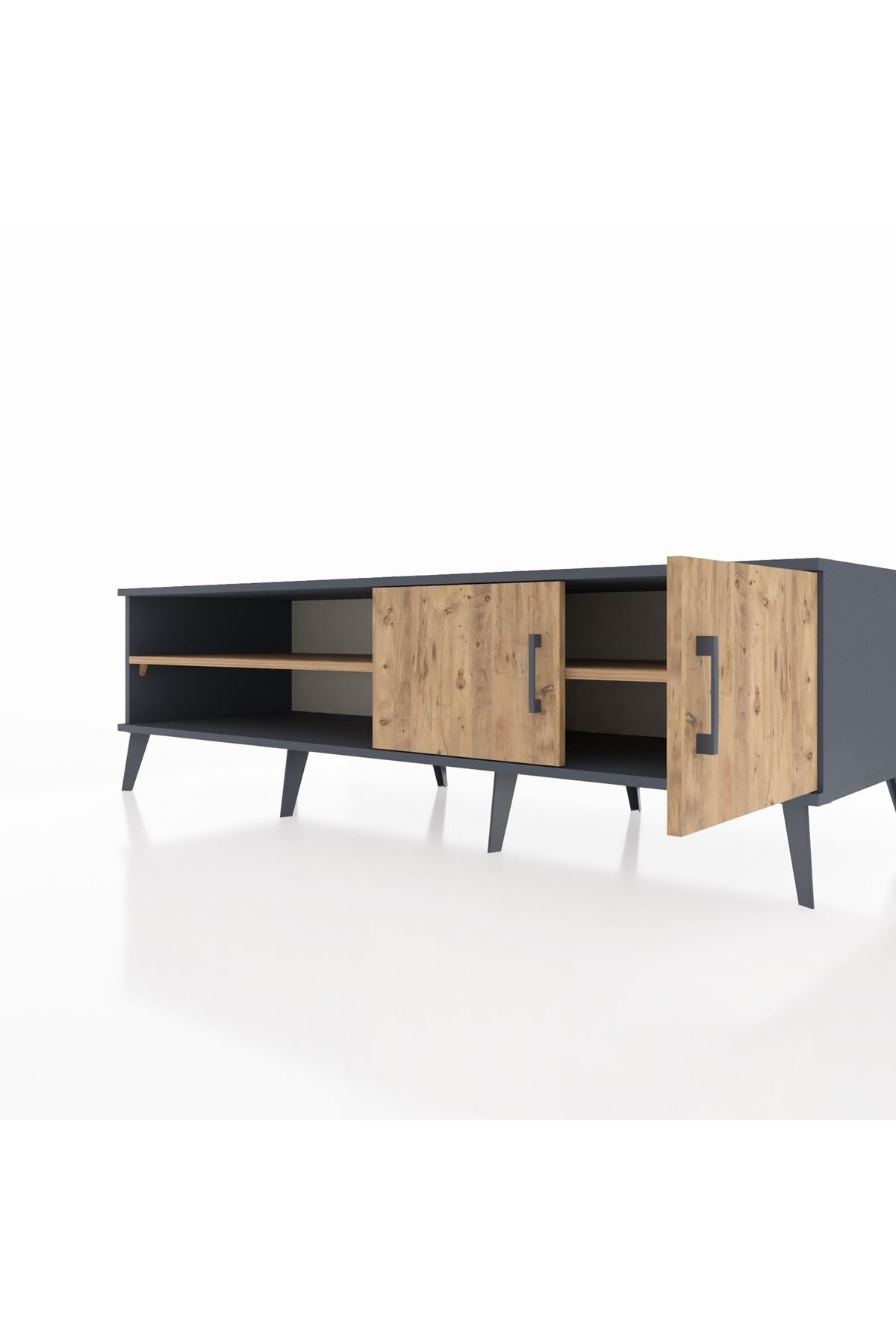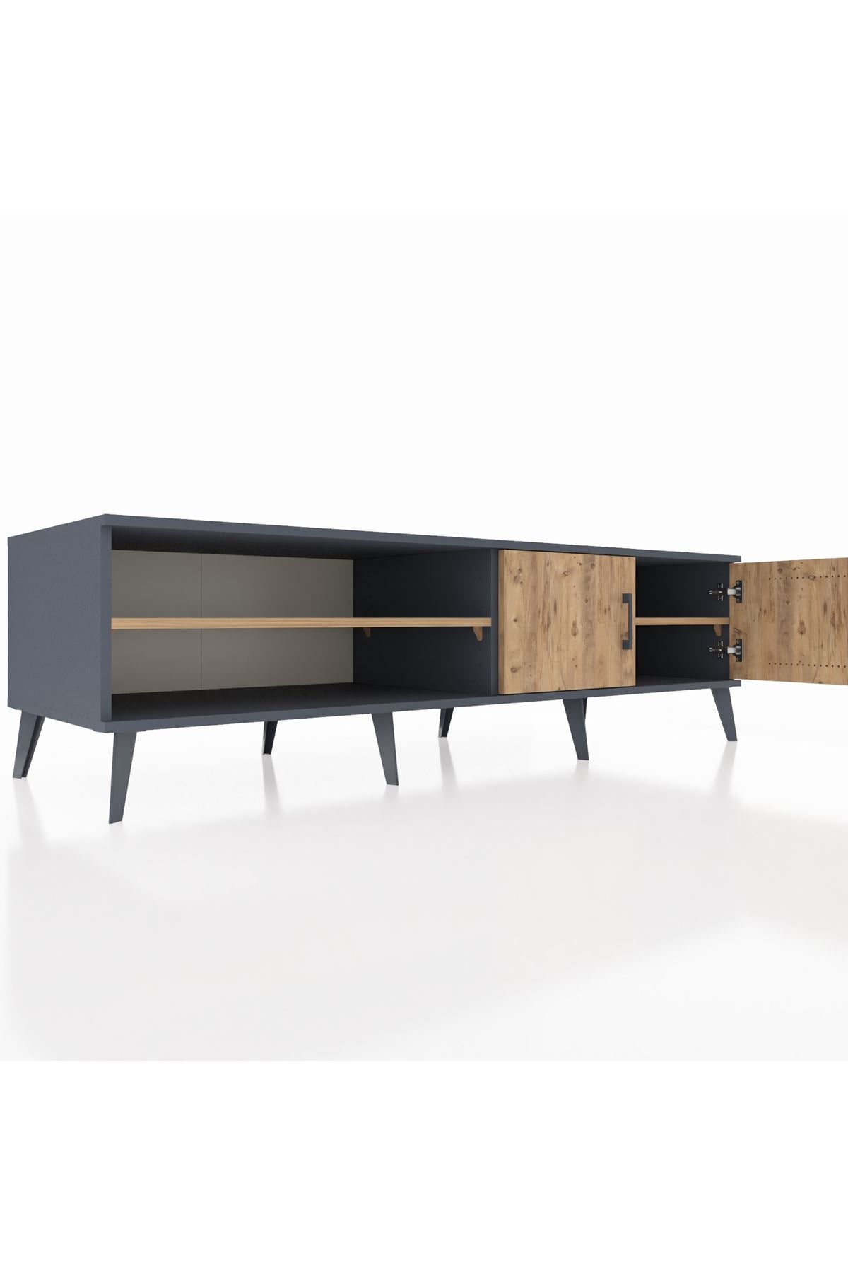Kronos TV Ünitesi 2 Raflı 2 Kapaklı 176x59x51 Antrasit-Çam/Çam