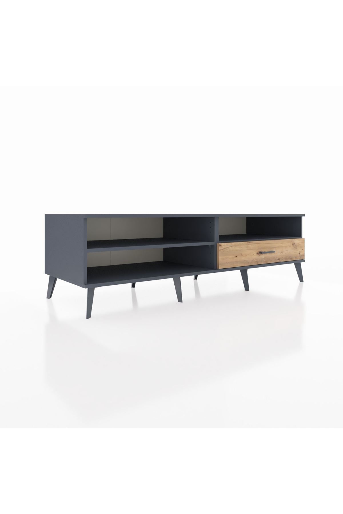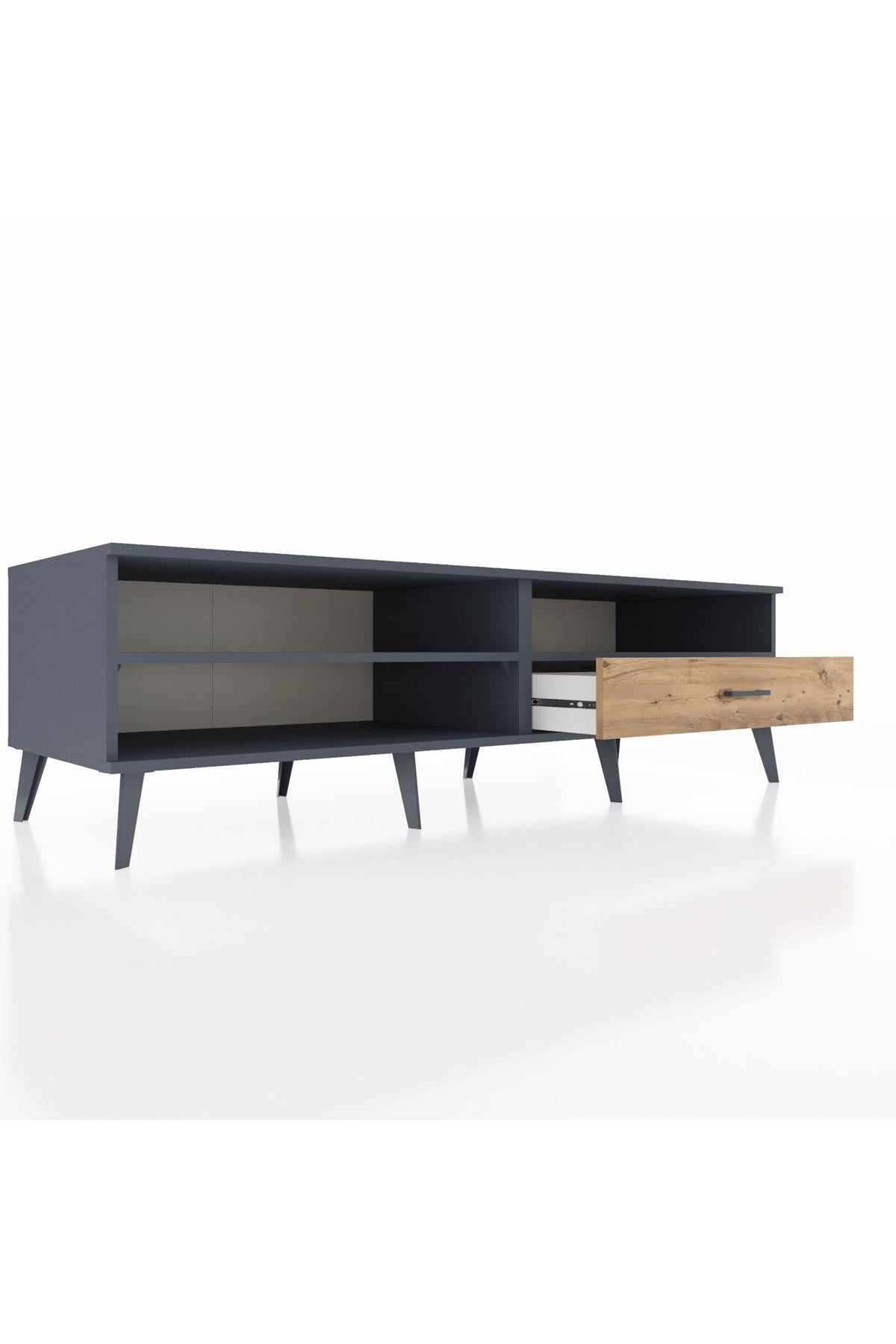 Kronos TV Ünitesi 2 Raflı Tek Çekmeceli 176x59x51 Antrasit-Antrasit/Çam