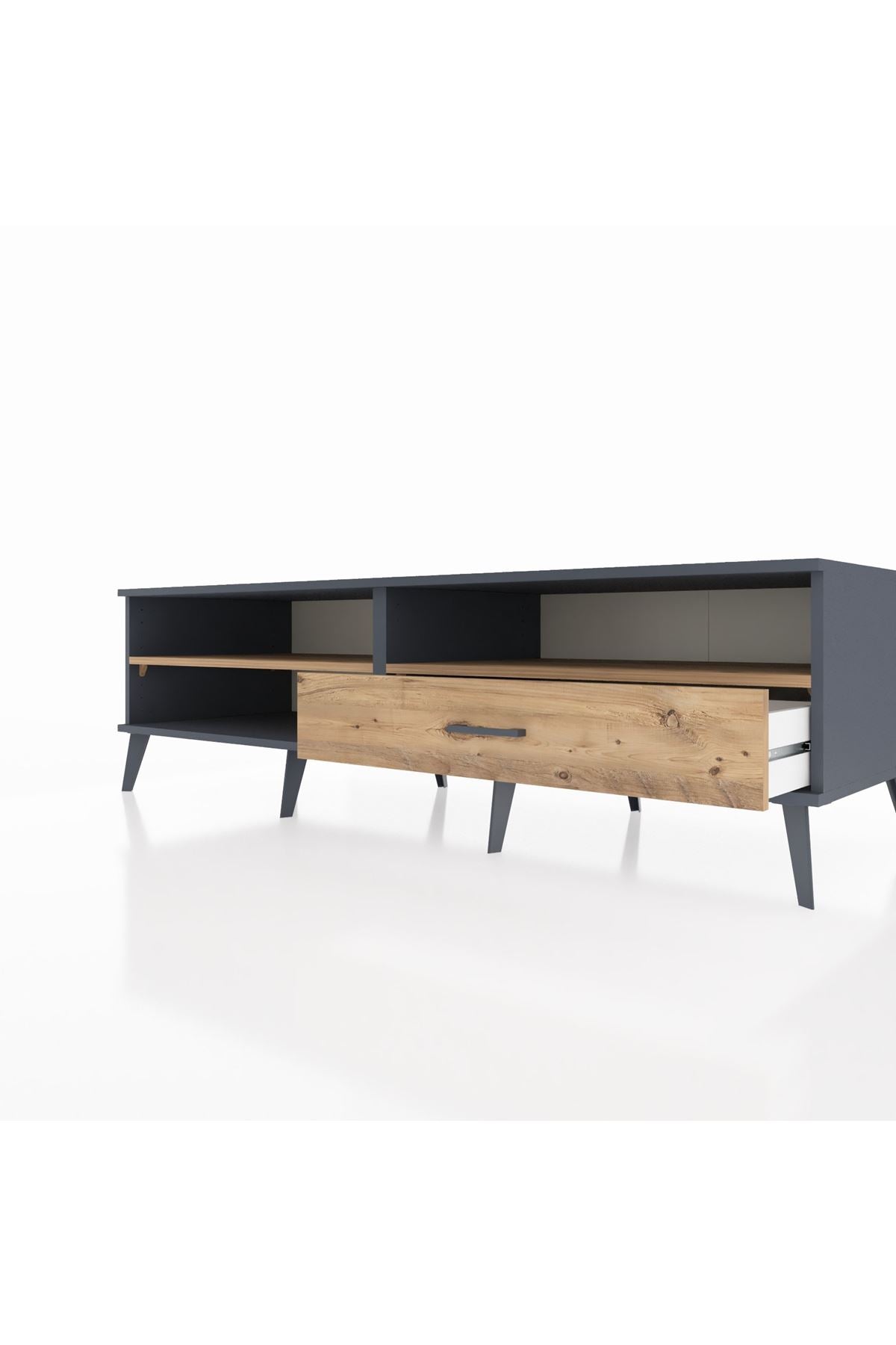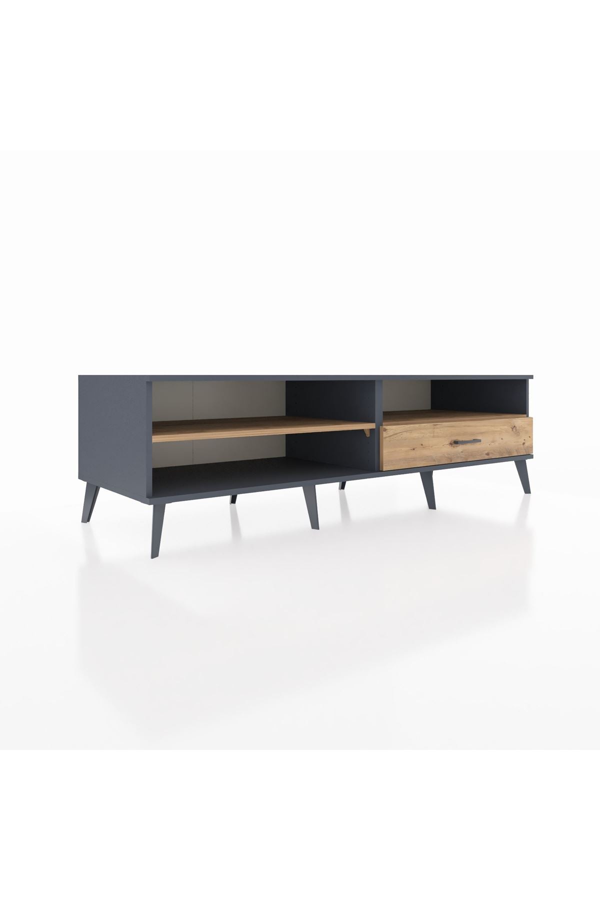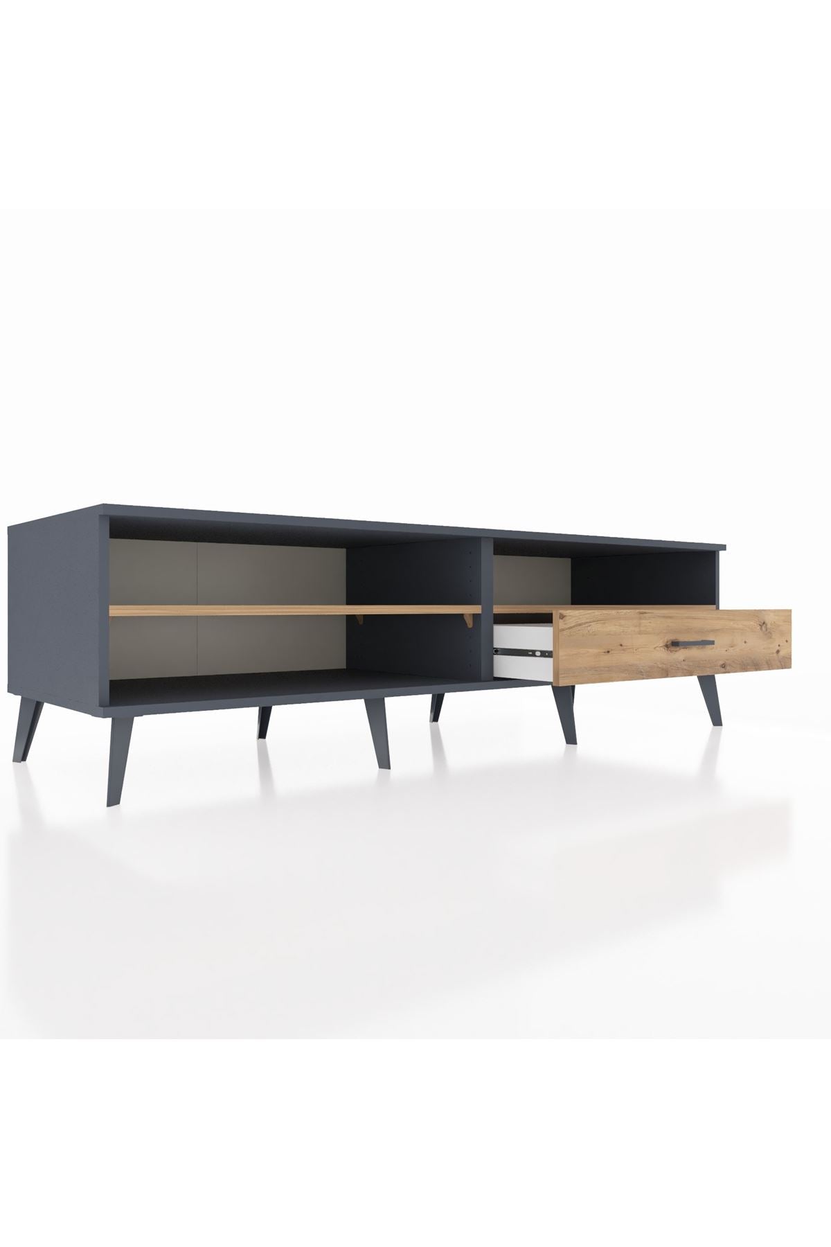 Kronos TV Ünitesi 2 Raflı Tek Çekmeceli 176x59x51 Antrasit-Çam/Çam
