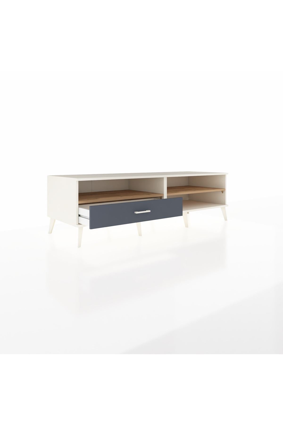 Kronos TV Ünitesi 2 Raflı Tek Çekmeceli 176x59x51 Aytaşı-Çam/Antrasit