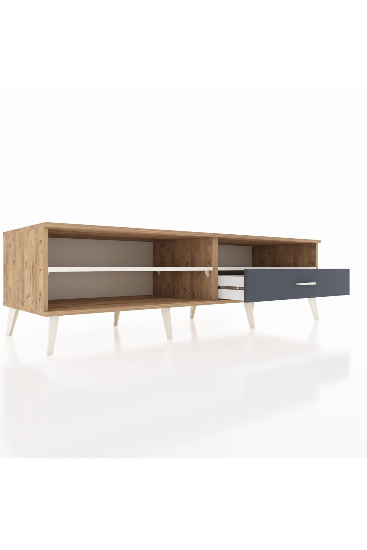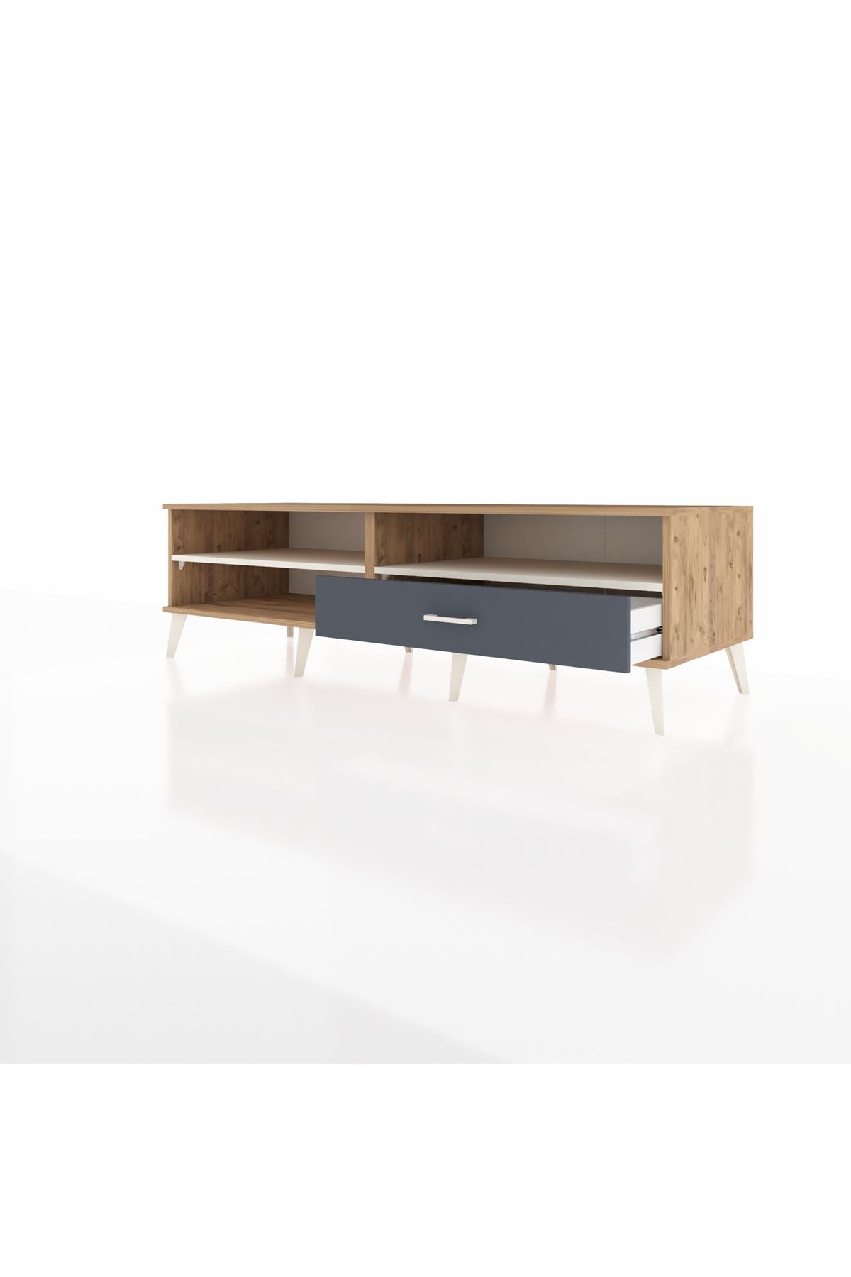 Kronos TV Ünitesi 2 Raflı Tek Çekmeceli 176x59x51 Çam-Aytaşı/Antrasit