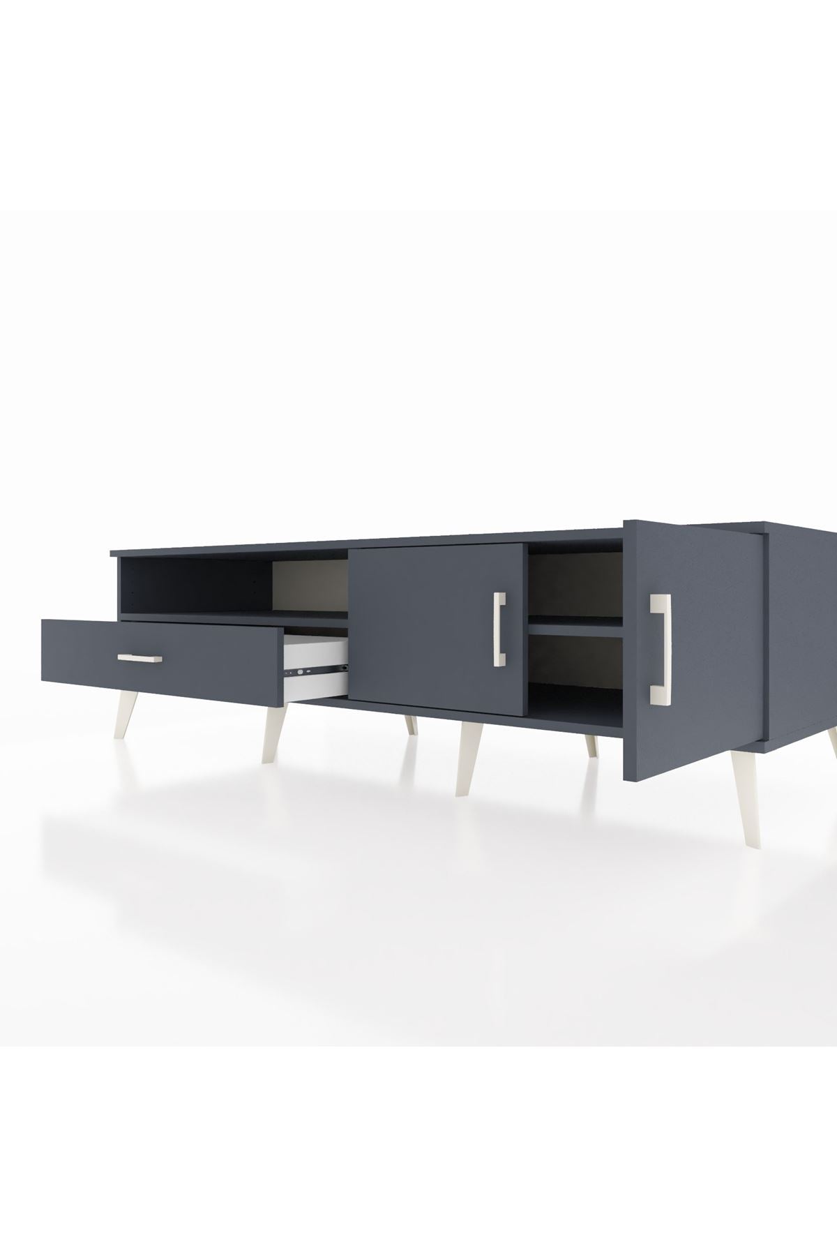 Kronos TV Ünitesi 2 Raflı Tek Çekmeceli 2 Kapaklı 176x59x51 Antrasit-Antrasit/Antrasit