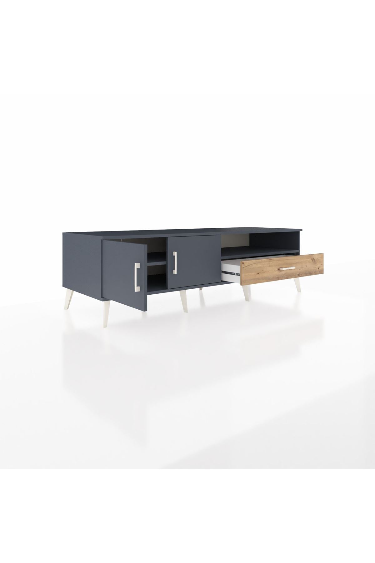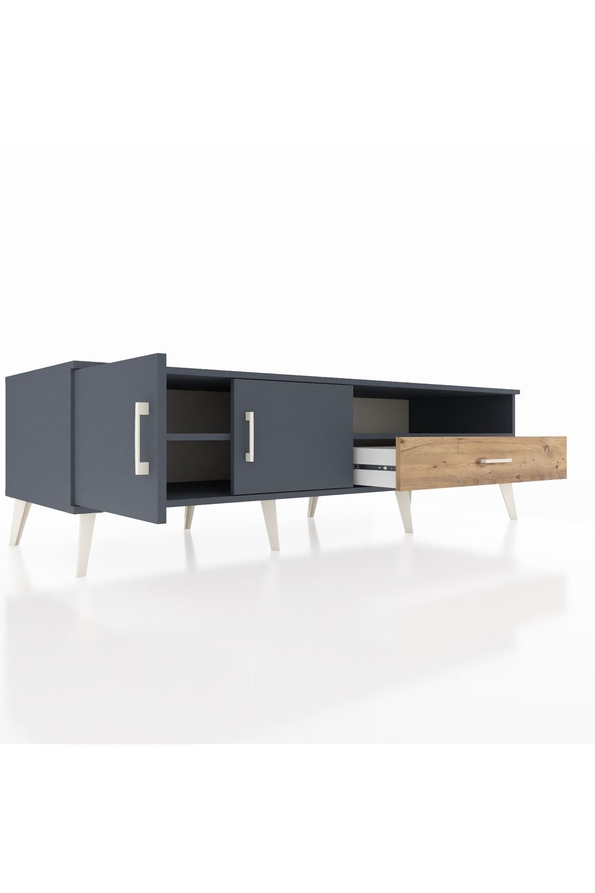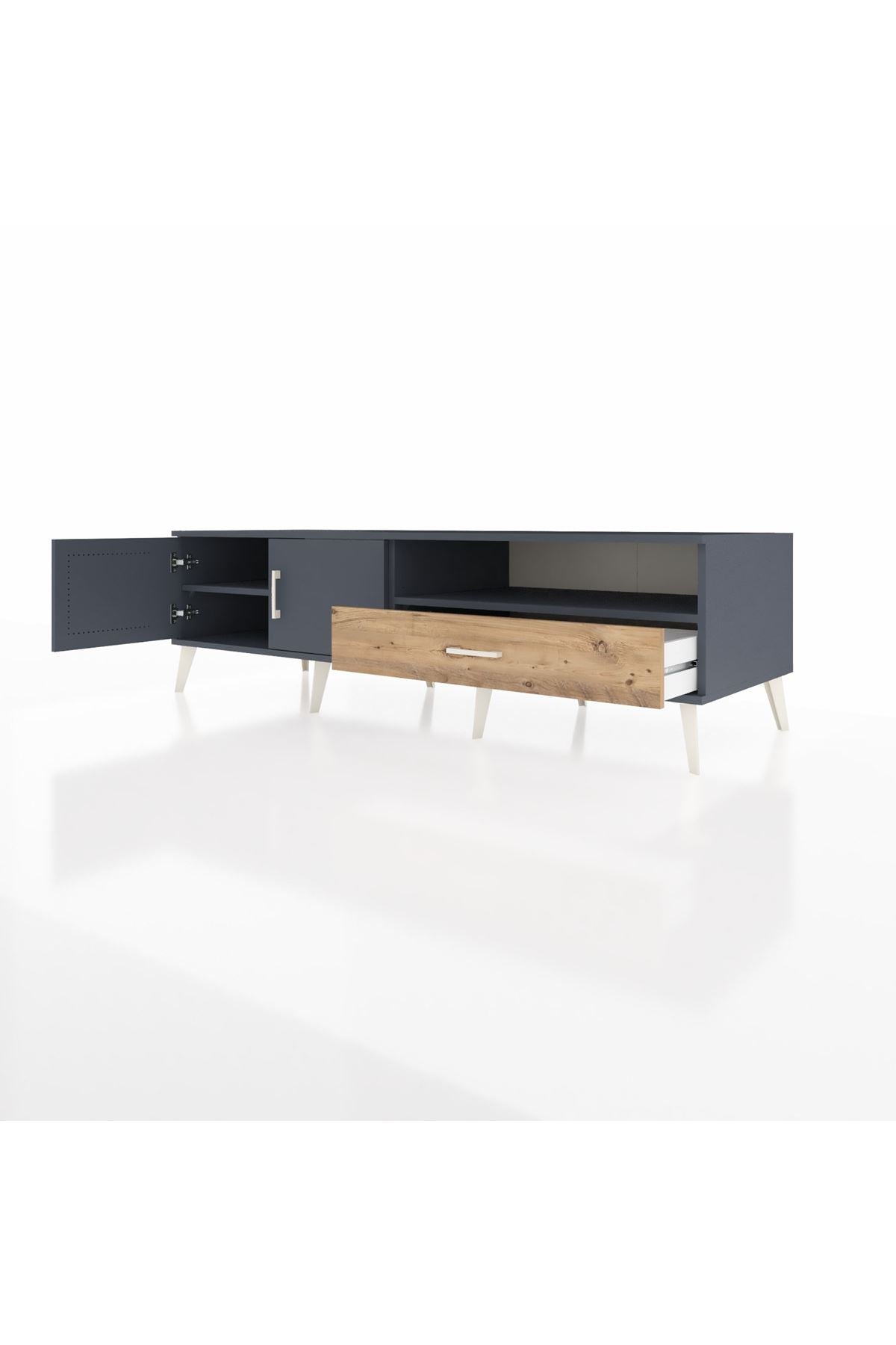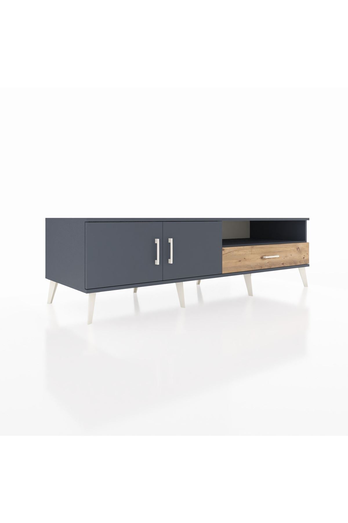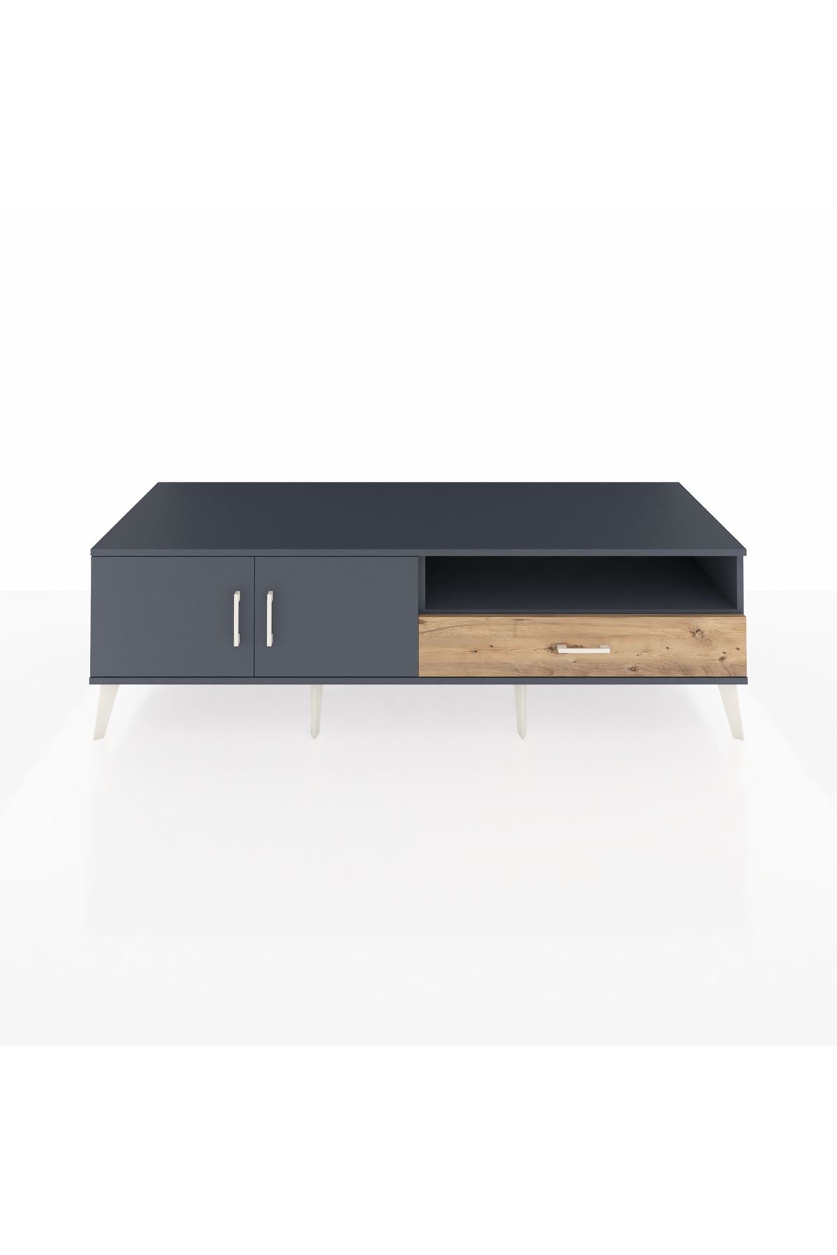 Kronos TV Ünitesi 2 Raflı Tek Çekmeceli 2 Kapaklı 176x59x51 Antrasit-Antrasit/Çam