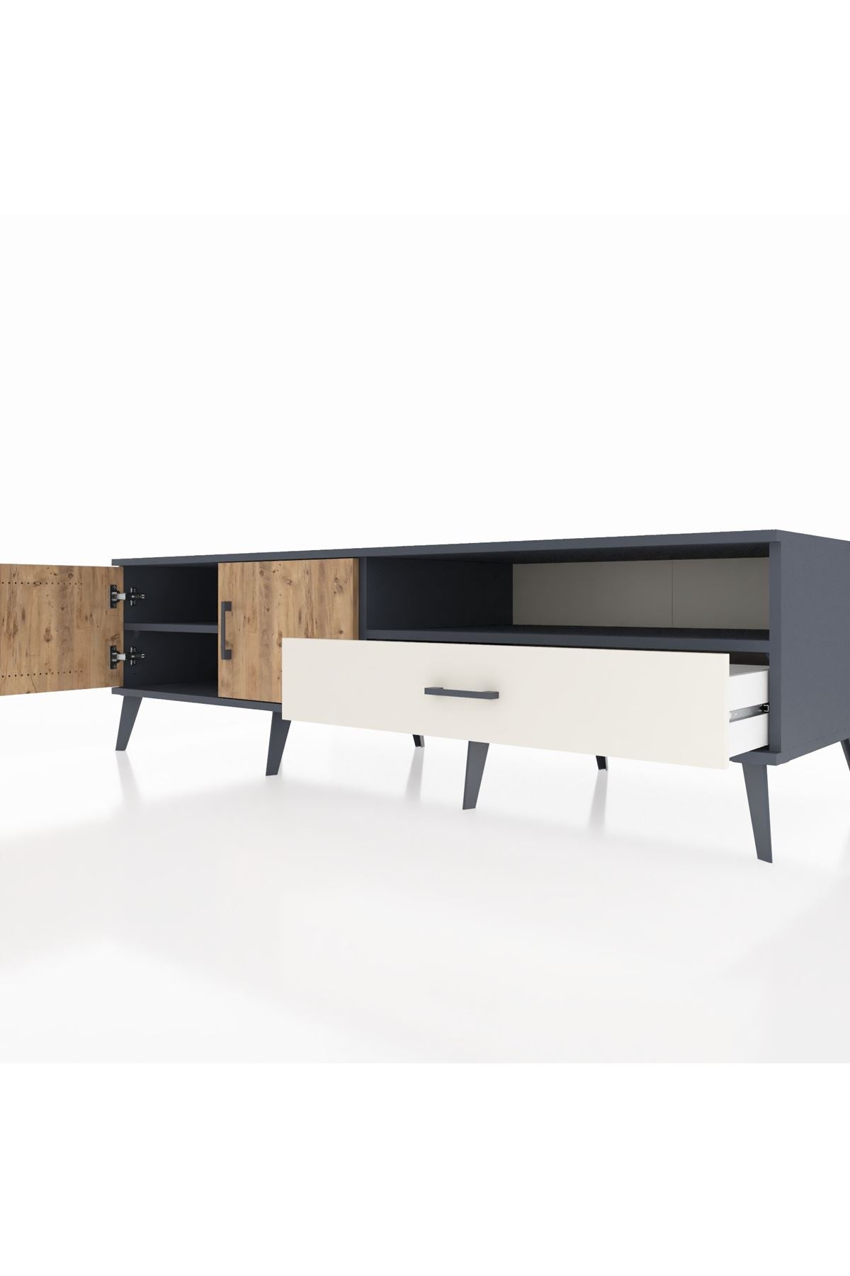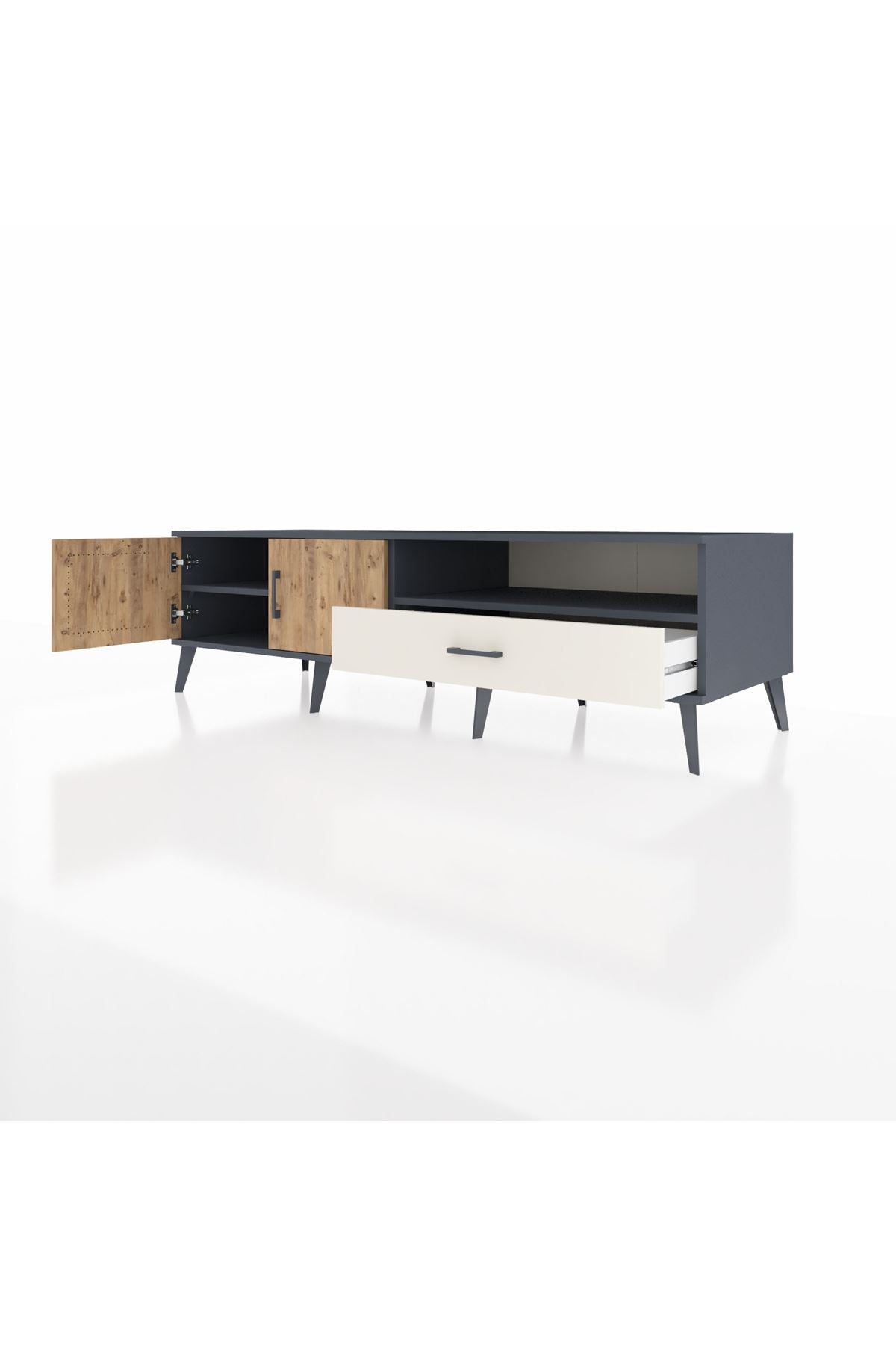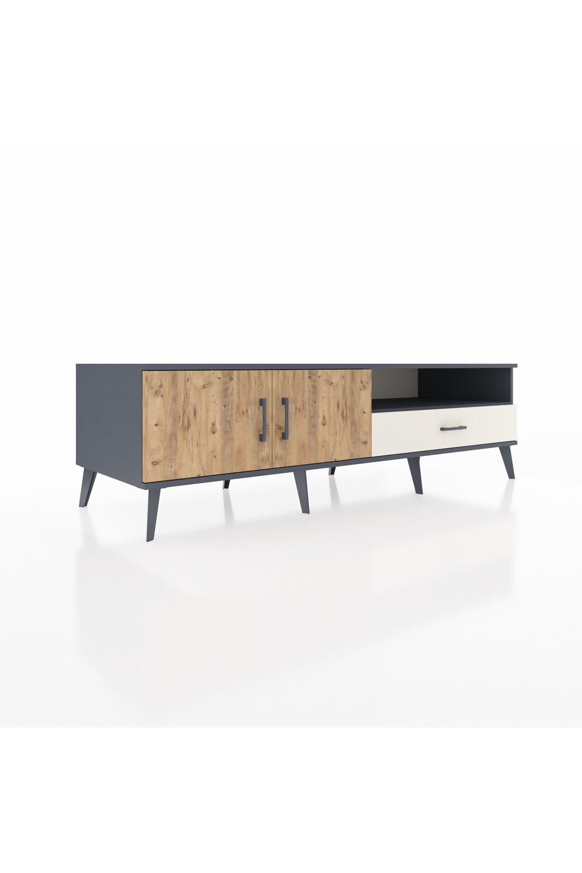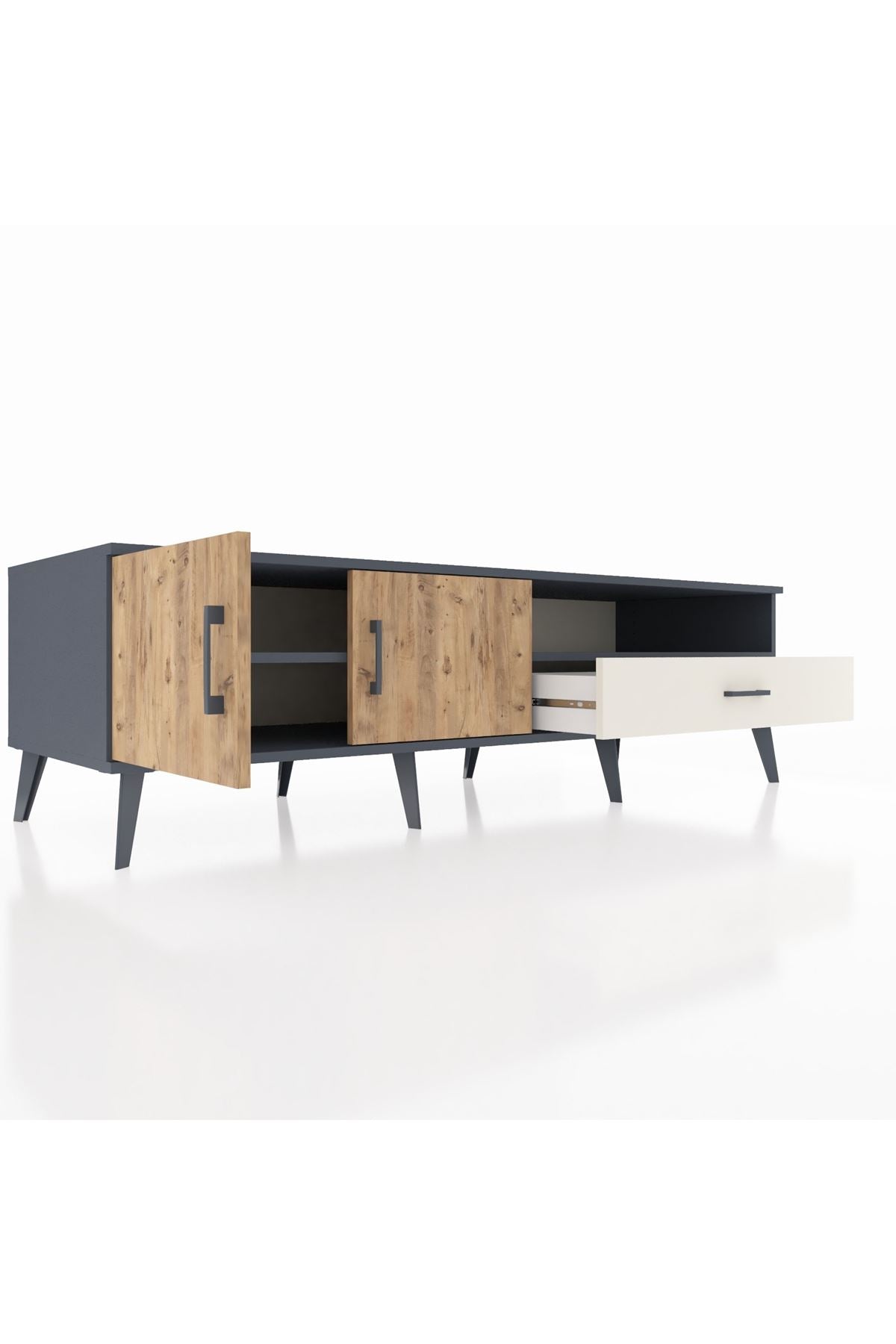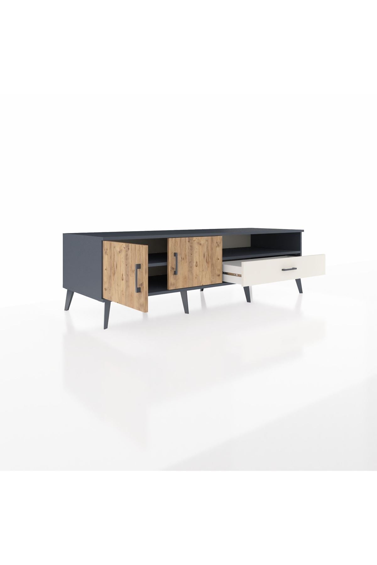Kronos TV Ünitesi 2 Raflı Tek Çekmeceli 2 Kapaklı 176x59x51 Antrasit-Çam/Aytaşı