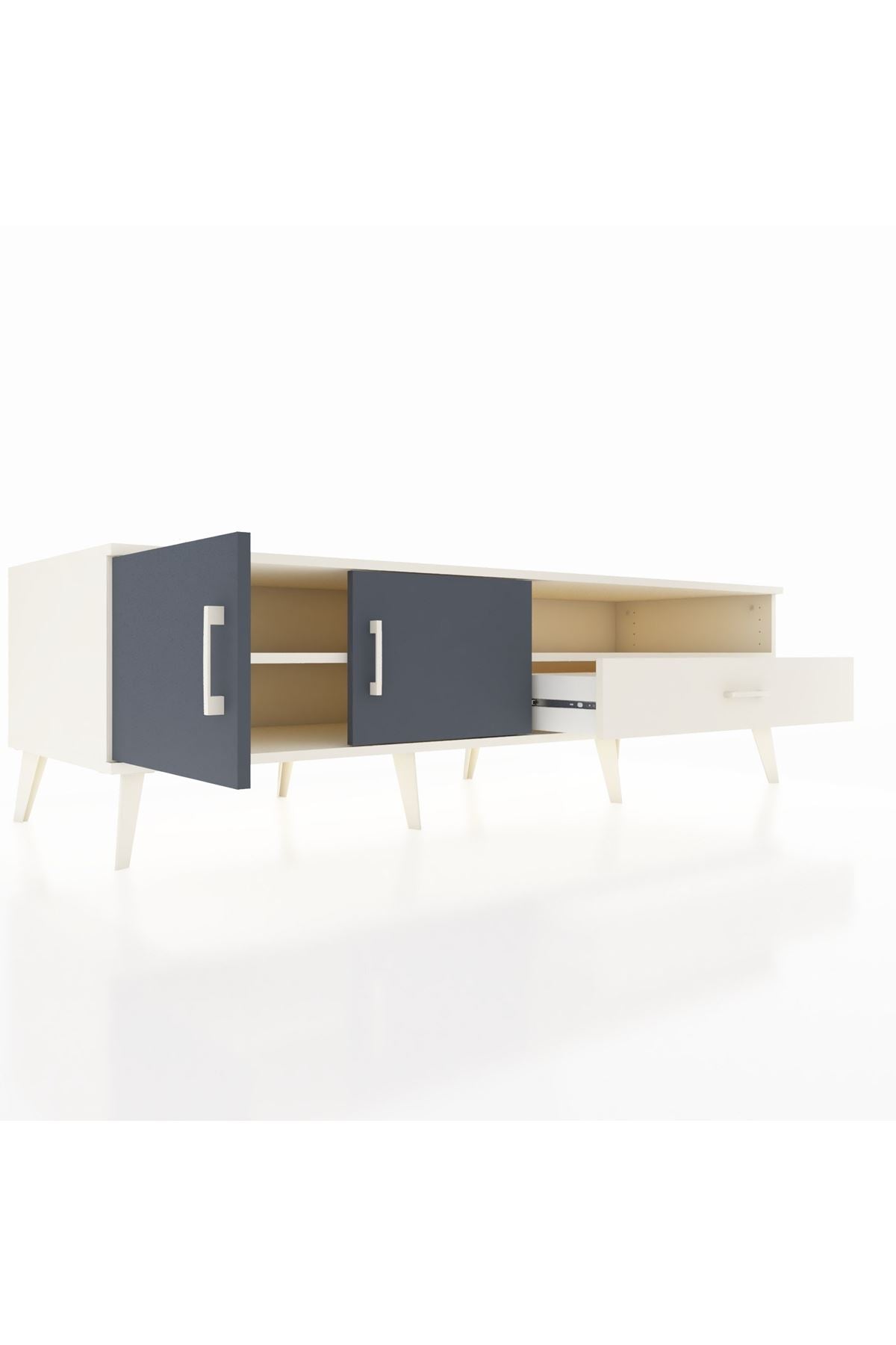 Kronos TV Ünitesi 2 Raflı Tek Çekmeceli 2 Kapaklı 176x59x51 Aytaşı-Antrasit/Aytaşı
