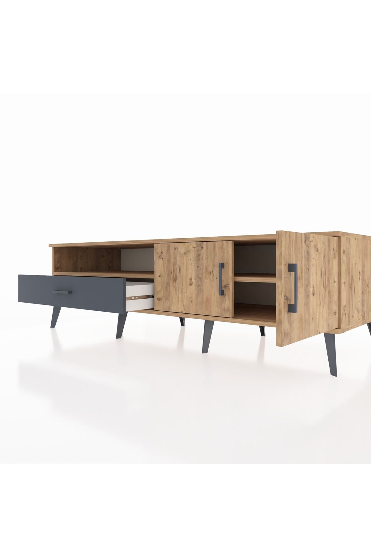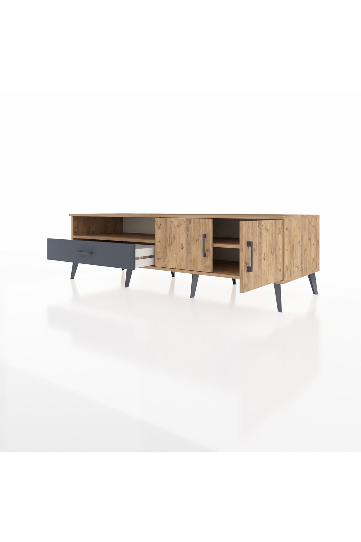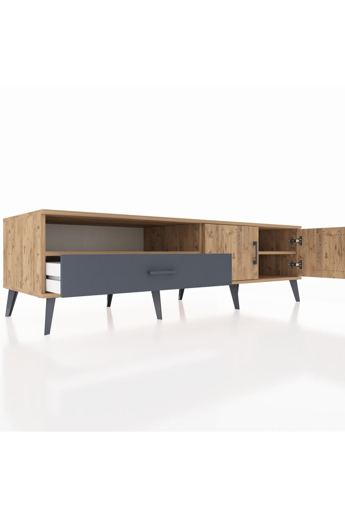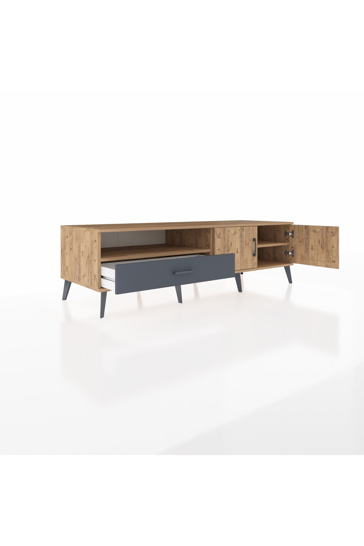 Kronos TV Ünitesi 2 Raflı Tek Çekmeceli 2 Kapaklı 176x59x51 Çam-Çam/Antrasit