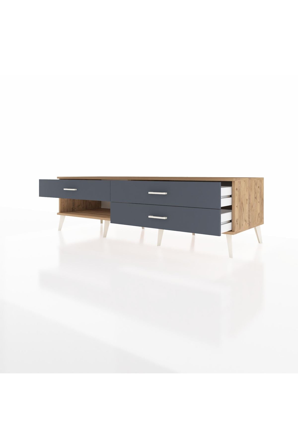 🌳 Üst düzey dayanıklılığıyla dikkat çeken TV ünitesi, 1. sınıf Kastamonu Entegre suntalam gövdesi ve 1.2 mm kenar bandı ile estetik vurgularını sağlamlıkla birleştiriyor. Çekmecelerin 27 cm açılma mesafesi sunması sayesinde kullanışlı bir depolama imkânı sunar.