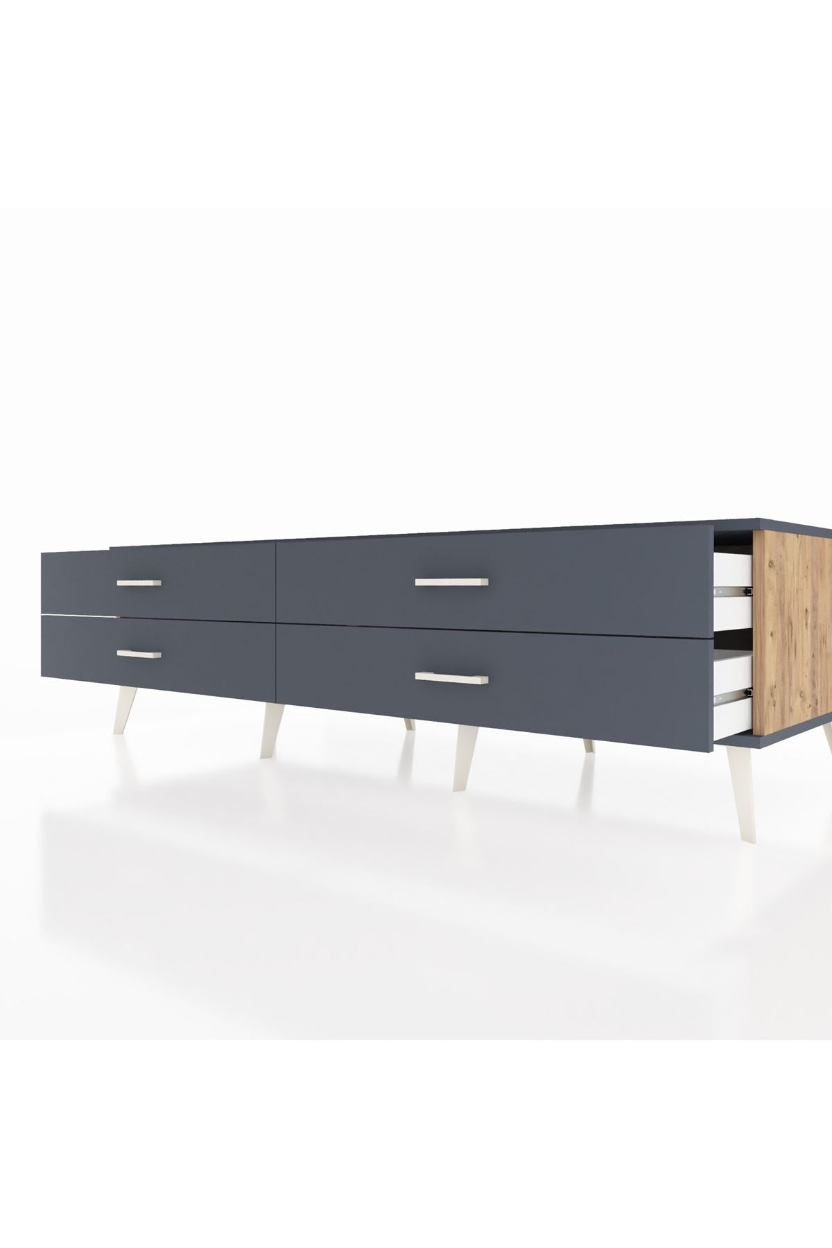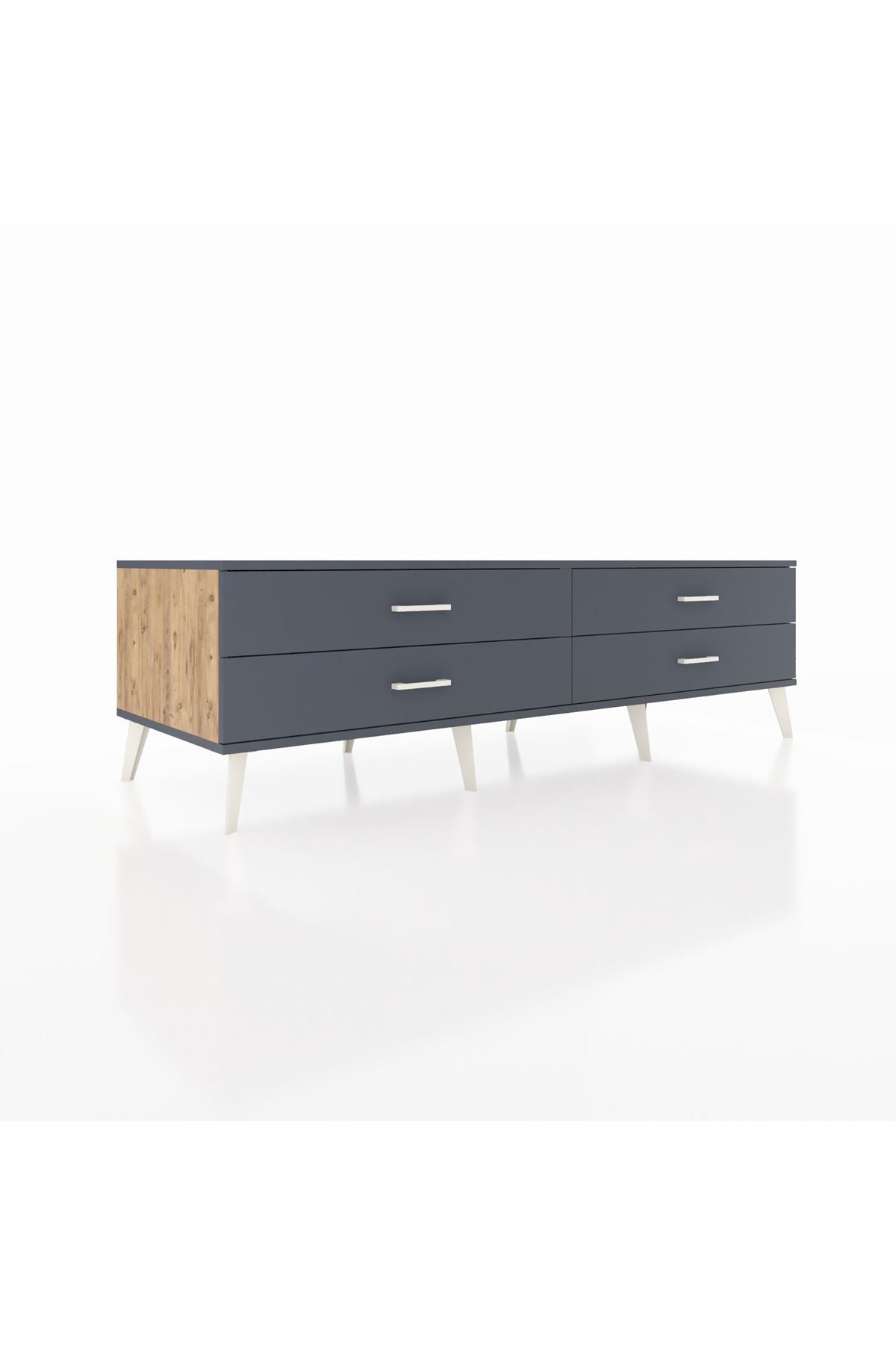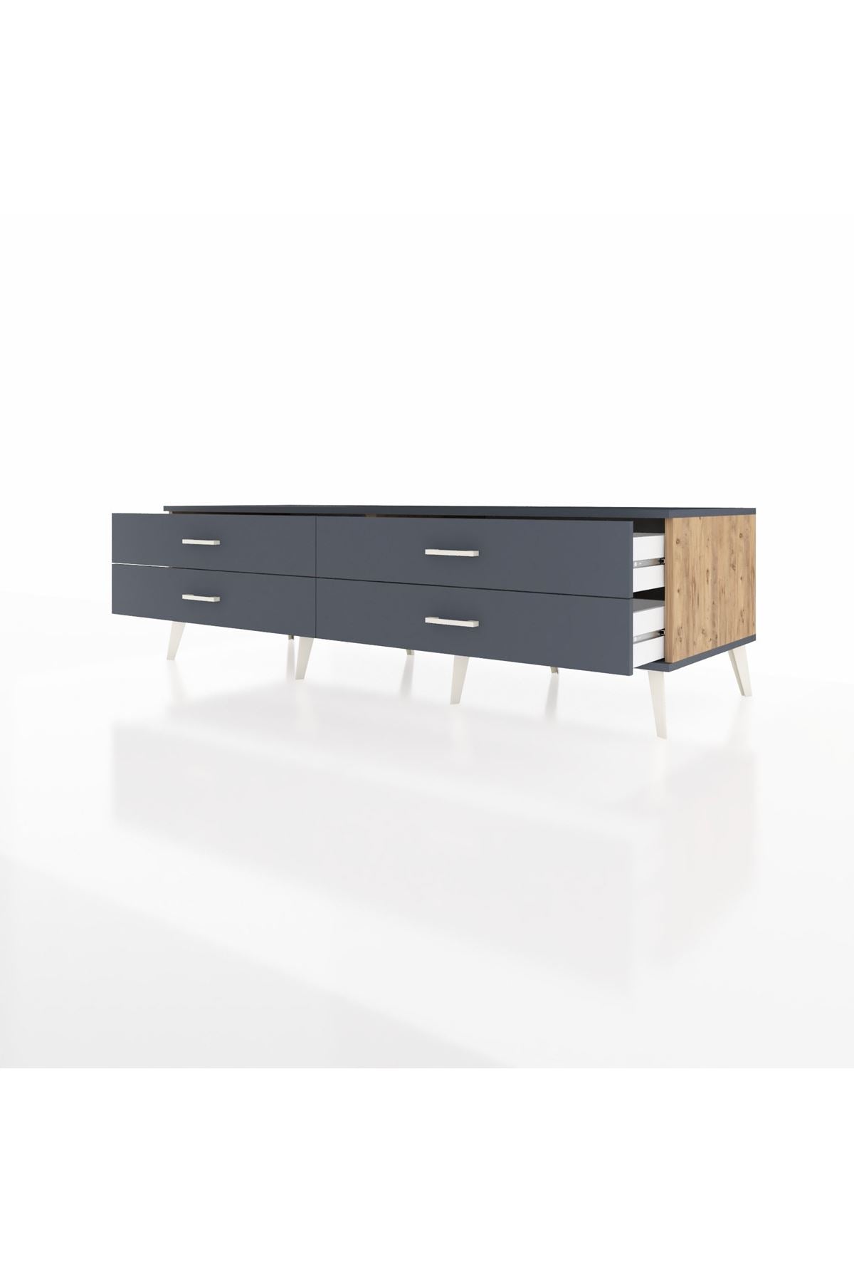 Kronos TV Ünitesi 4 Çekmeceli 176x59x51 Çam-Antrasit/Antrasit