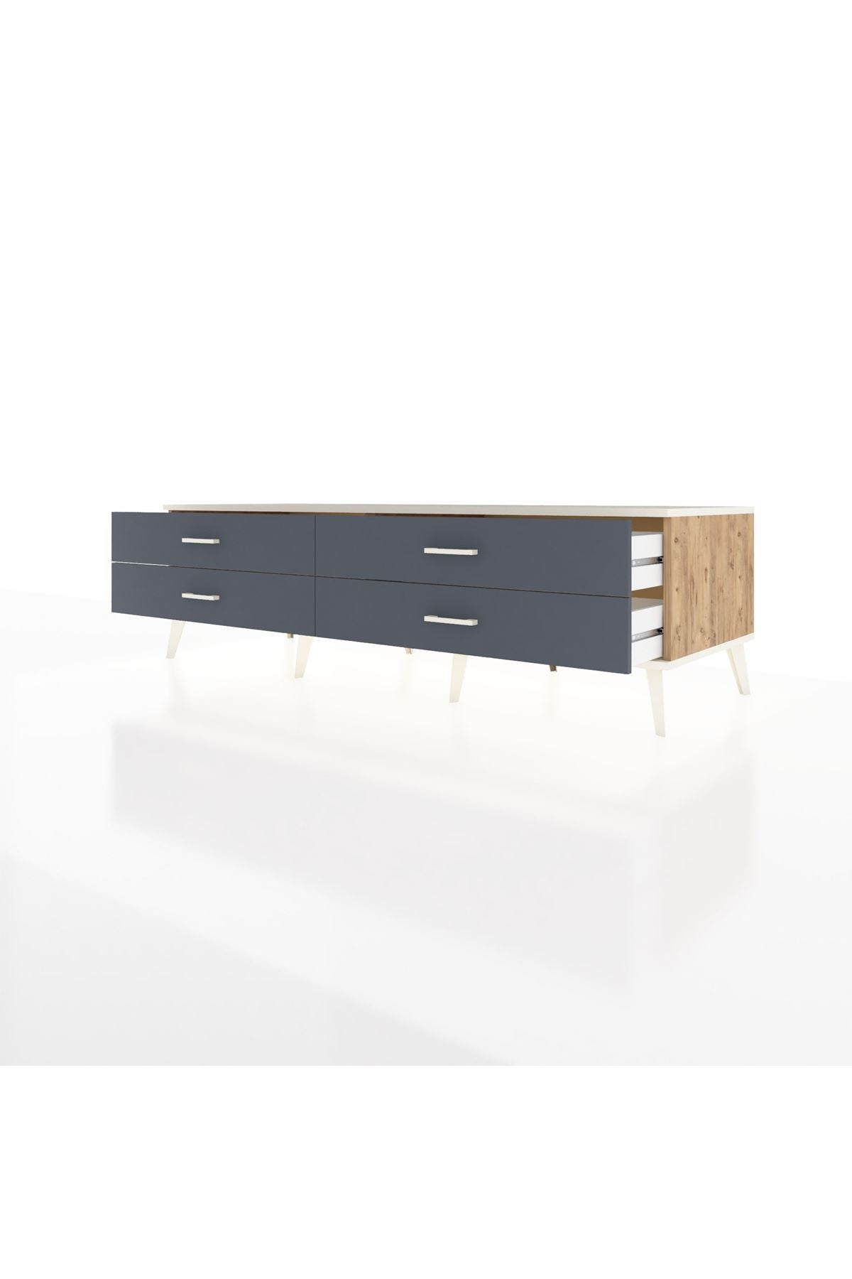 Kronos TV Ünitesi 4 Çekmeceli 176x59x51 Çam-Aytaşı/Antrasit