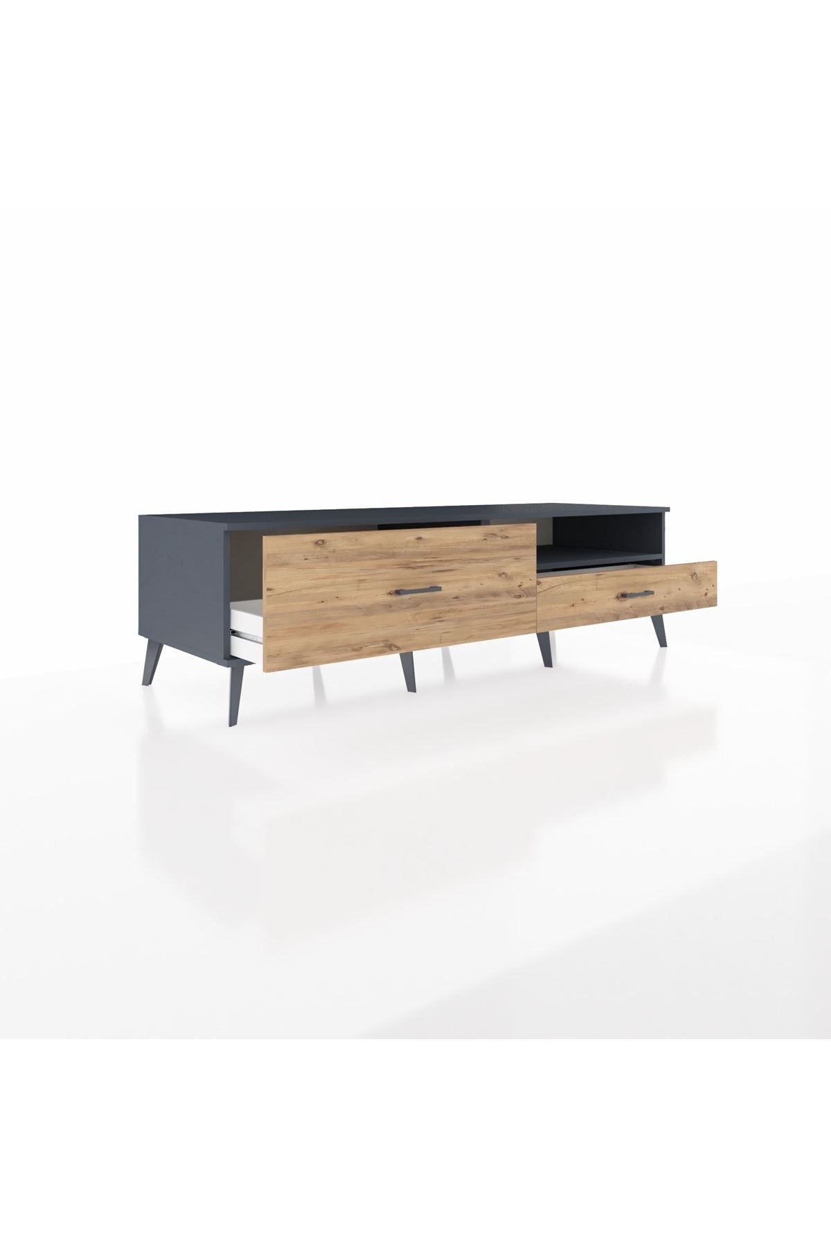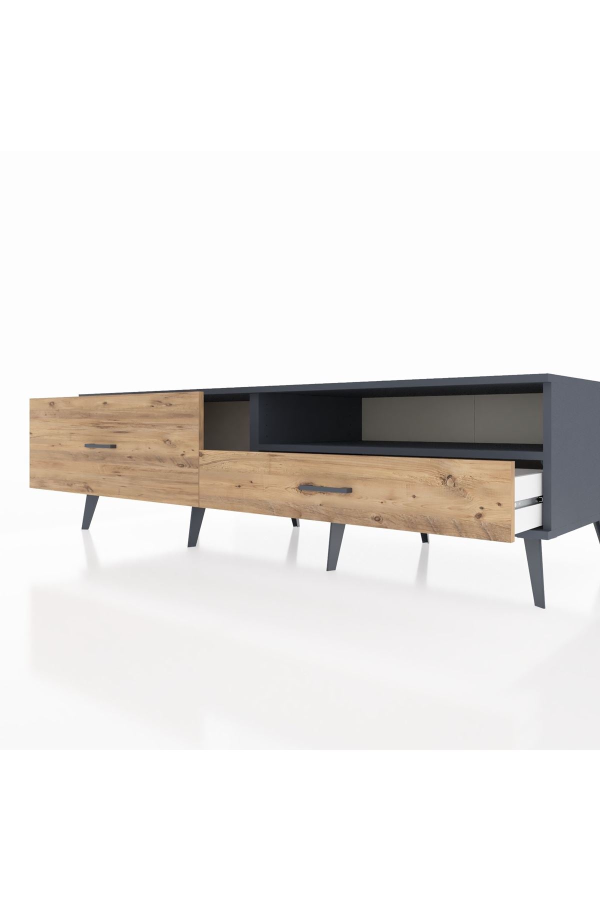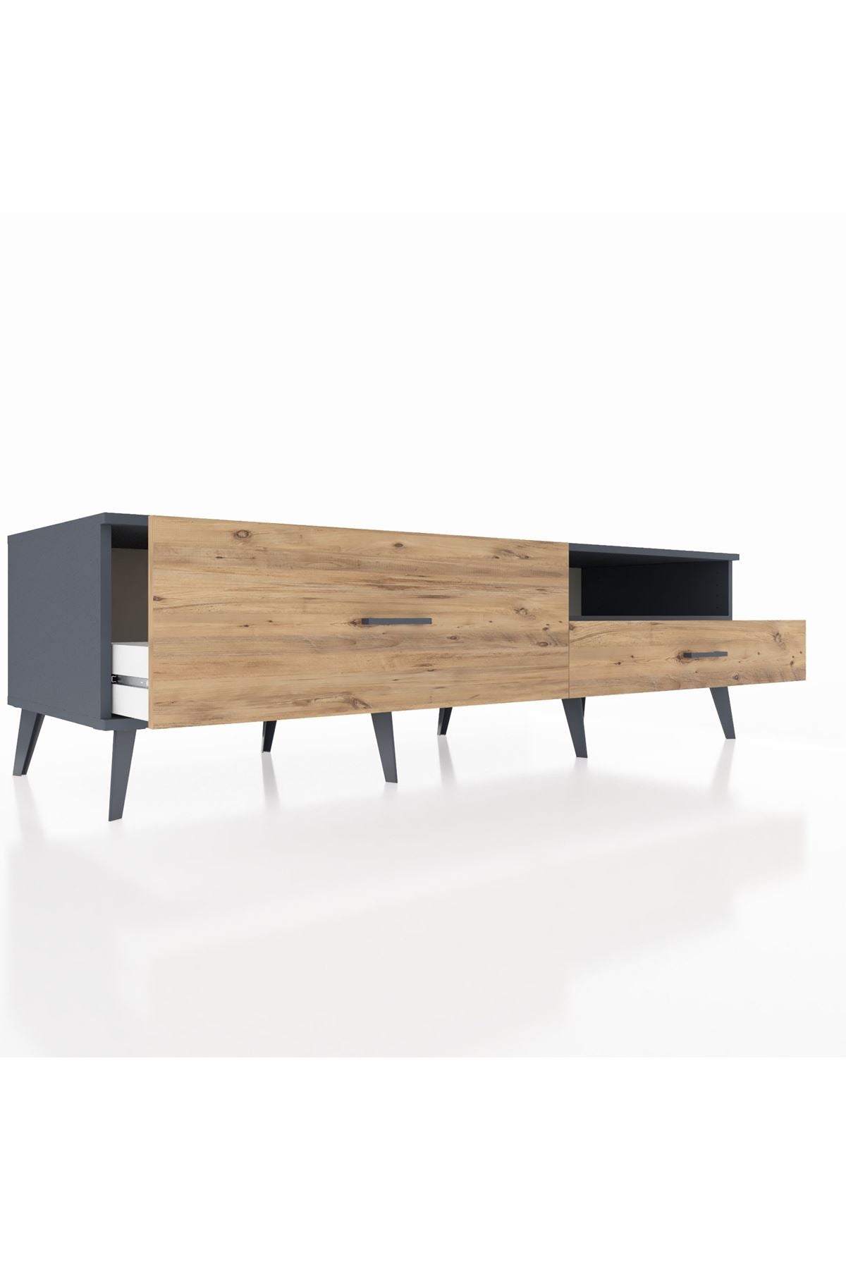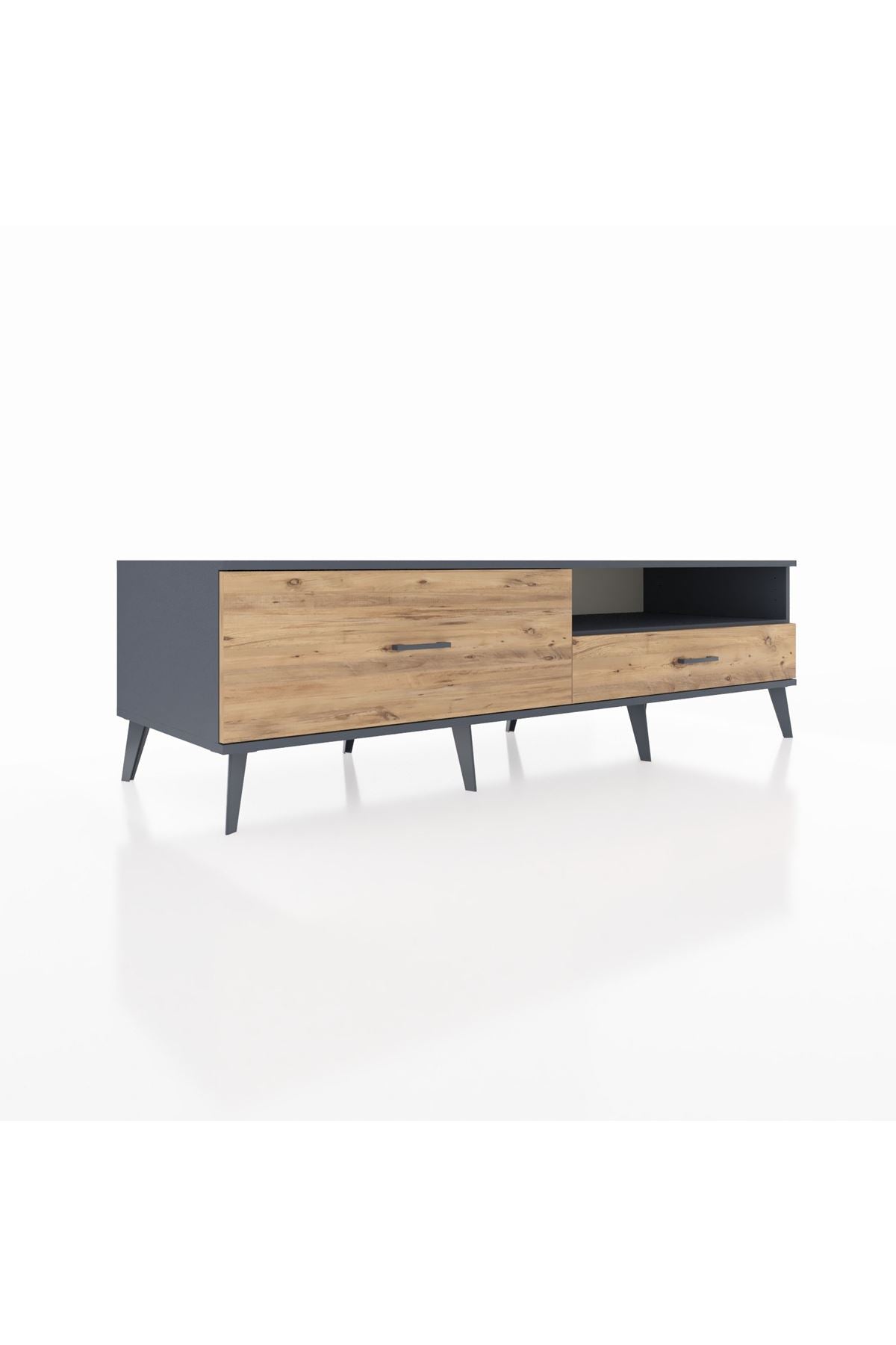 Kronos TV Ünitesi Tek Raflı 2 Çekmeceli 176x59x51 Antrasit-Antrasit/Çam