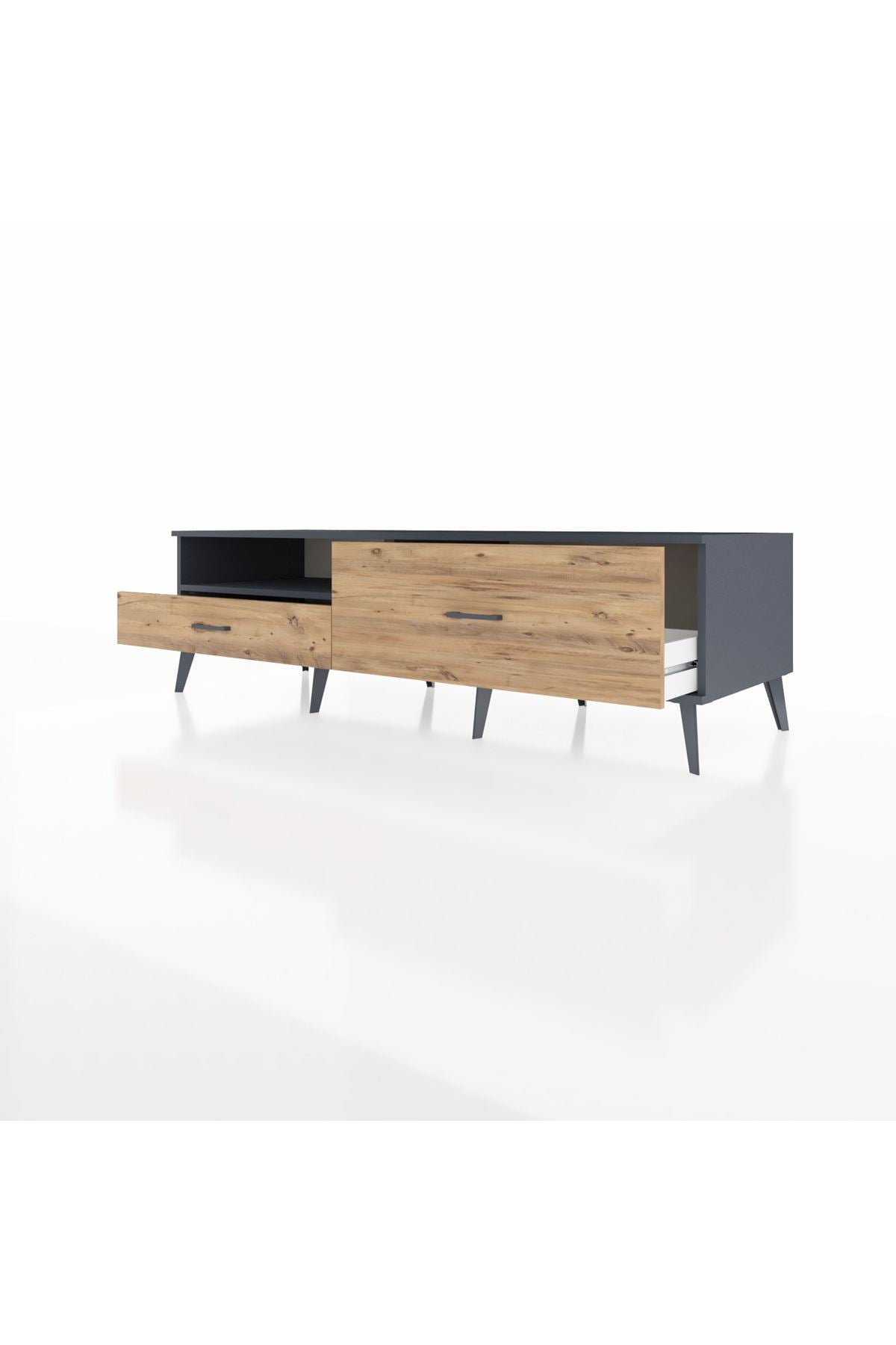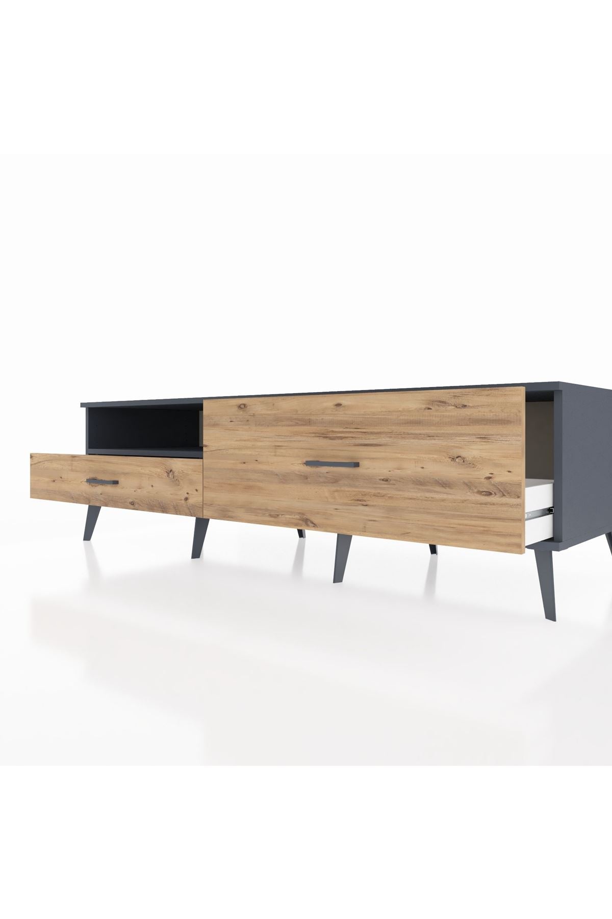 Kronos TV Ünitesi Tek Raflı 2 Çekmeceli 176x59x51 Antrasit-Antrasit/Çam