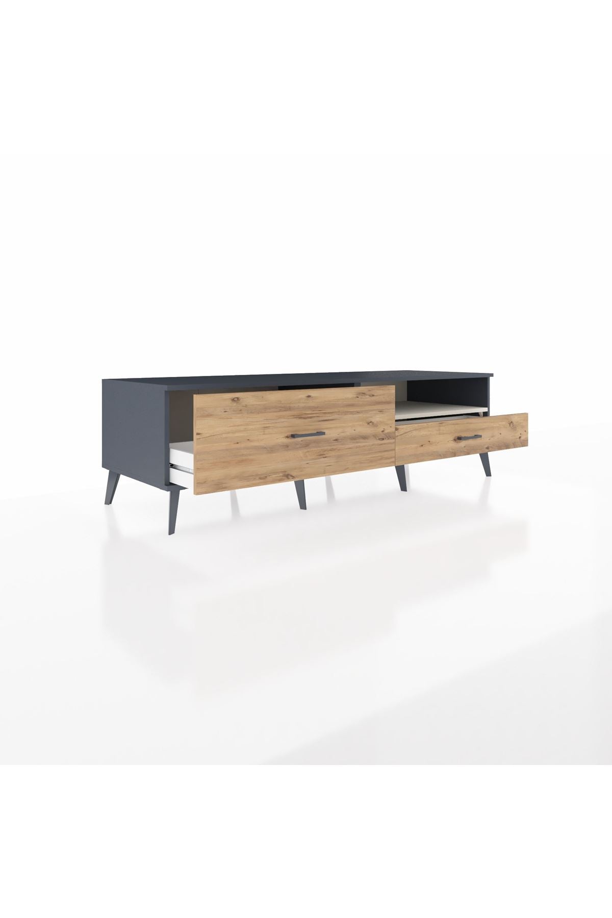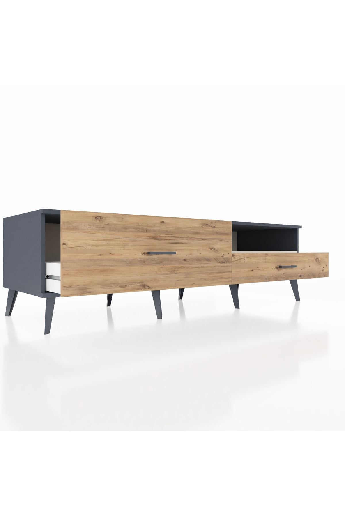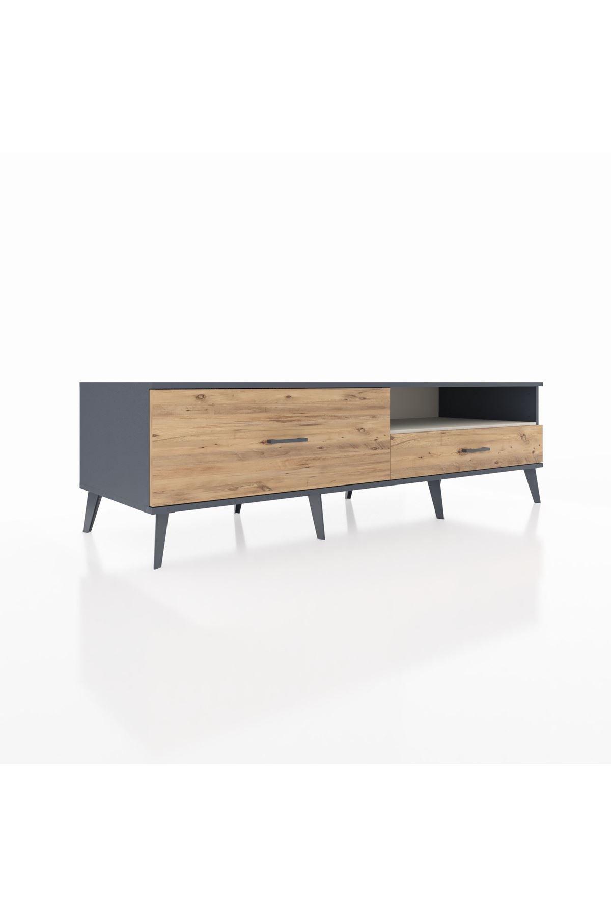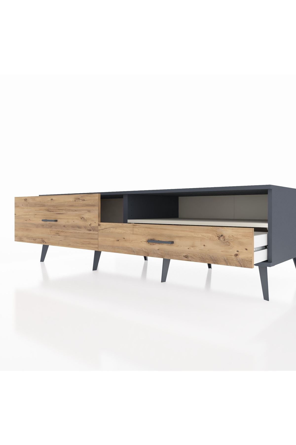 Kronos TV Ünitesi Tek Raflı 2 Çekmeceli 176x59x51 Antrasit-Aytaşı/Çam