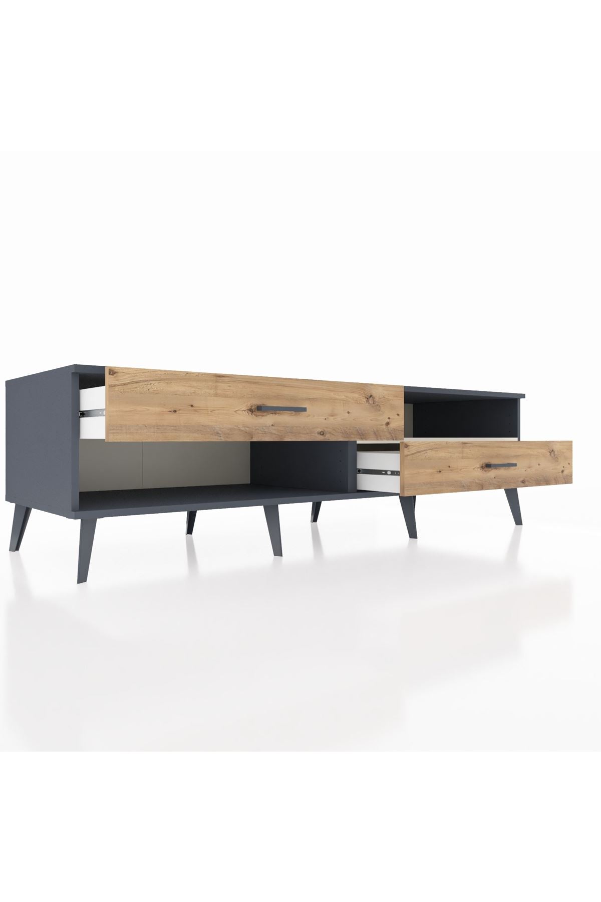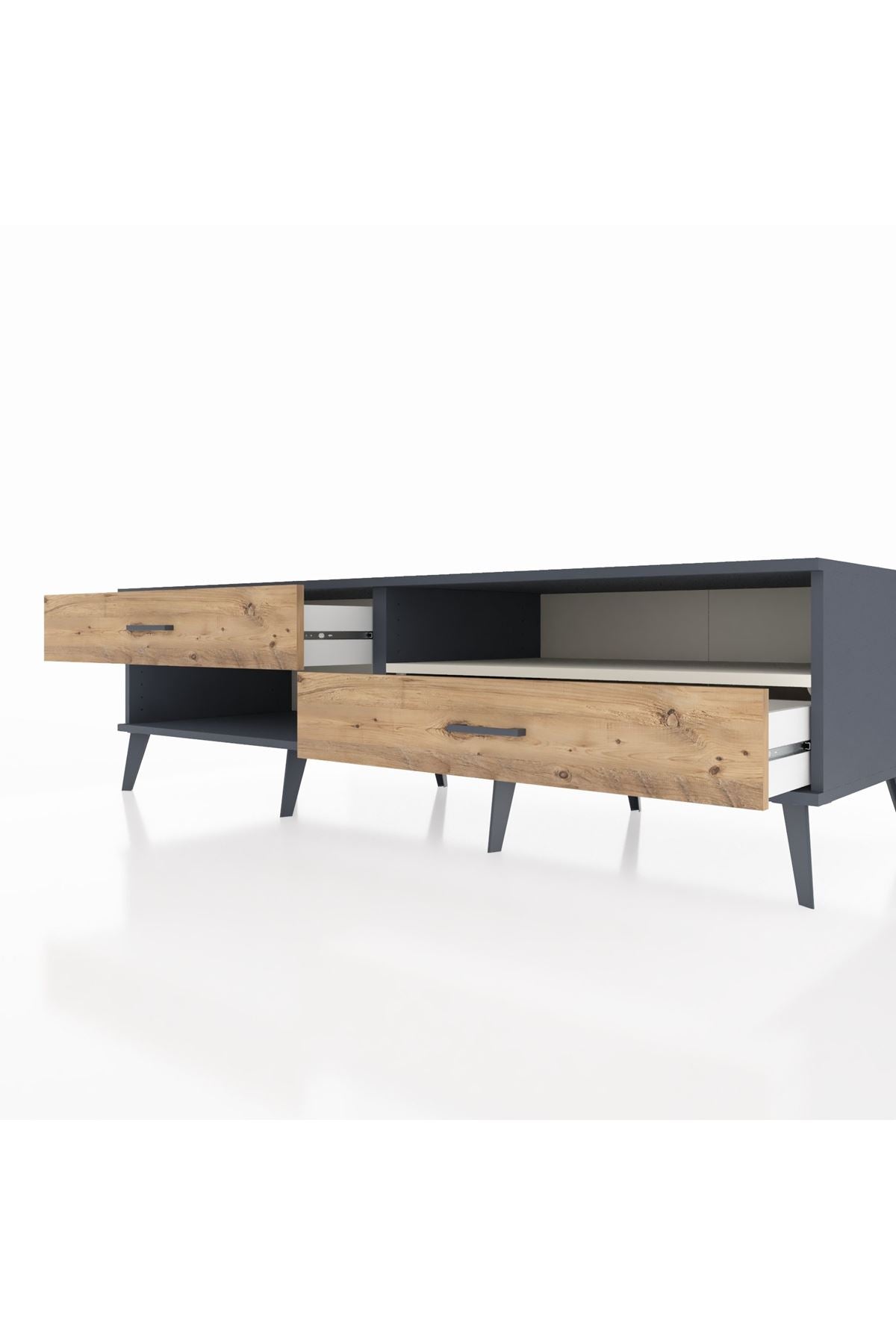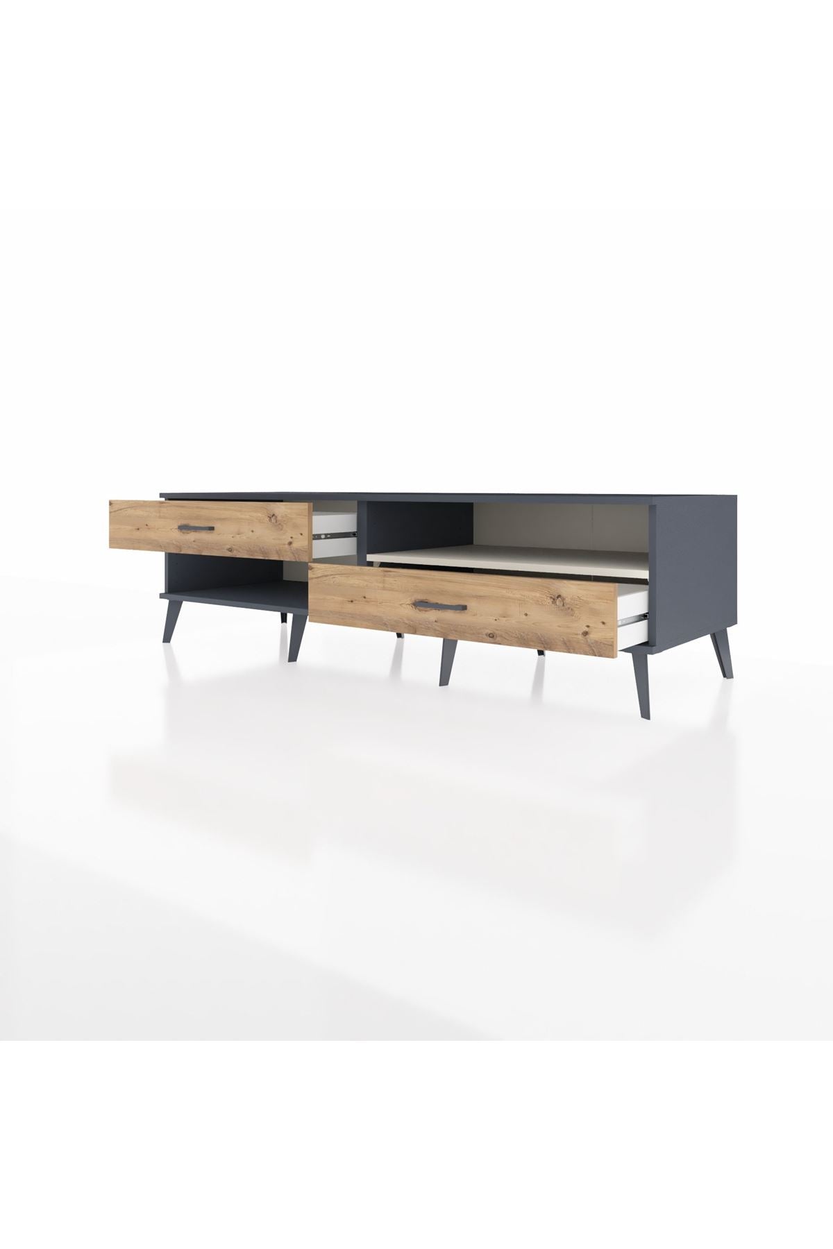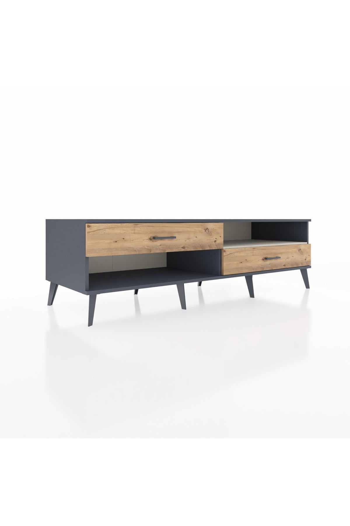 Kronos TV Ünitesi Tek Raflı 2 Çekmeceli 176x59x51 Antrasit-Aytaşı/Çam