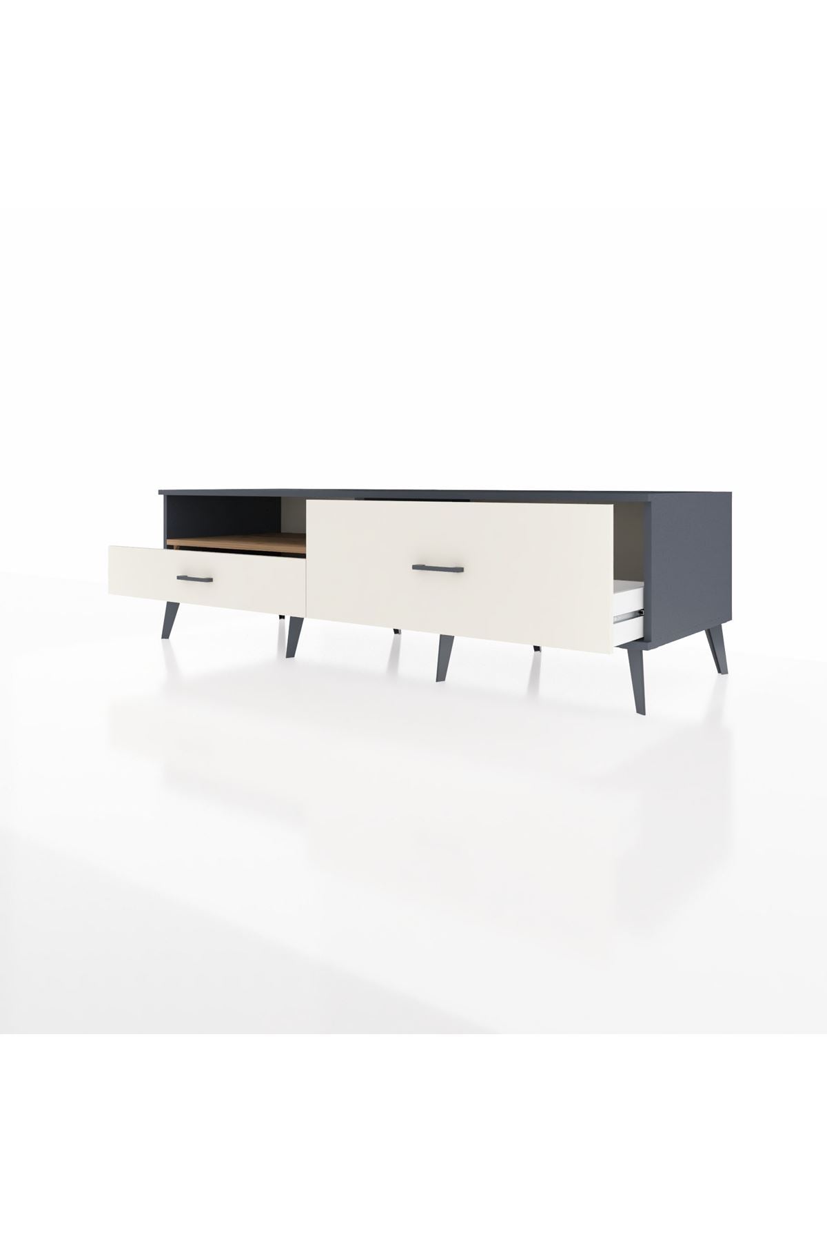 Kronos TV Ünitesi Tek Raflı 2 Çekmeceli 176x59x51 Antrasit-Çam/Aytaşı