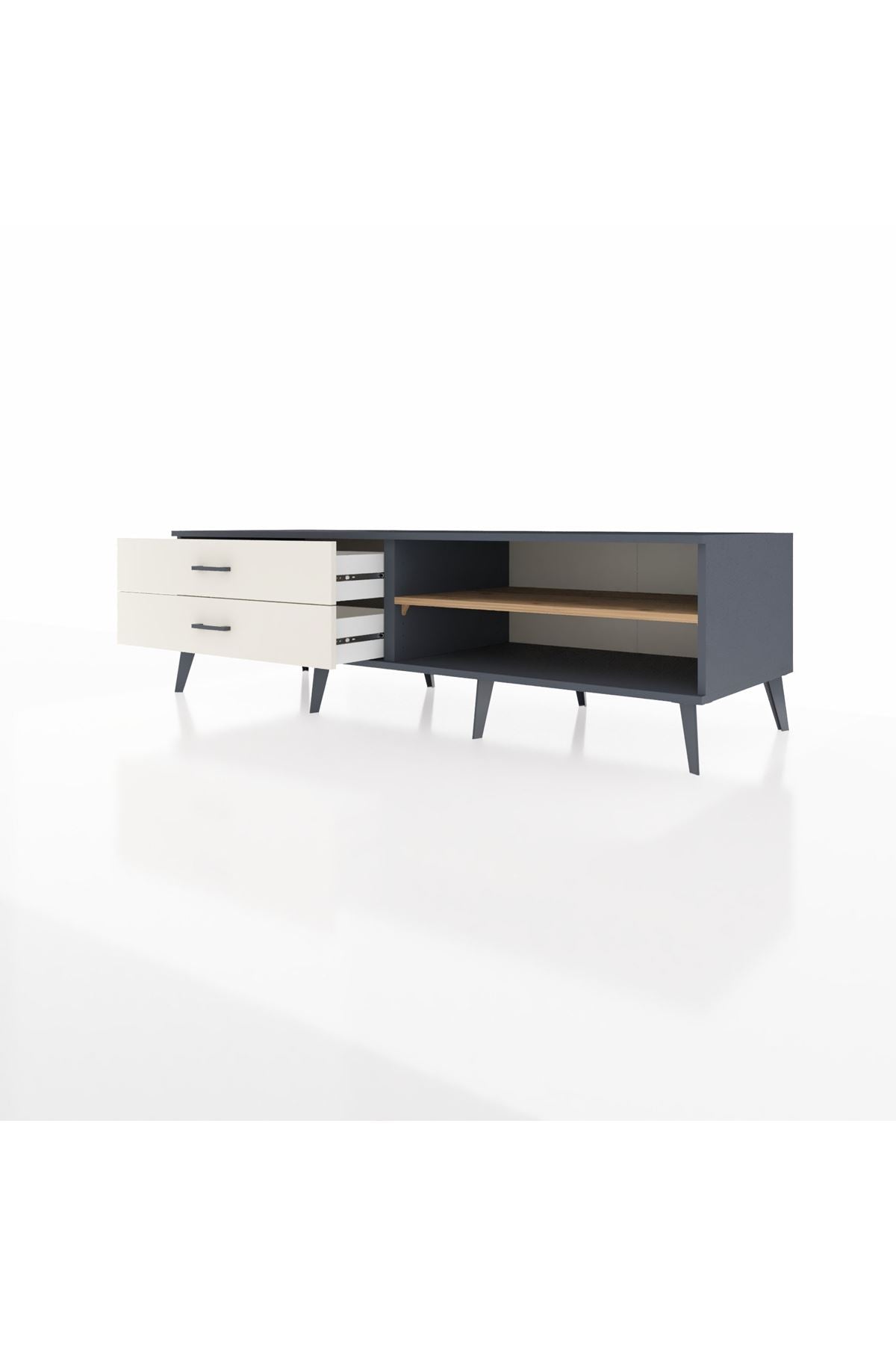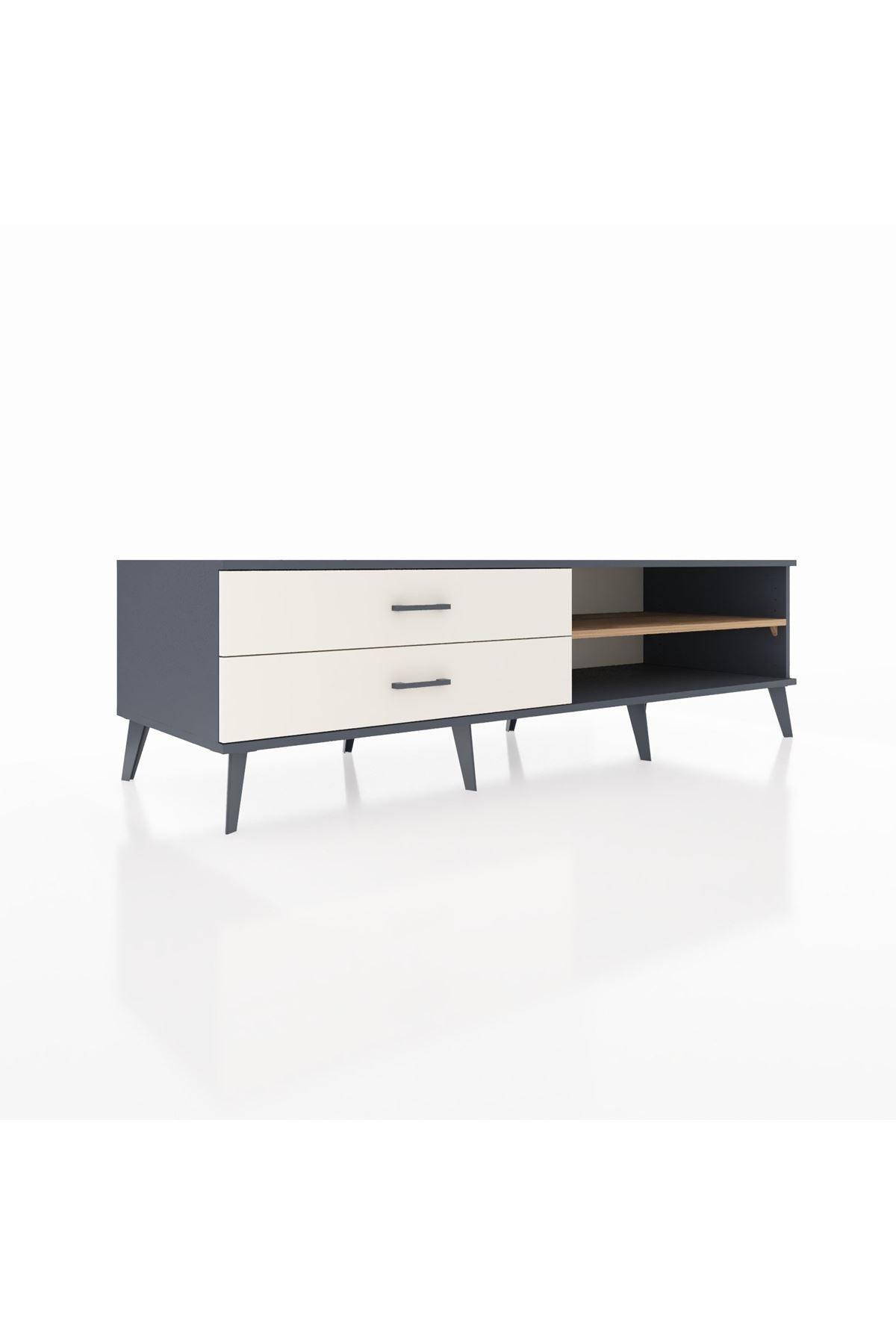Kronos TV Ünitesi Tek Raflı 2 Çekmeceli 176x59x51 Antrasit-Çam/Aytaşı